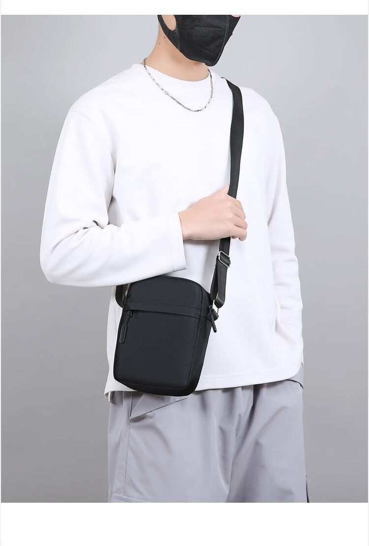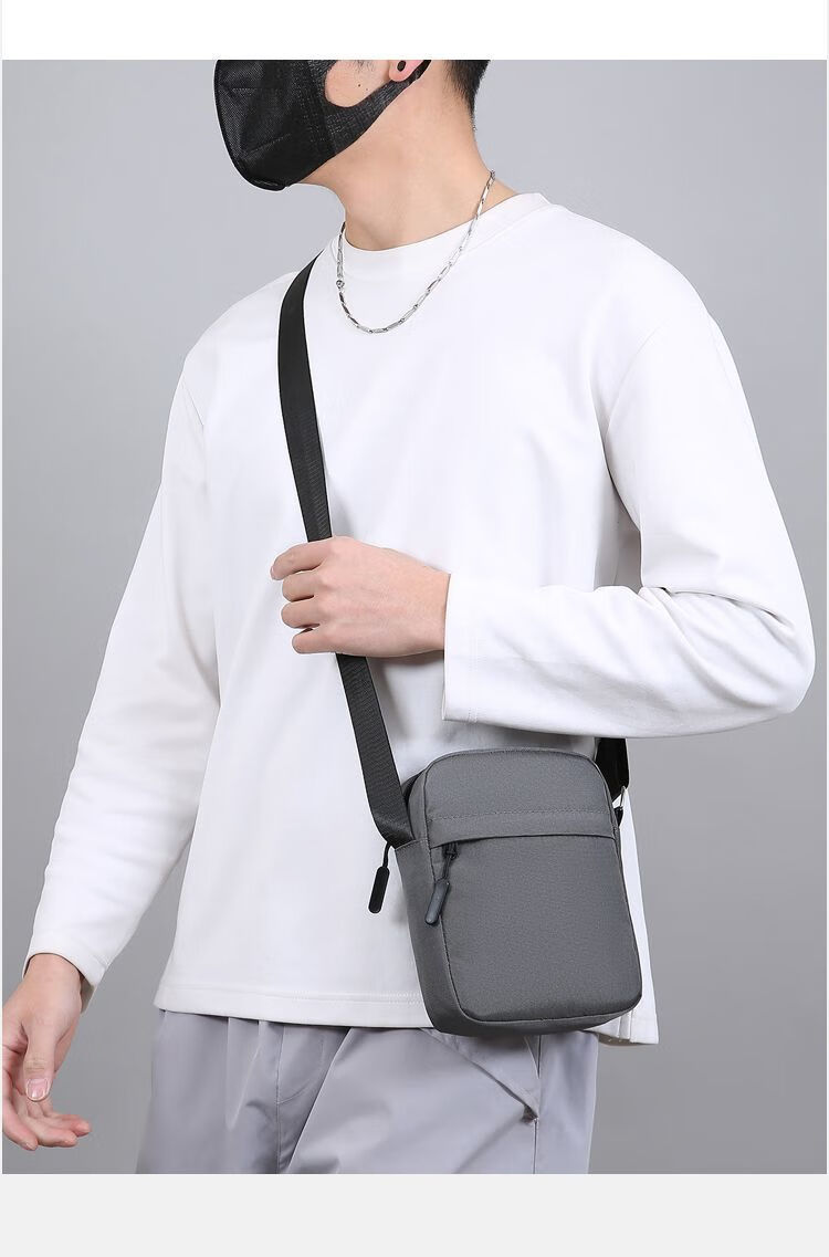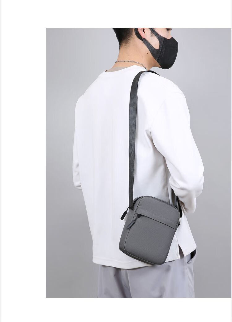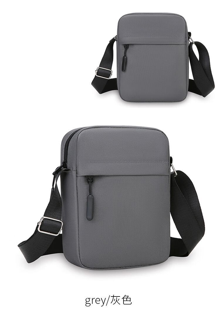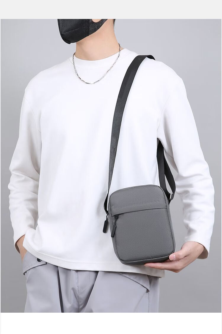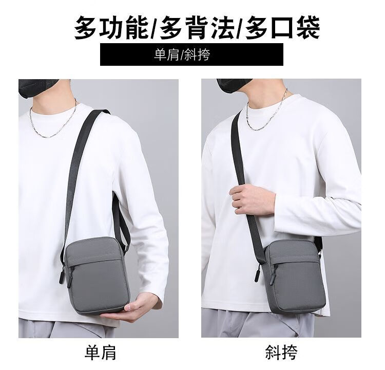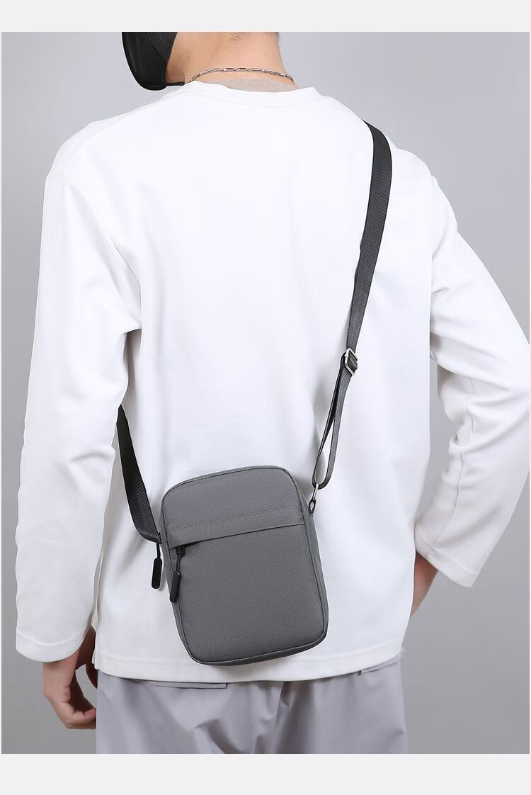 Qumuye's new men's crossbody bag waterproof Oxford cloth shoulder bag multi-compartment vertical mobile phone bag casual lightweight small backpack gray