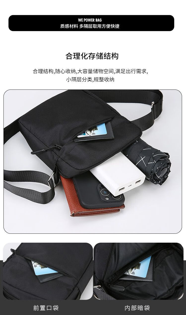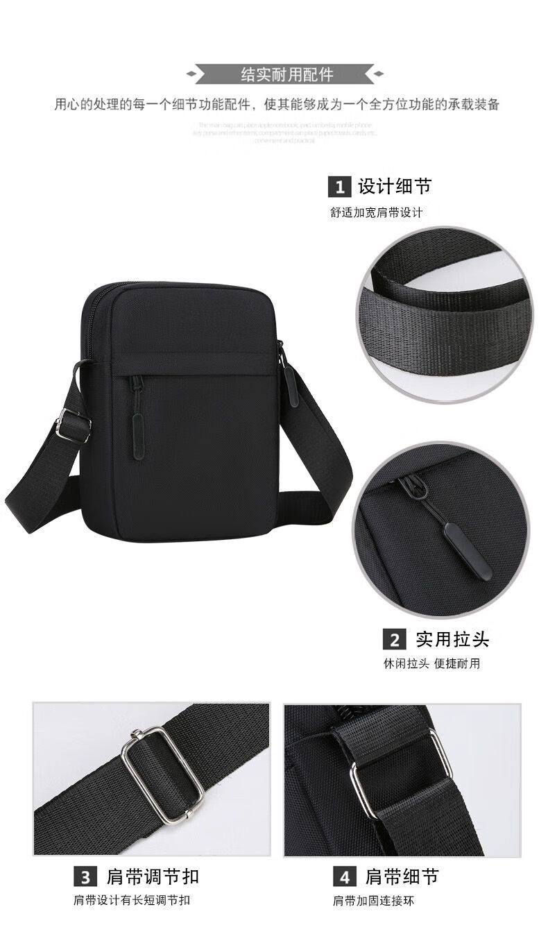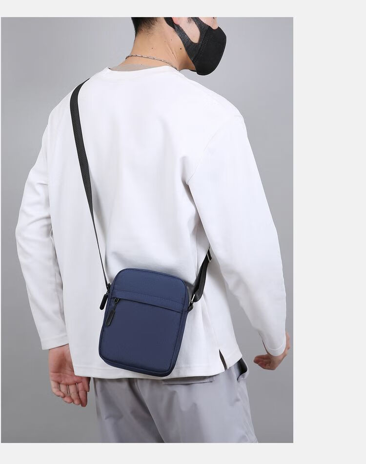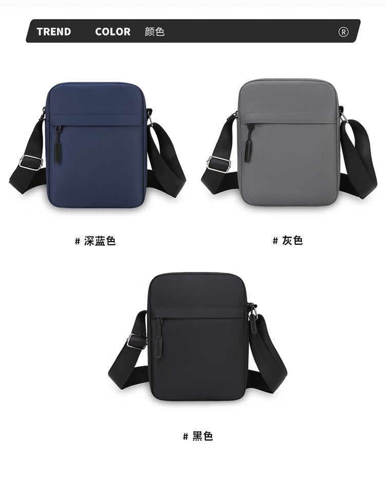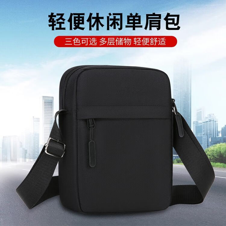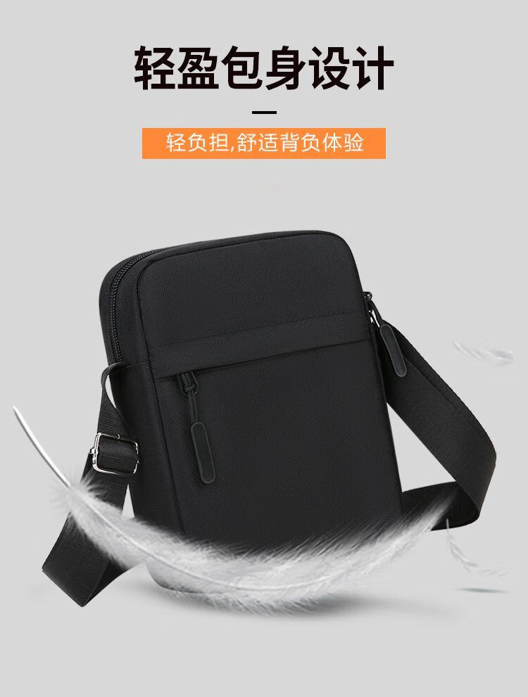 Qumuye's new men's crossbody bag waterproof Oxford cloth shoulder bag multi-compartment vertical mobile phone bag casual lightweight small backpack gray