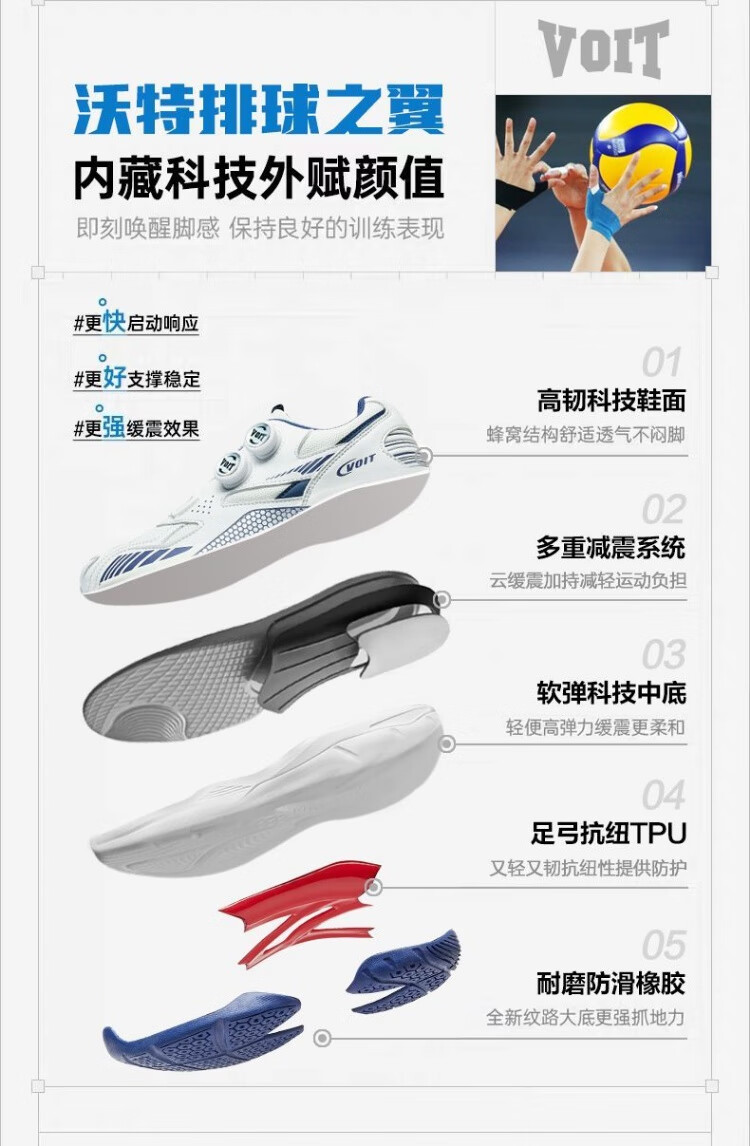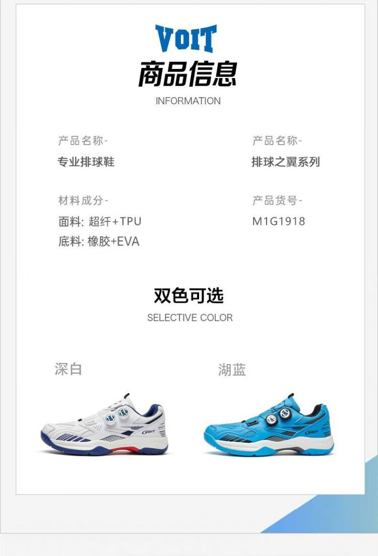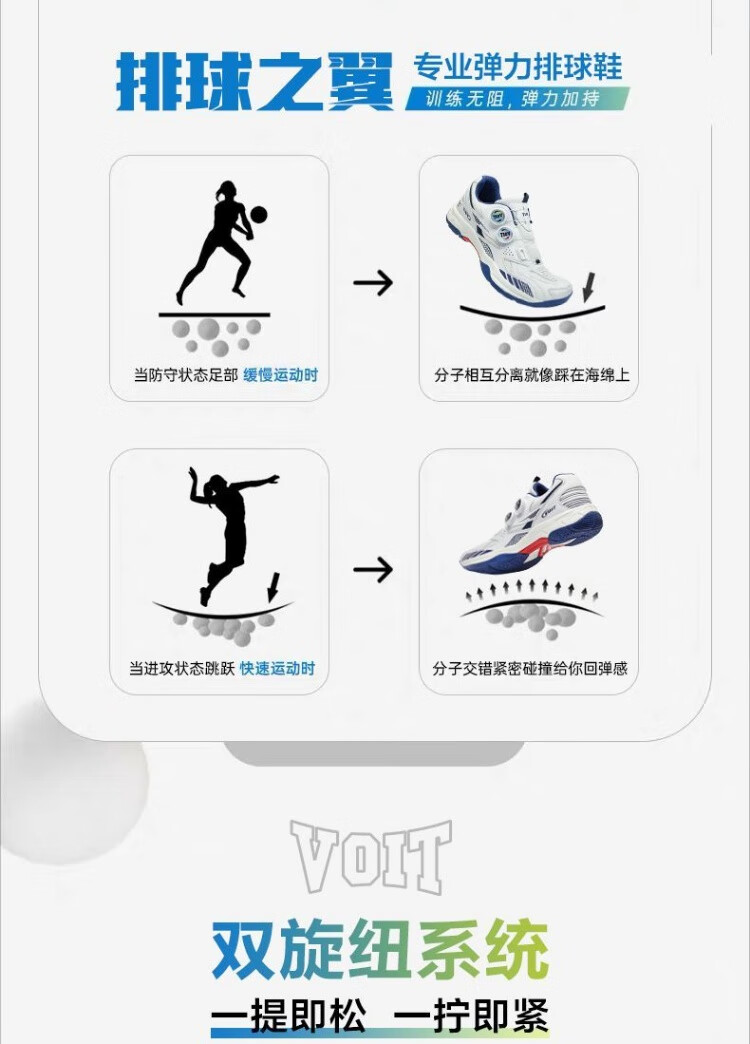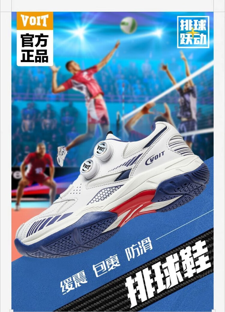 Watt VOIT Watt ultra-light volleyball shoes with double rotating buttons for men and women, wear-resistant, breathable, non-slip competition training sneakers, dark white 41