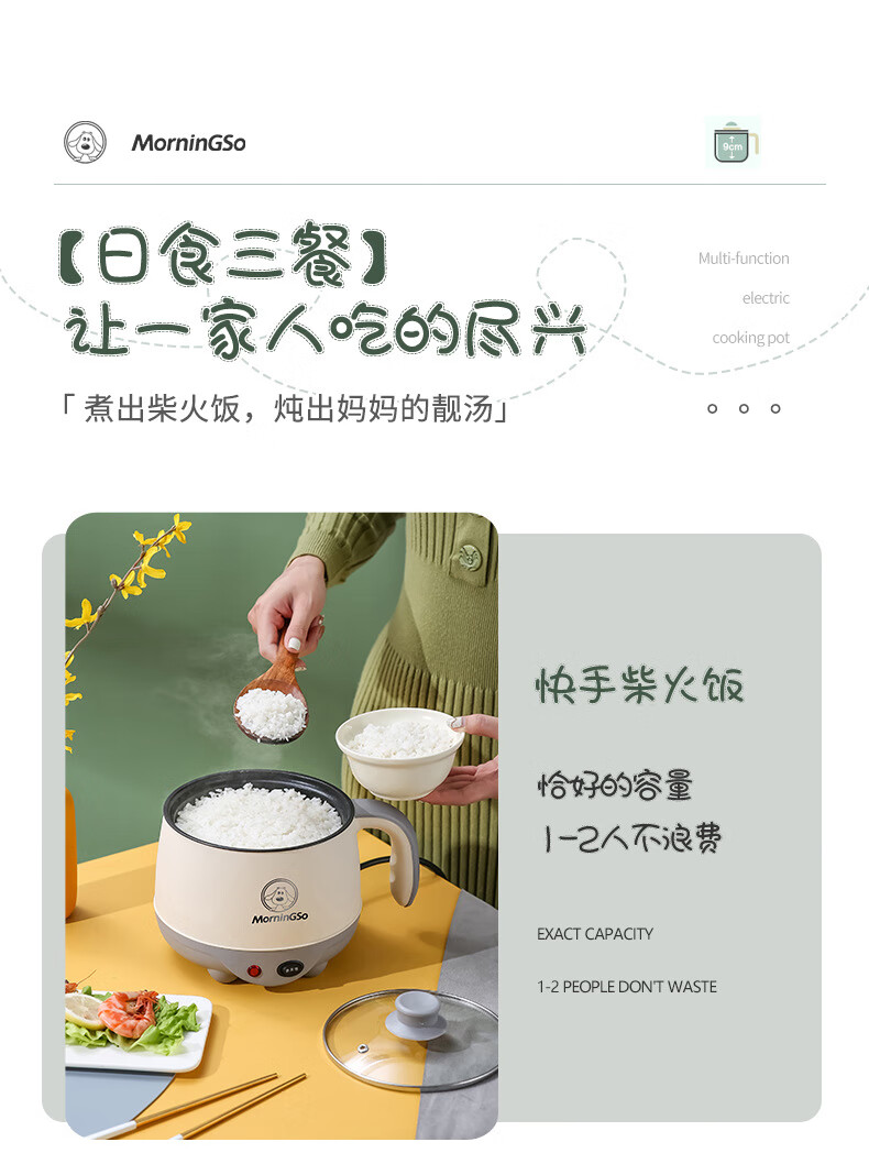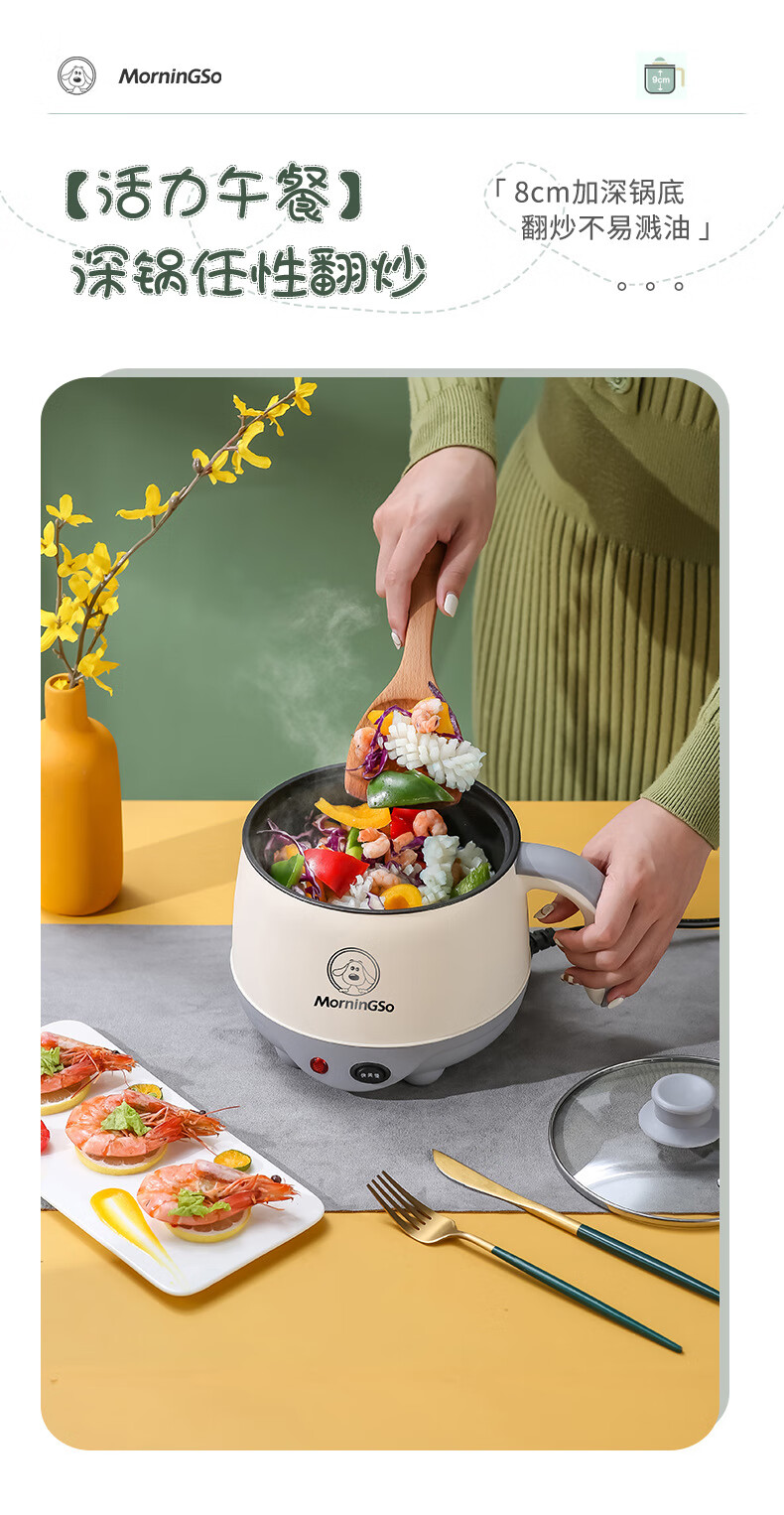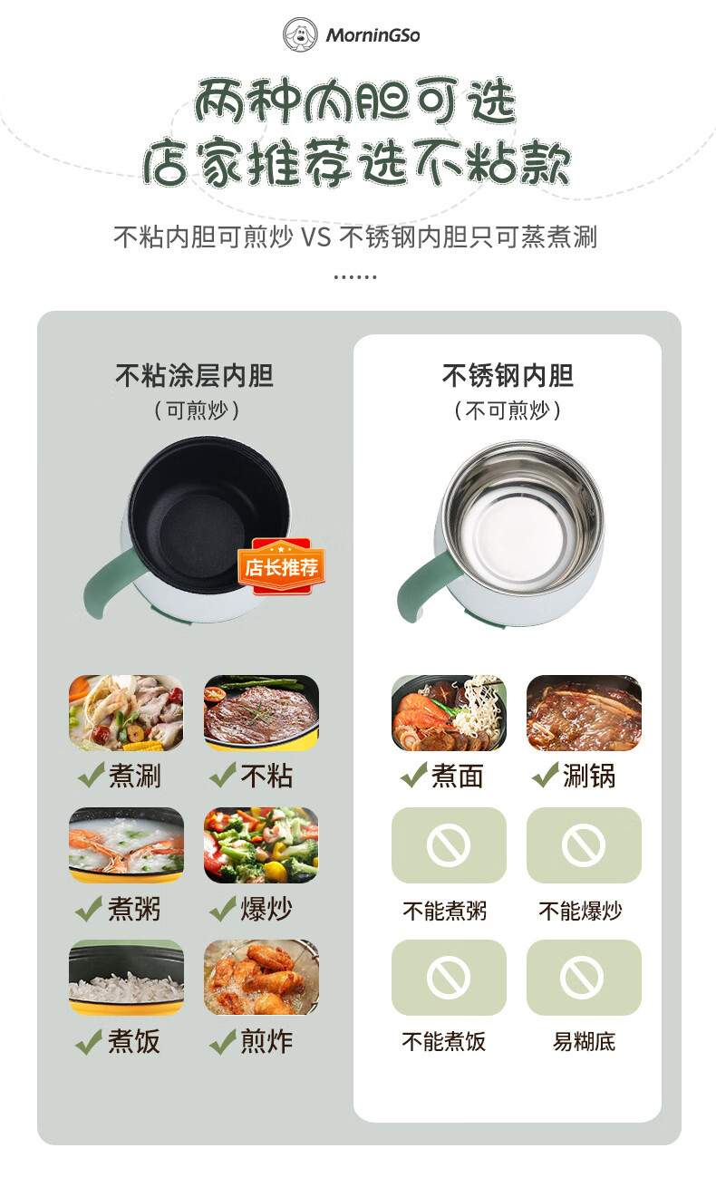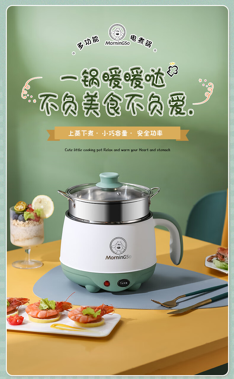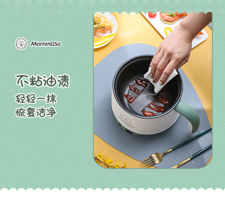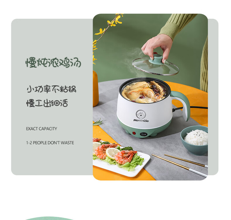 MorningSo electric cooker, small electric cooker, all-in-one multifunctional cooker, dormitory electric cooker, small electric cooker, dormitory use for 1-2 people, multifunctional electric cooker, mini instant noodle cooker, 1.8L Moran green, non-stick pot liner