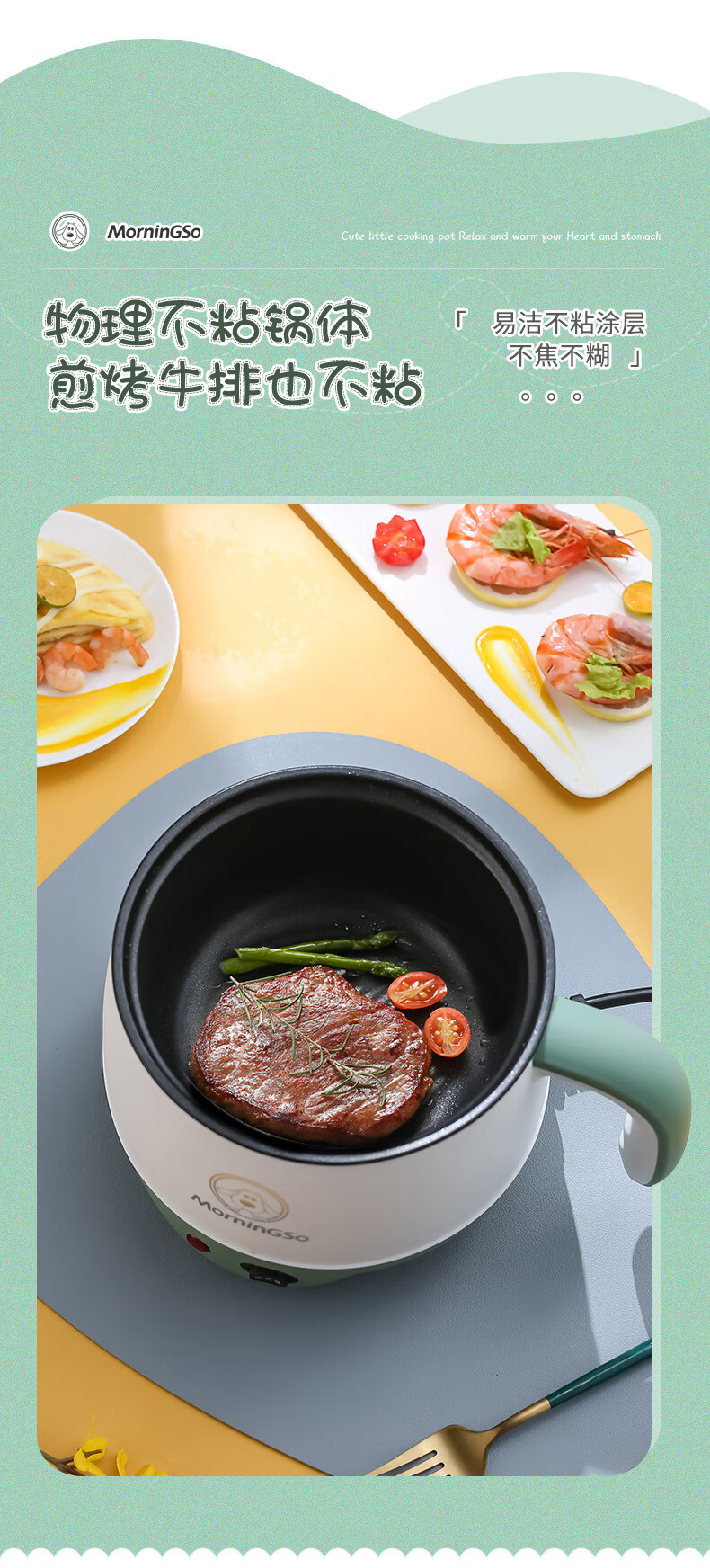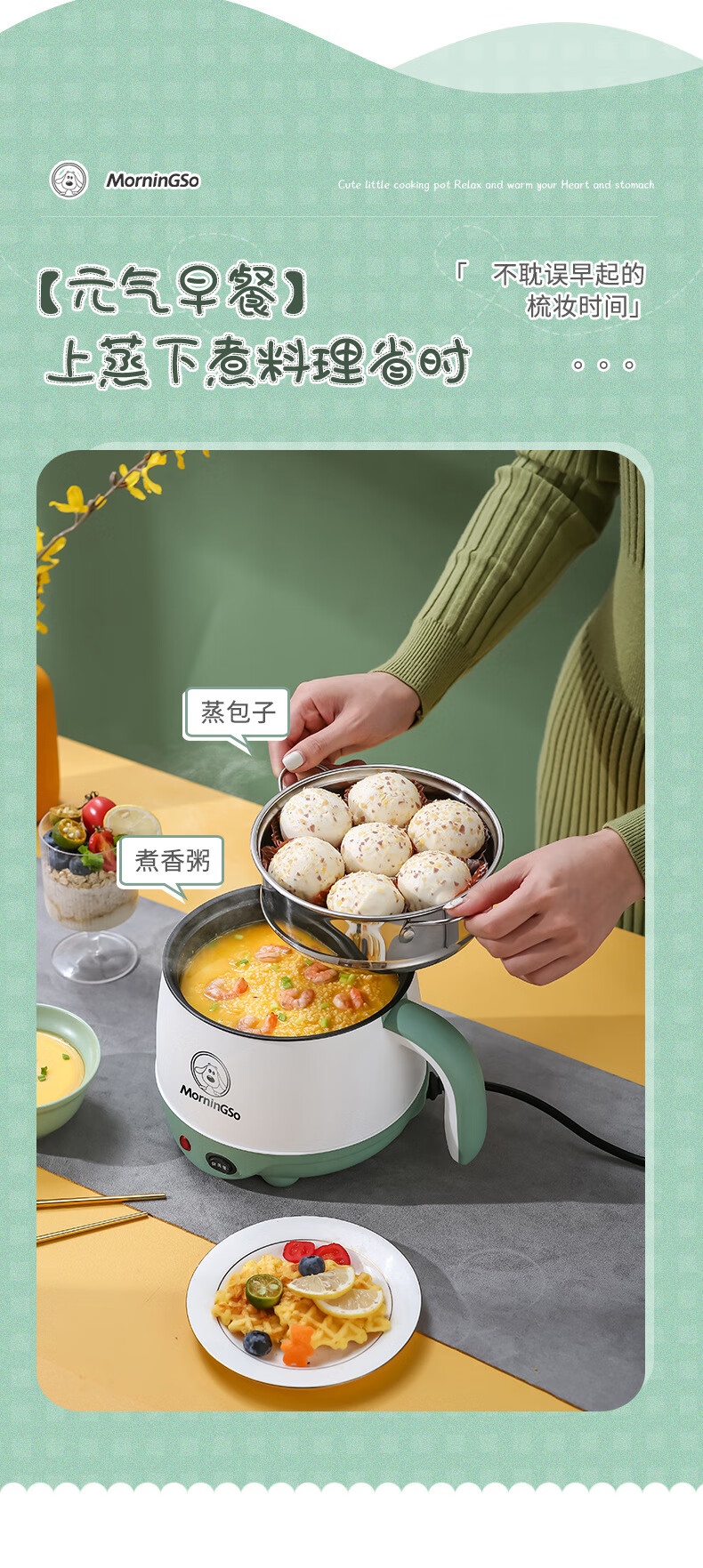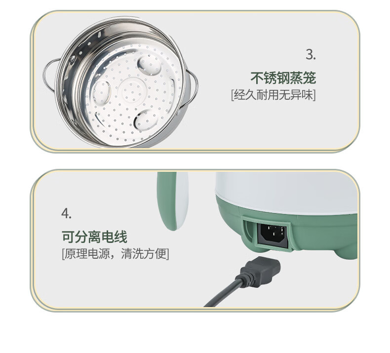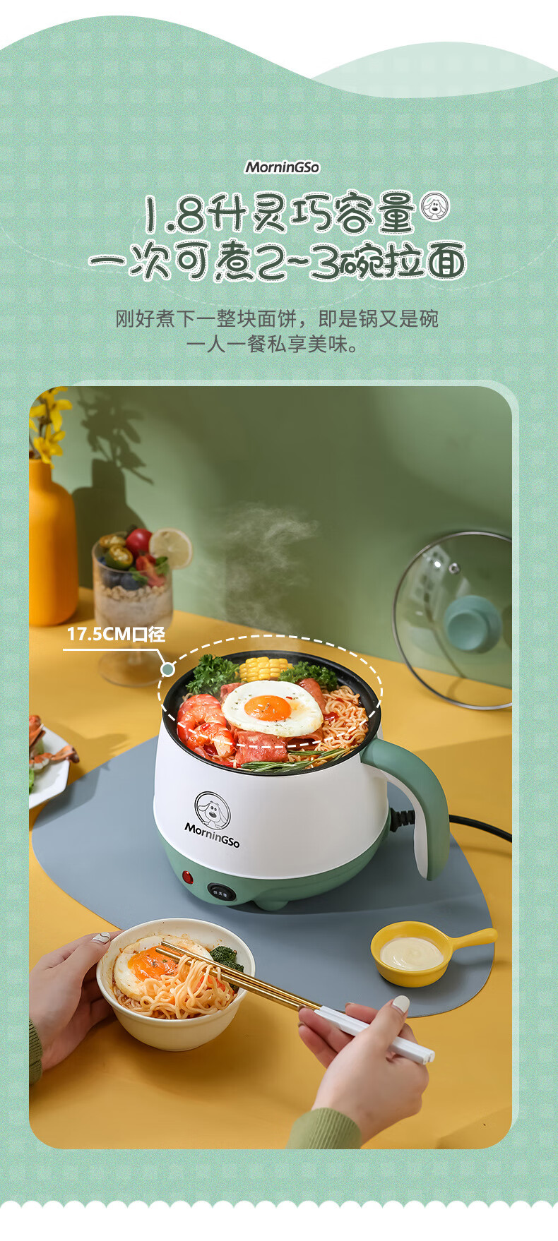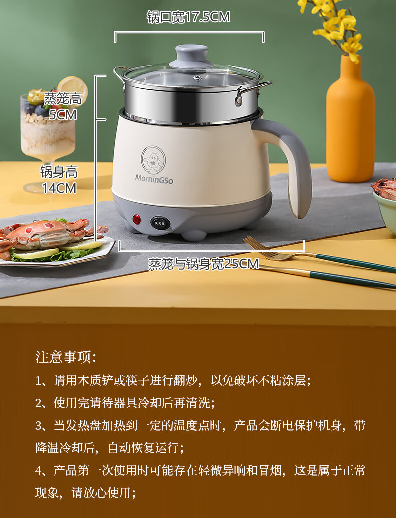 MorningSo electric cooker, small electric cooker, all-in-one multifunctional cooker, dormitory electric cooker, small electric cooker, dormitory use for 1-2 people, multifunctional electric cooker, mini instant noodle cooker, 1.8L Moran green, non-stick pot liner