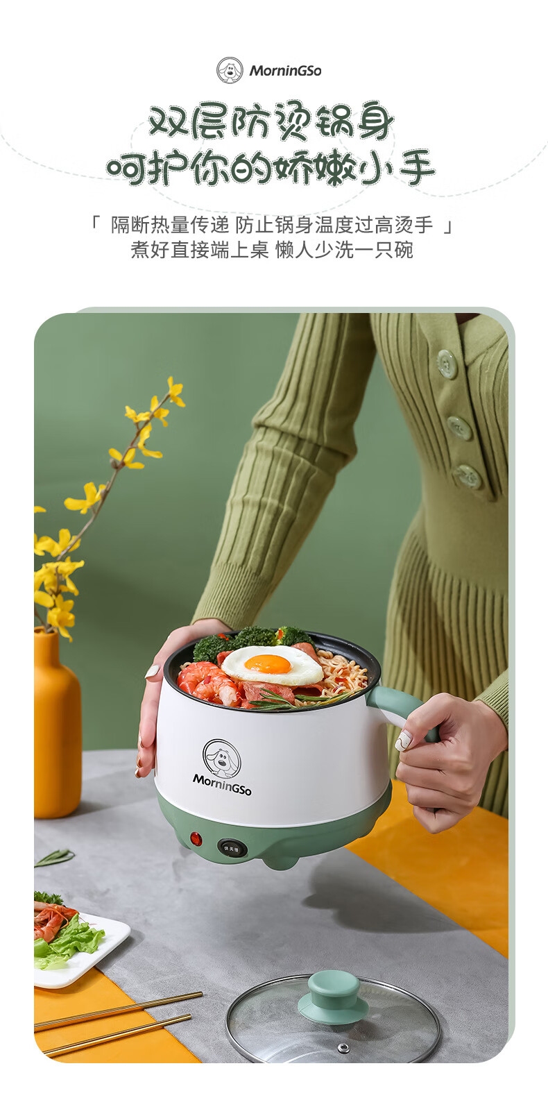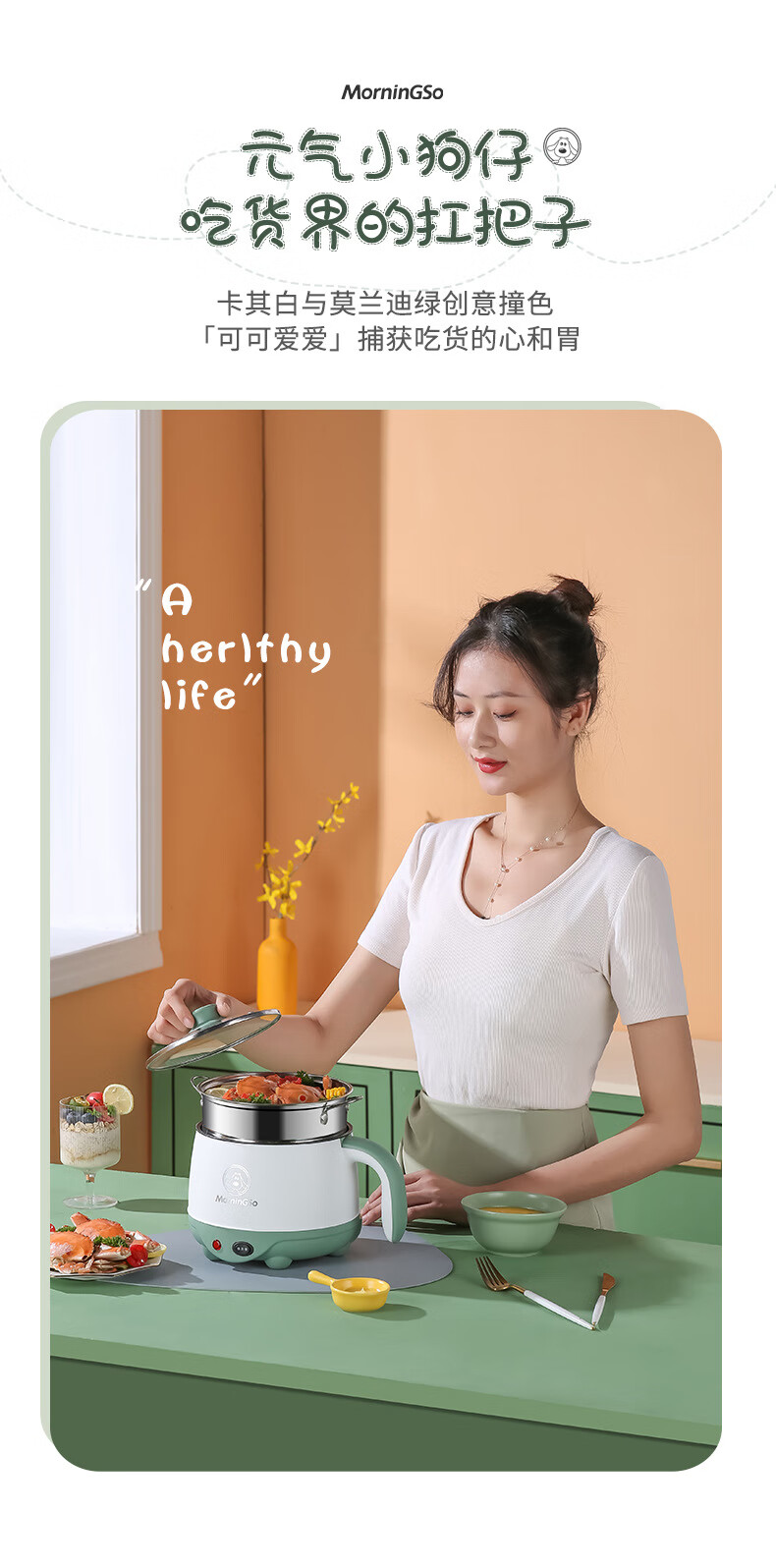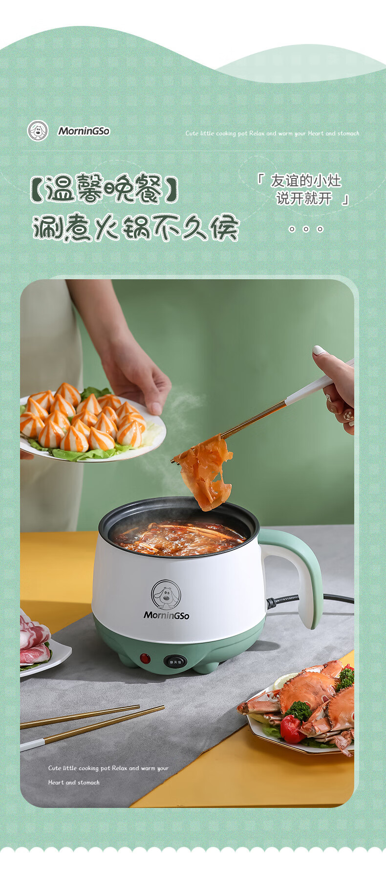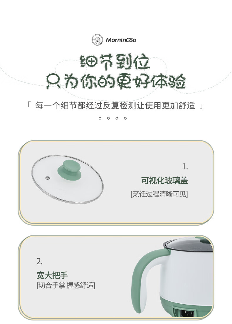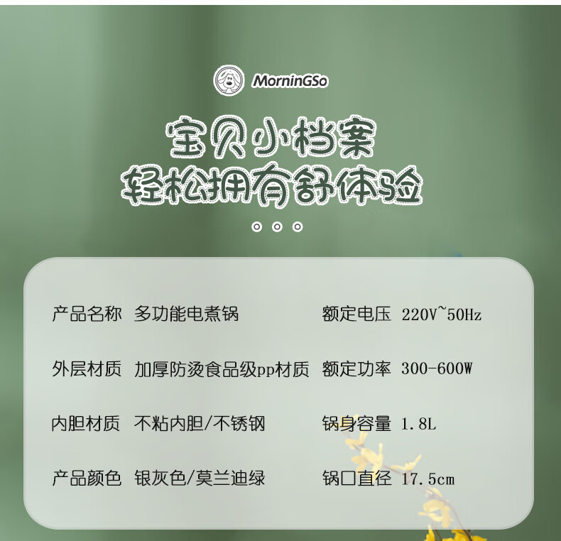 MorningSo electric cooker, small electric cooker, all-in-one multifunctional cooker, dormitory electric cooker, small electric cooker, dormitory use for 1-2 people, multifunctional electric cooker, mini instant noodle cooker, 1.8L Moran green, non-stick pot liner