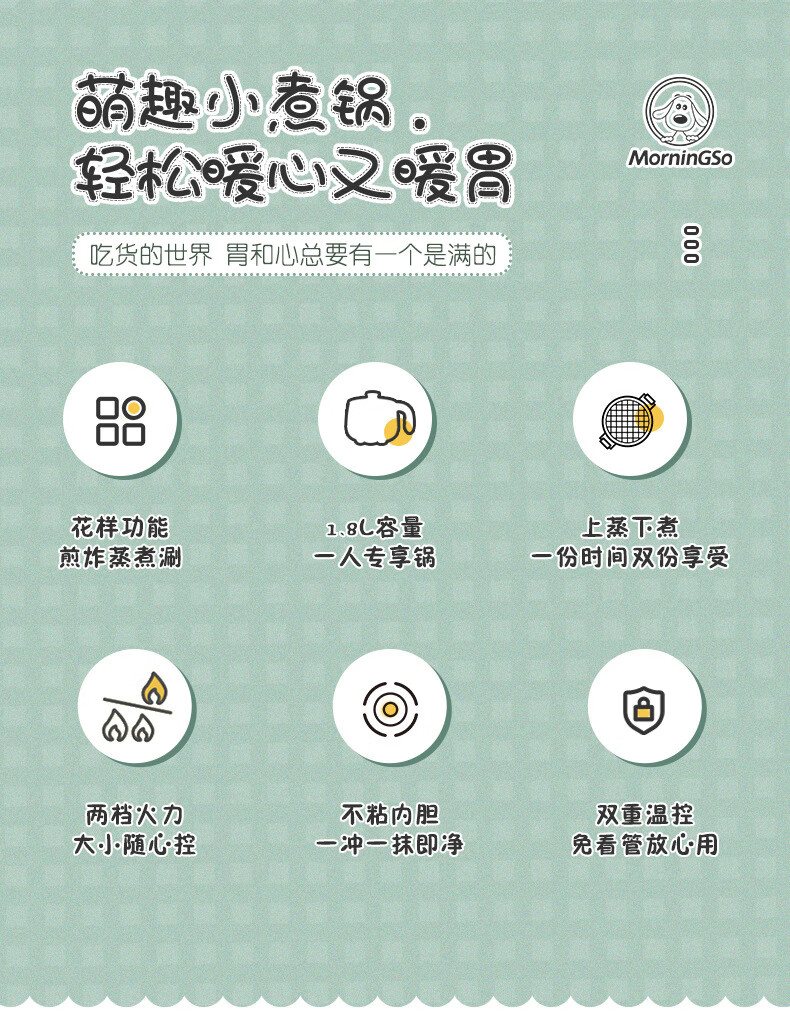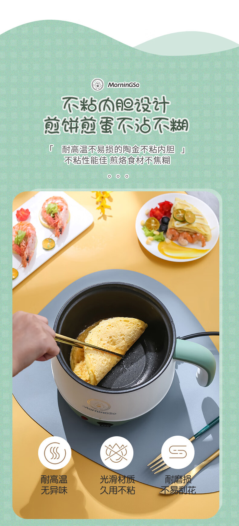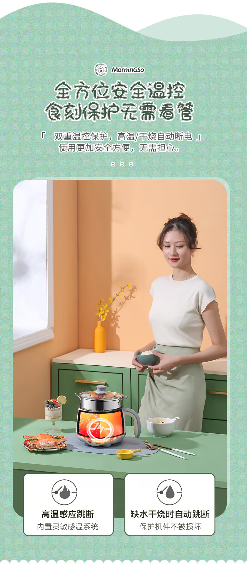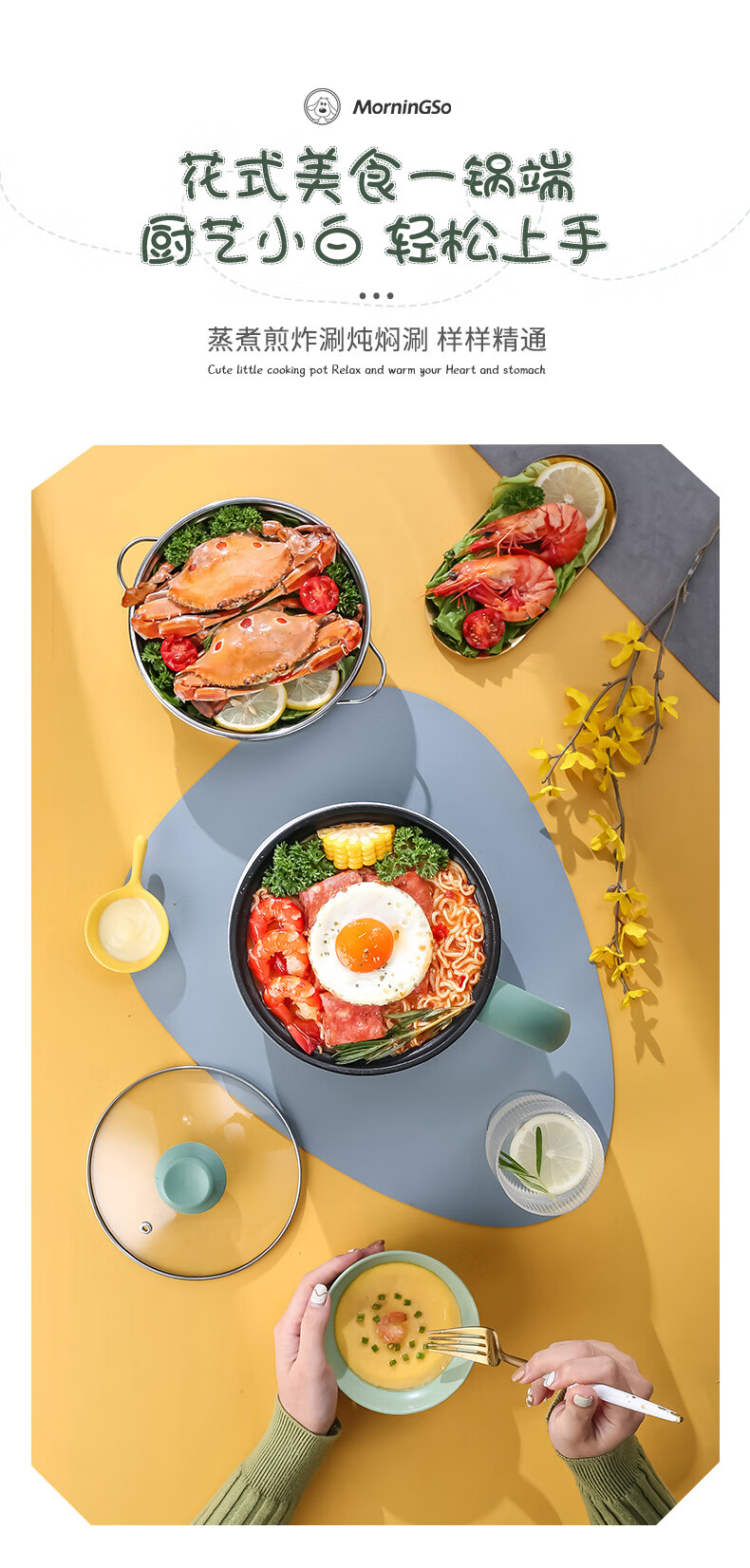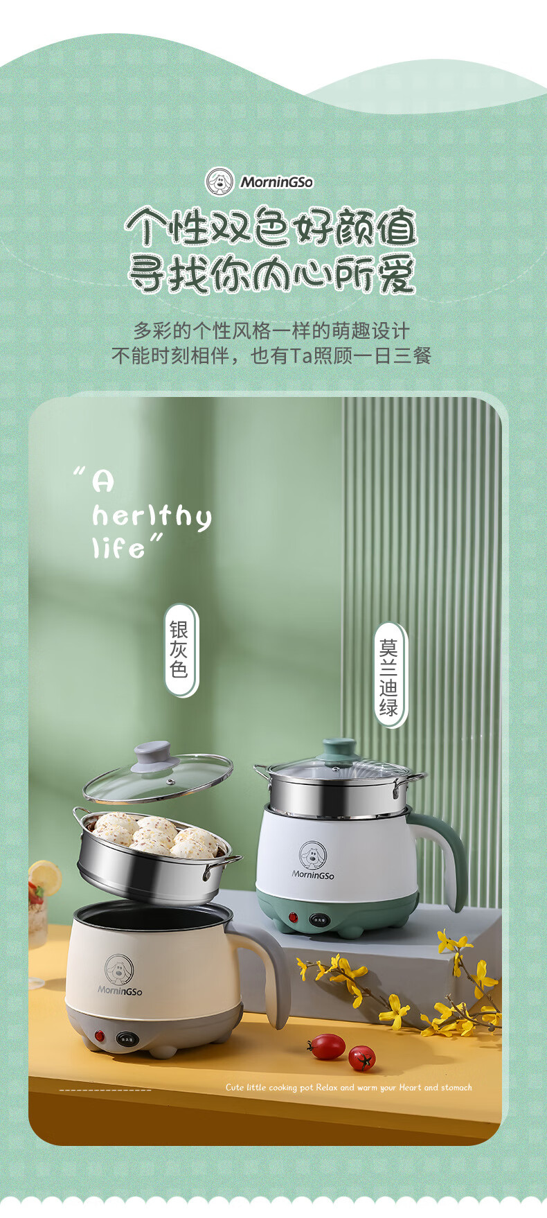 MorningSo electric cooker, small electric cooker, all-in-one multifunctional cooker, dormitory electric cooker, small electric cooker, dormitory use for 1-2 people, multifunctional electric cooker, mini instant noodle cooker, 1.8L Moran green, non-stick pot liner