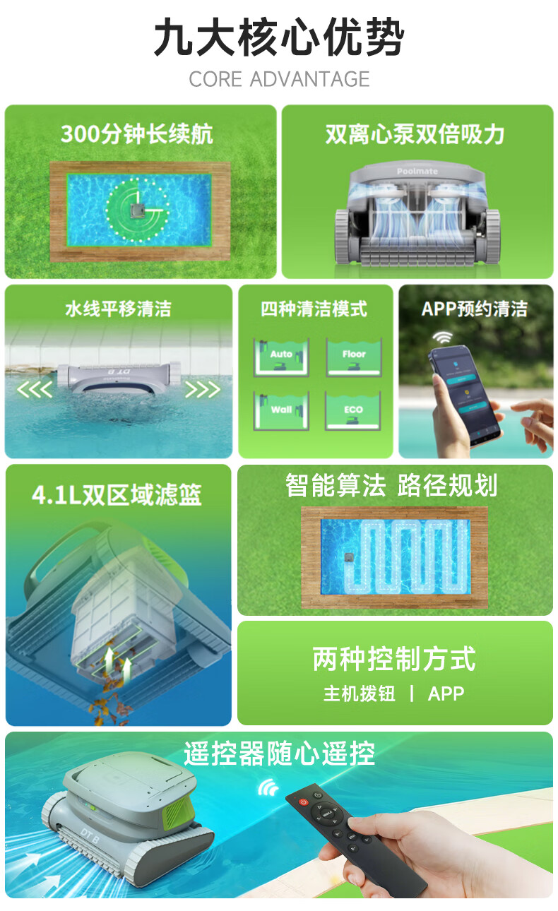 Diving Dolphin Swimming Pool Fully Automatic Sewage Suction Machine Swimming Pool Underwater Vacuum Cleaner Remote Control Pool Wall-Climbing Pool Bottom Cleaning Robot 5-Hour Ultra-Long Battery Life Version