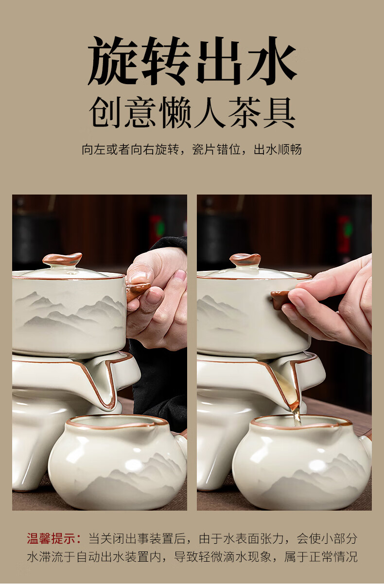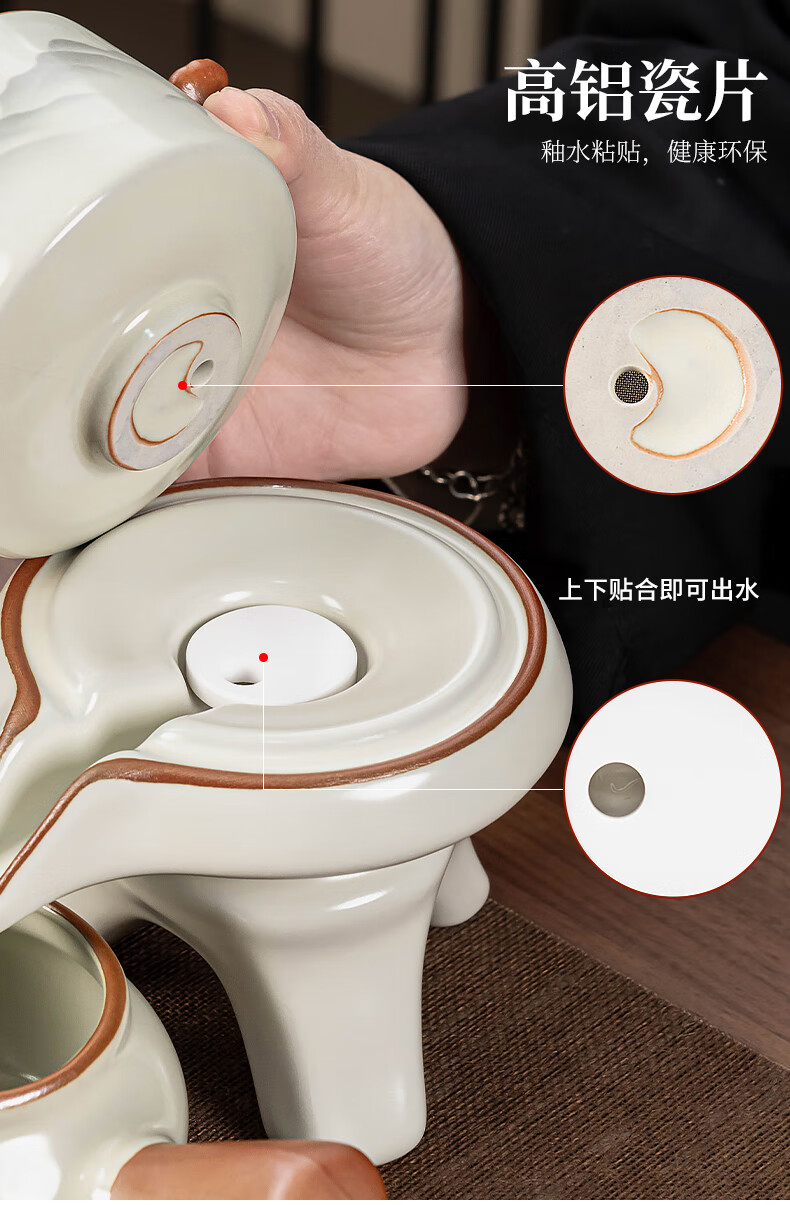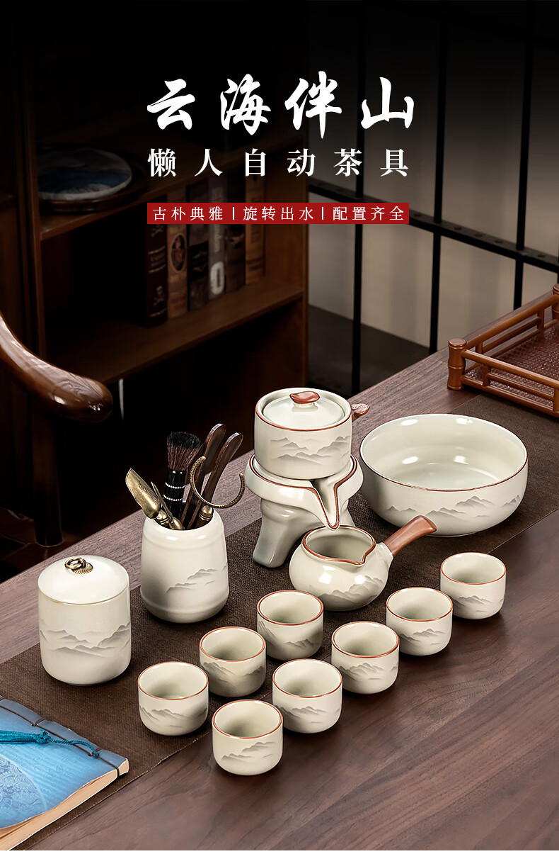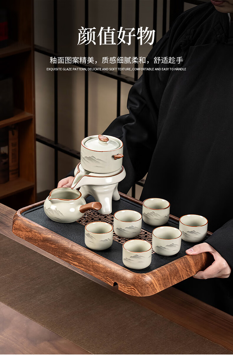 Zhengyang Ru kiln automatic tea set set for home use complete set of lazy anti-scalding all-in-one stone grinding rotating tea maker office gift Huang Ru/automatic (Yunhai) + six cups + tea ceremony