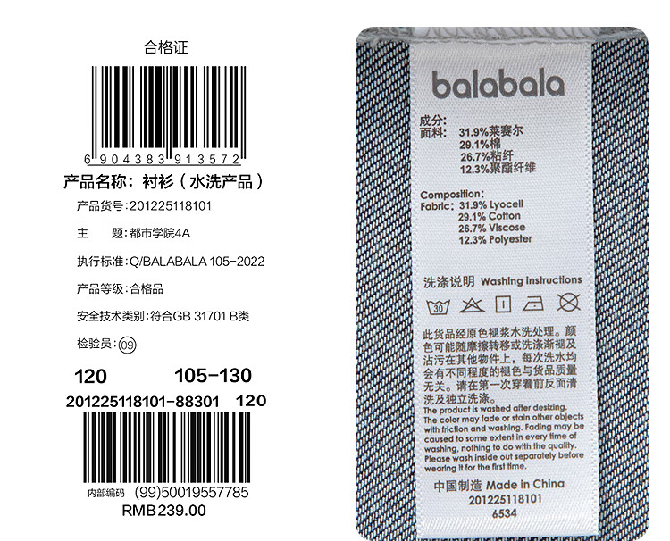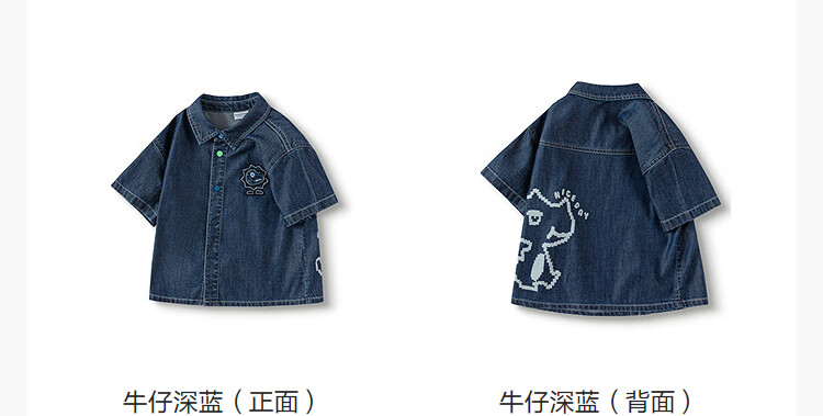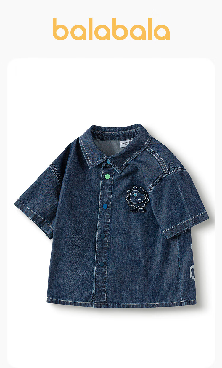 Balabala shopping mall same style children's clothing children's denim shirt boys' tops cool summer new style denim dark blue 88301 105