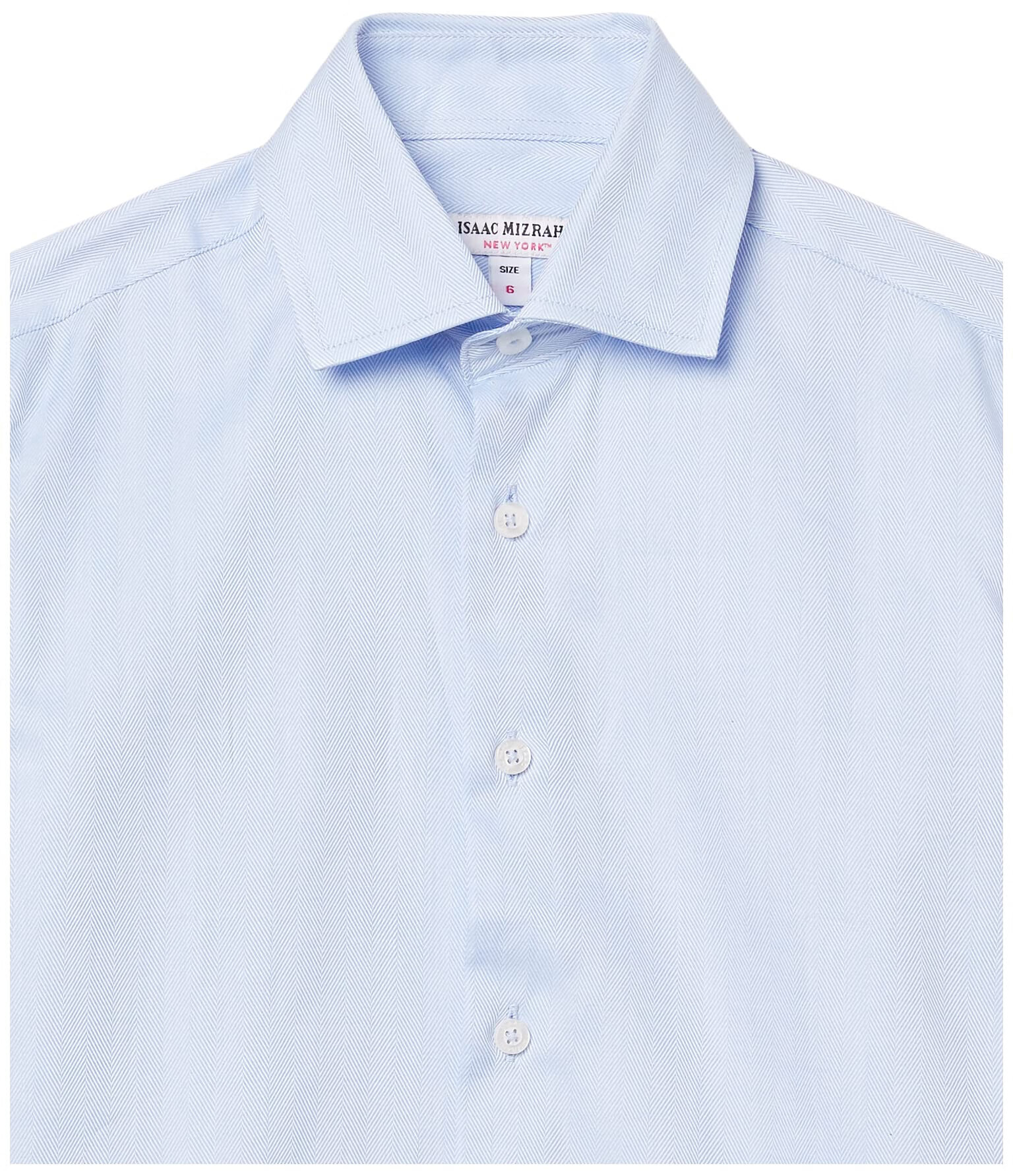 ISAAC MIZRAHI Boys Long Sleeve Herringbone Solid Color Buttoned Shirt Sky Blue 6