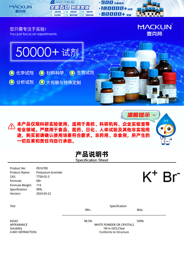 Macklin Potassium Bromide CAS 7758-02-3 P816700-100g