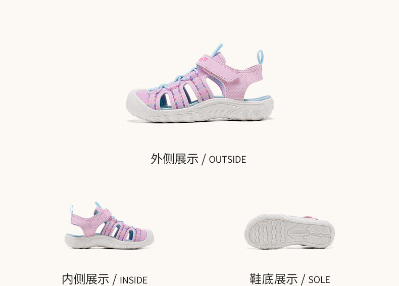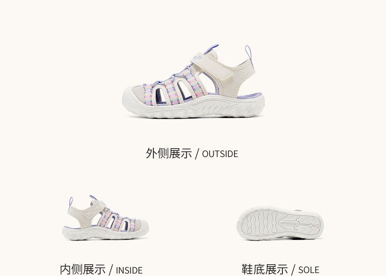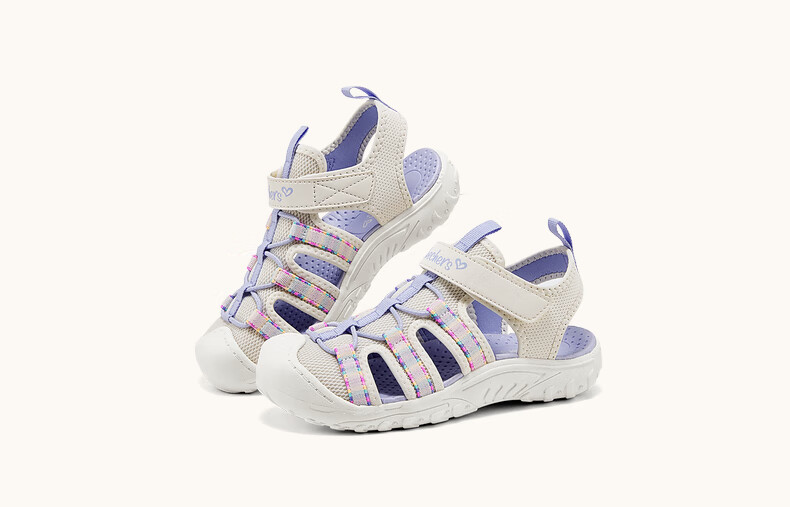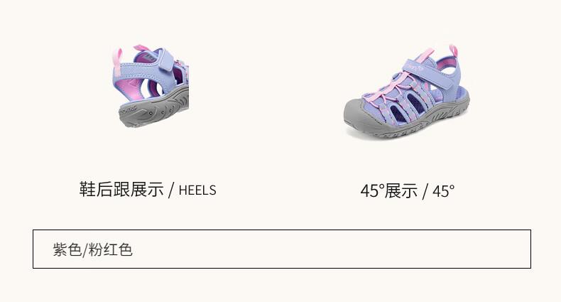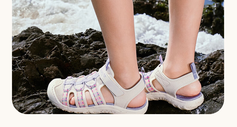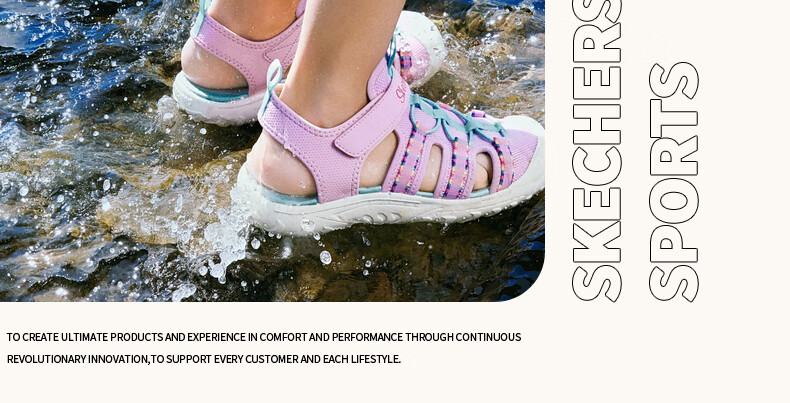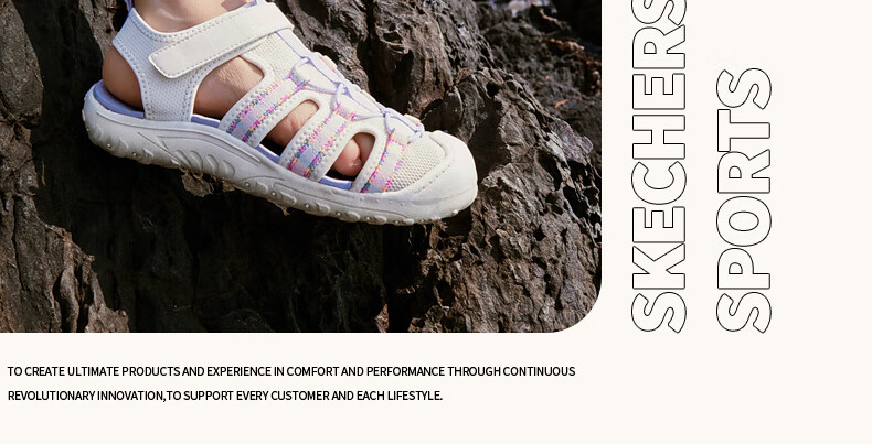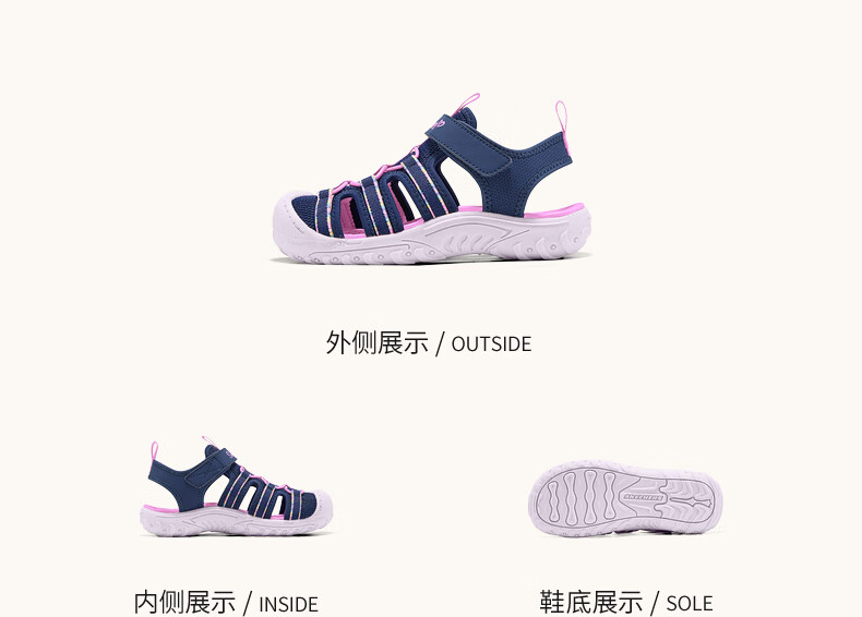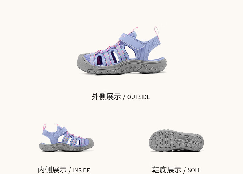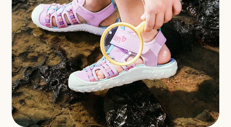 Skechers Children's Beach Shoes Outdoor Wear-Resistant Round Toe Velcro Sandals Breathable Anti-Slip Summer Comfortable Casual Shoes Purple/Pink/LVLP 27.5