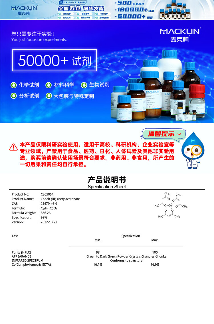 Macklin Cobalt(III) Acetylacetonate CAS 21679-46-9 C805054-5g