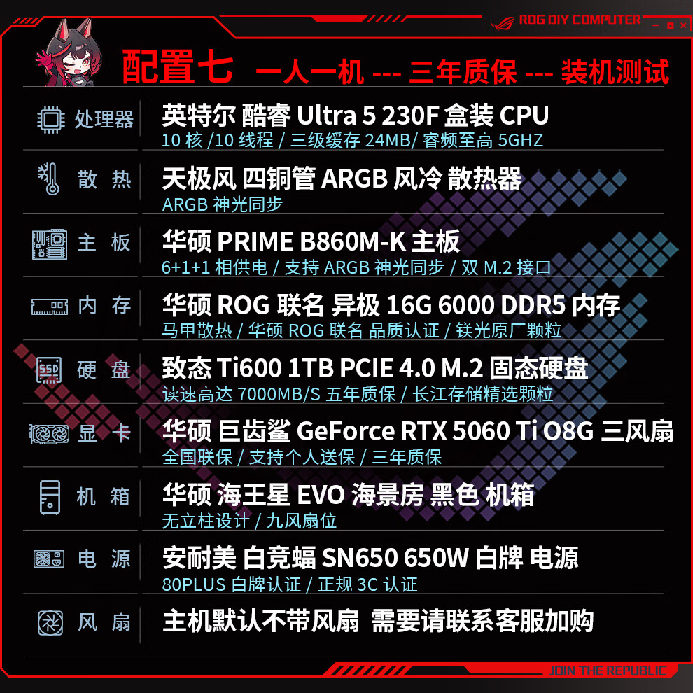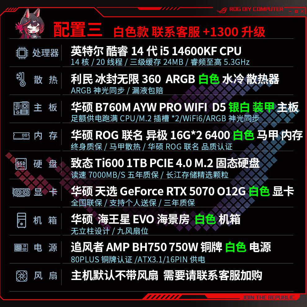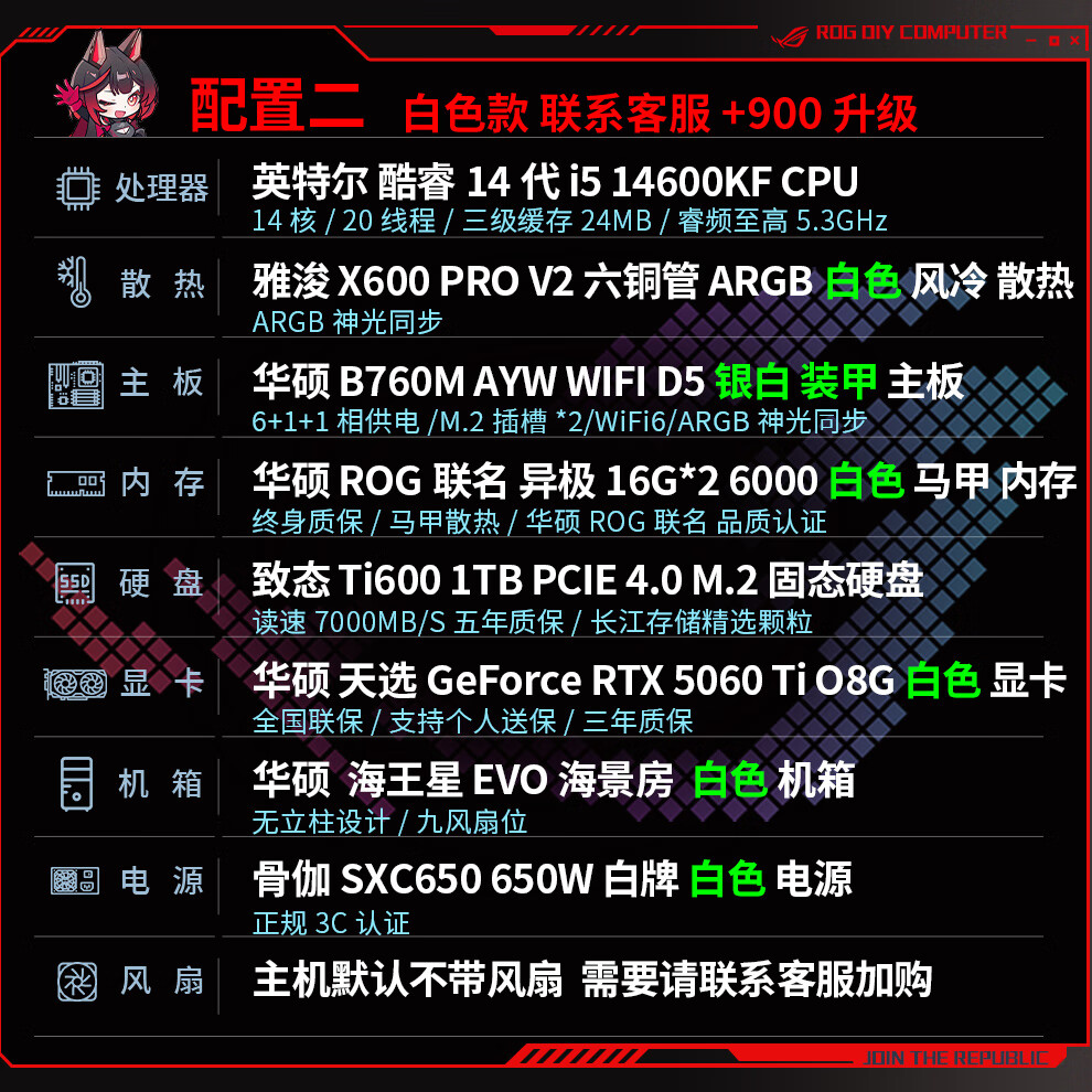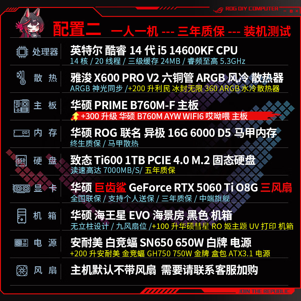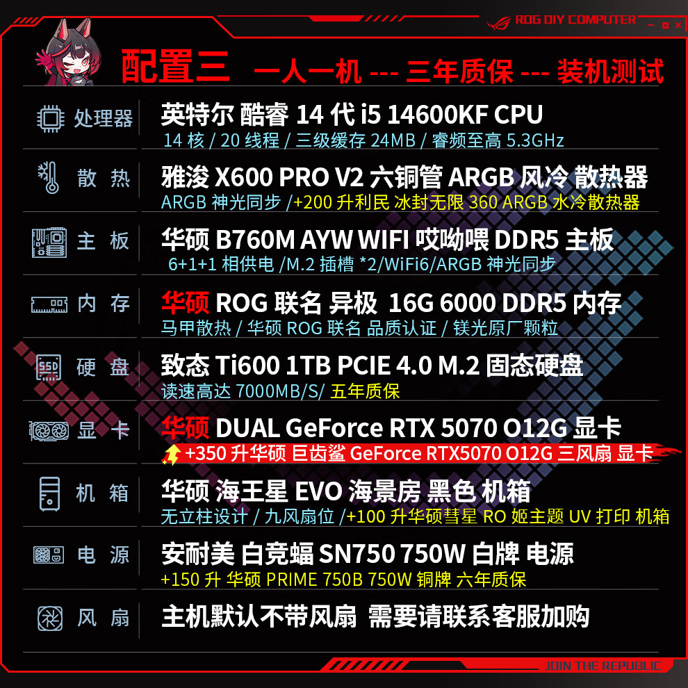 ASUS ROG family bucket 14600KF/RTX5060Ti RTX5070 computer host live broadcast e-sports Delta game design rendering desktop assembly complete machine DIY assembly machine with one 14600KF+RTX5060