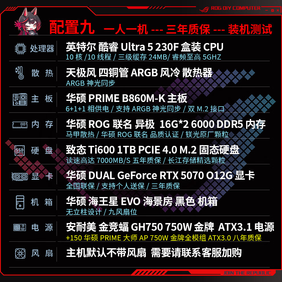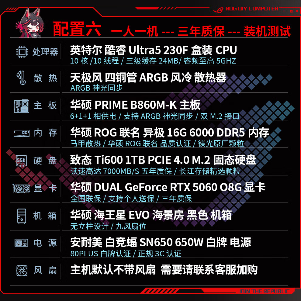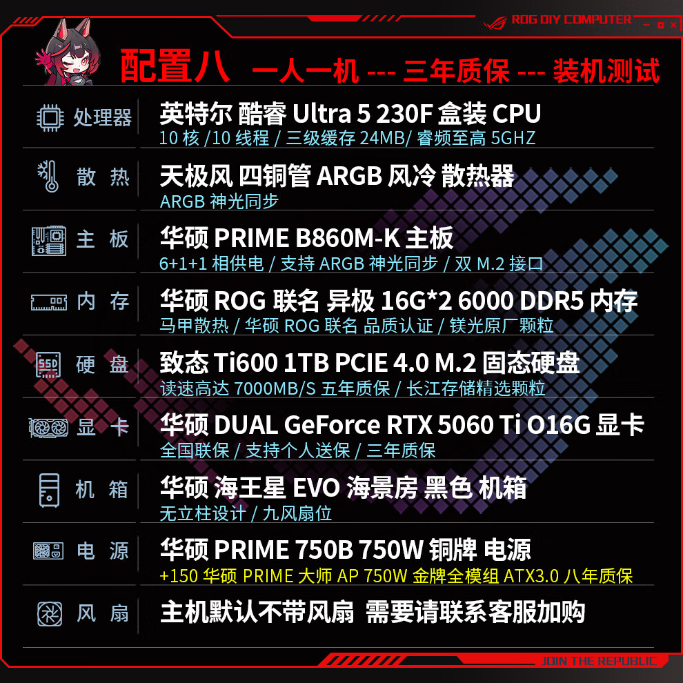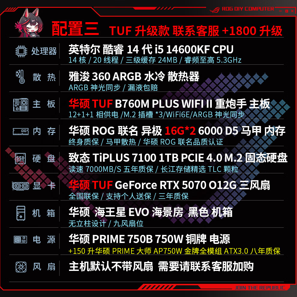 ASUS ROG family bucket 14600KF/RTX5060Ti RTX5070 computer host live broadcast e-sports Delta game design rendering desktop assembly complete machine DIY assembly machine with one 14600KF+RTX5060