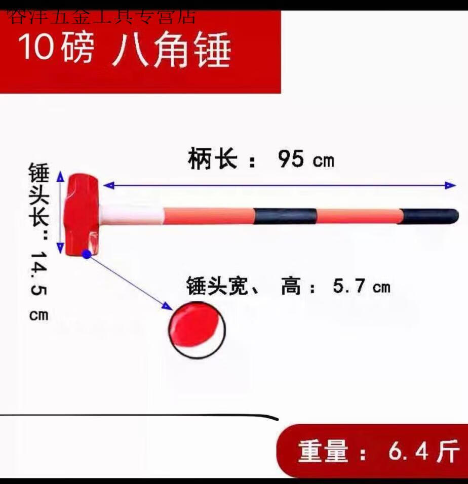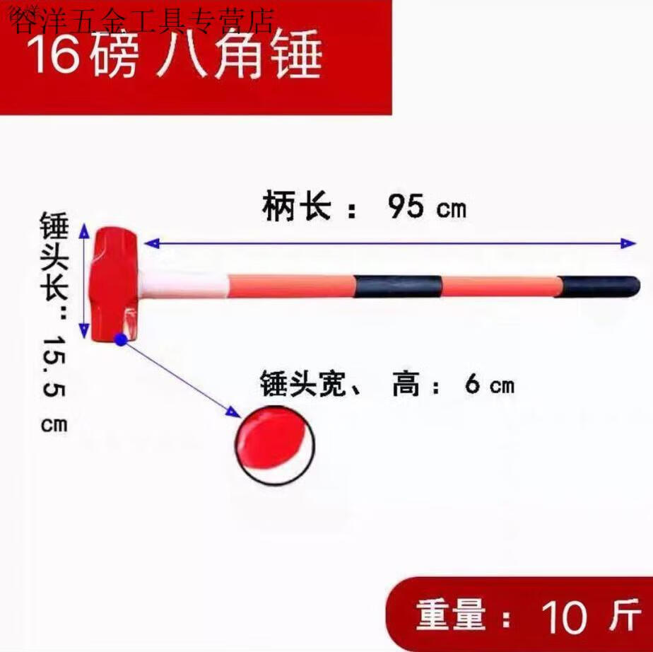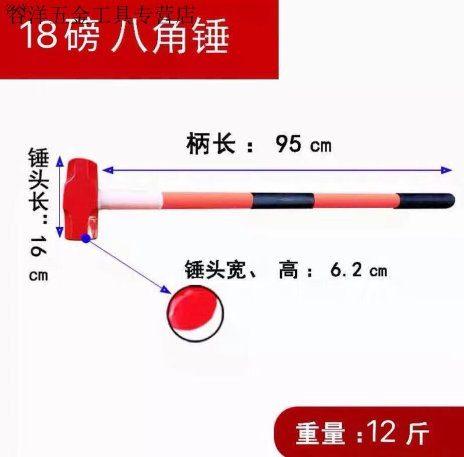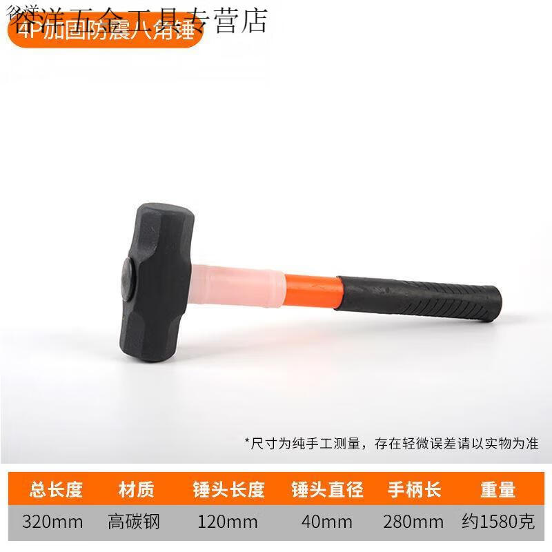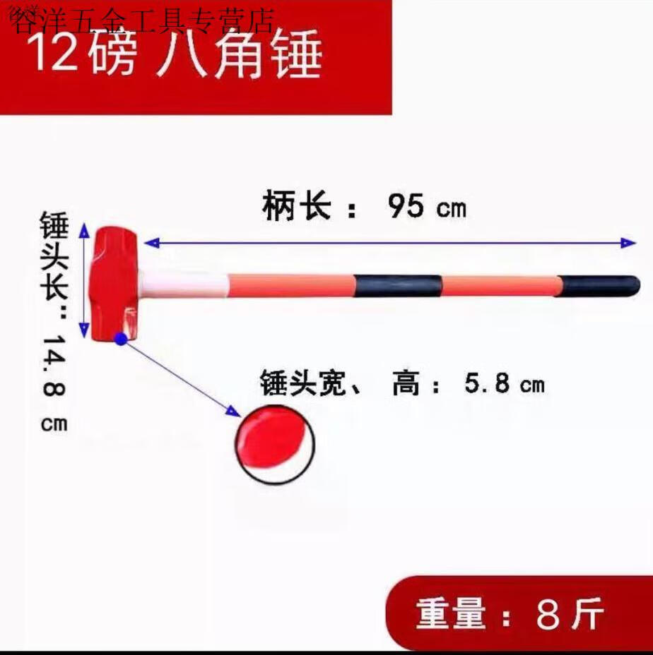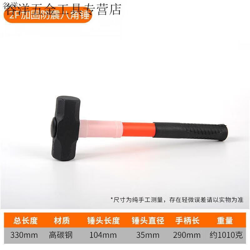 An Junsheng Iron Hammer Hammer Heavy Duty Octagonal Hammer Square Head Hammer Large Wall Demolition Tool Masonry Hammer Two Hammers 8-pound Shockproof Handle Octagonal Hammer (Upgraded Version)