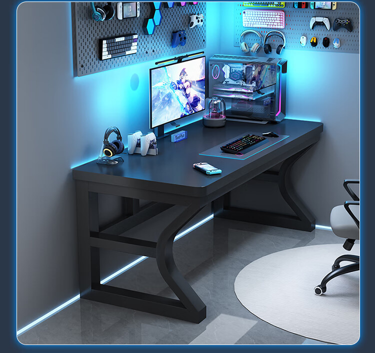 Mudiren solid wood computer desk desktop home computer desk gaming desk office desk simple solid wood desk study desk C all solid wood desktop black + black frame 120x60x75cm