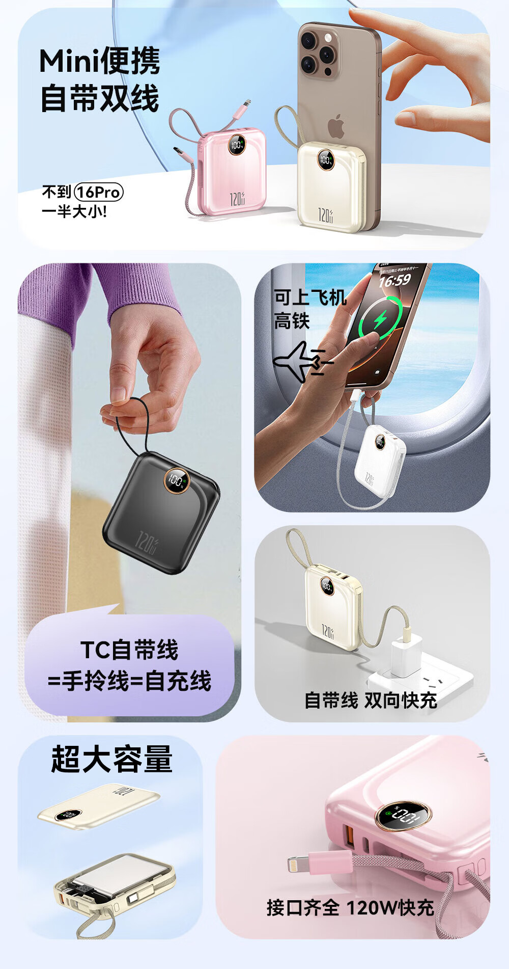 IMF National 3C Certification Number One in Sales丨Can be boarded on airplanes and high-speed trains Super fast charger comes with cable power bank Small and portable power bank Android Apple iPhone17 New 3C Certification 5.0 Super Flash Charge+Top Edition+Flow Heart Yellow Recommended New 3C Certification/Same day and next day delivery 5.0 Top Edition丨Can be boarded on airplanes