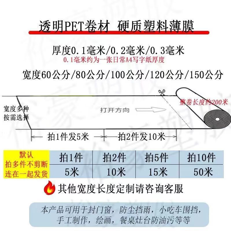 Qinkai transparent pet film roll hard plastic insulating film high temperature resistant polyester sheet pvc release film polyester film transparent (0.3 mm thick) 60 cm wide * 5 meters long