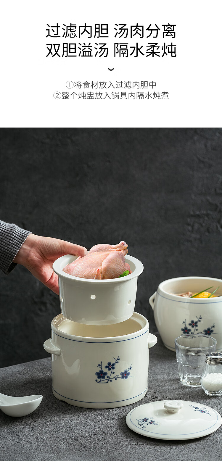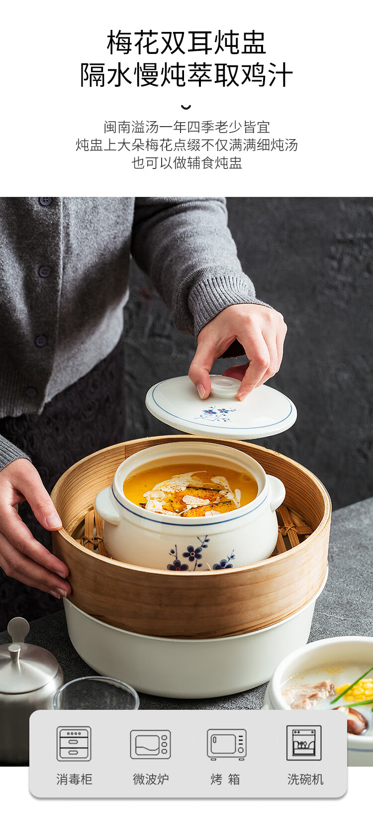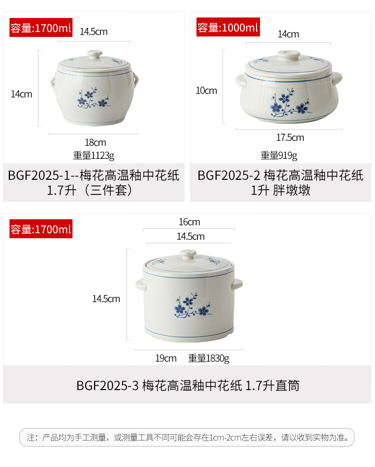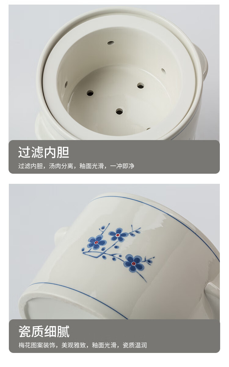 Household ceramic stew pot with lid, water-proof stew pot, crock pot, hotel restaurant special light luxury steaming pot soup bowl, plum blossom glaze medium flower paper 1 liter-Pangdundun