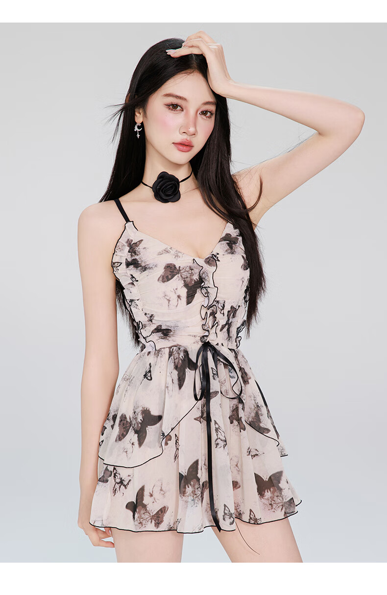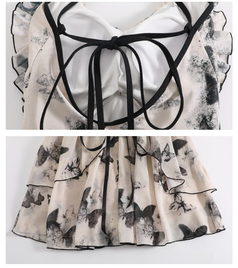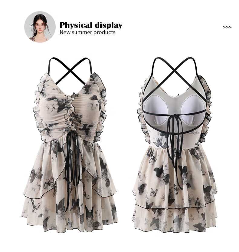 Lugeli swimsuit for women in hot springs to cover belly swimsuit one-piece sleeveless sexy slim girl adult swimsuit skirt pure desire butterfly swimsuit beige one size fits all recommended 80-120 Jin Jin equals 0.5 kg