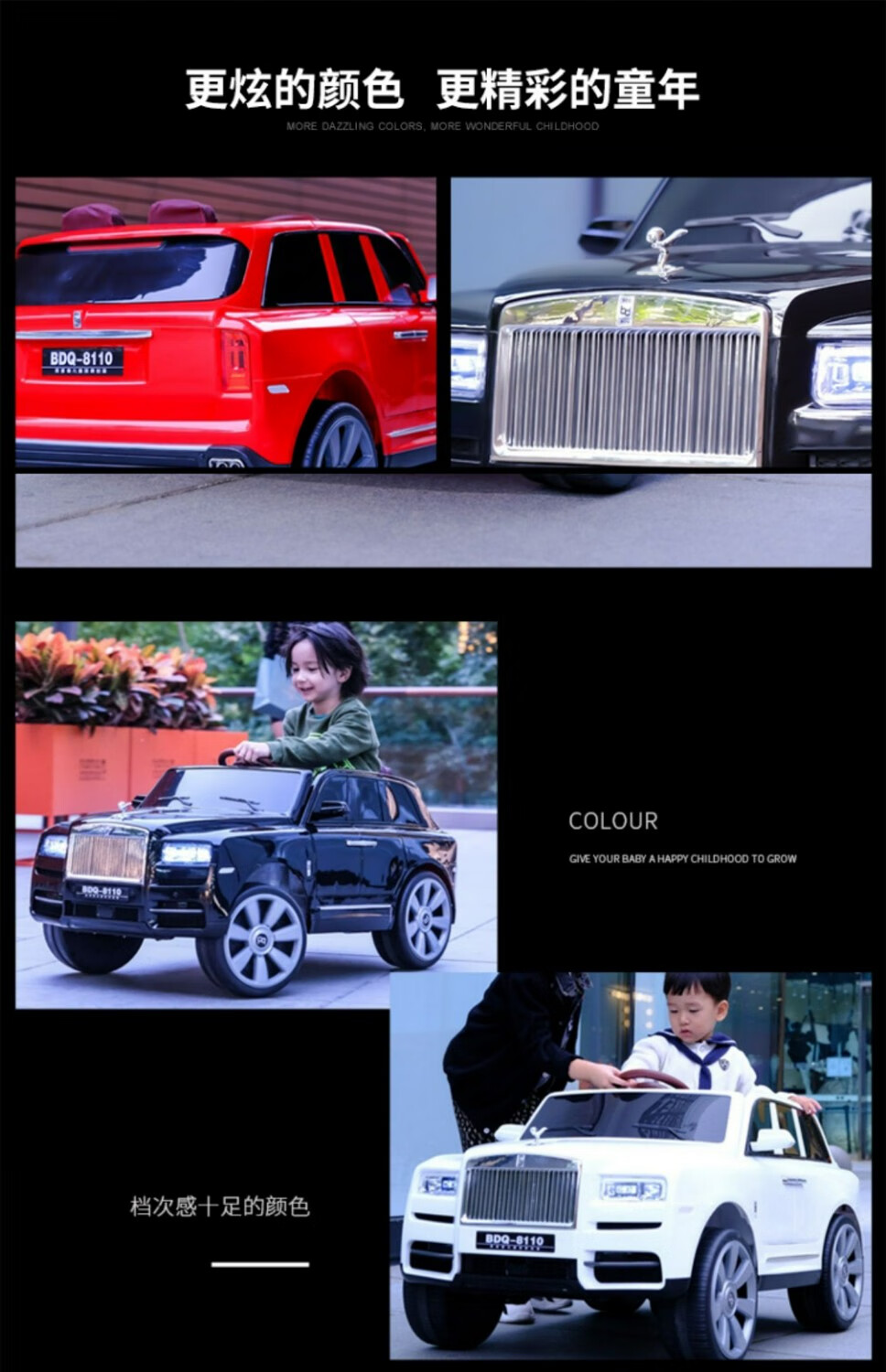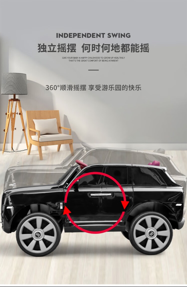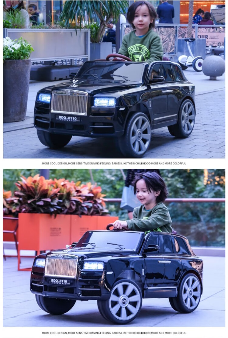 HAOWA Rolls-Royce Cullinan children's electric car for boys and girls remote control toy car off-road vehicle that can sit on four wheels, painted black/remote control/early education/soft seat/swing/12 electric drive