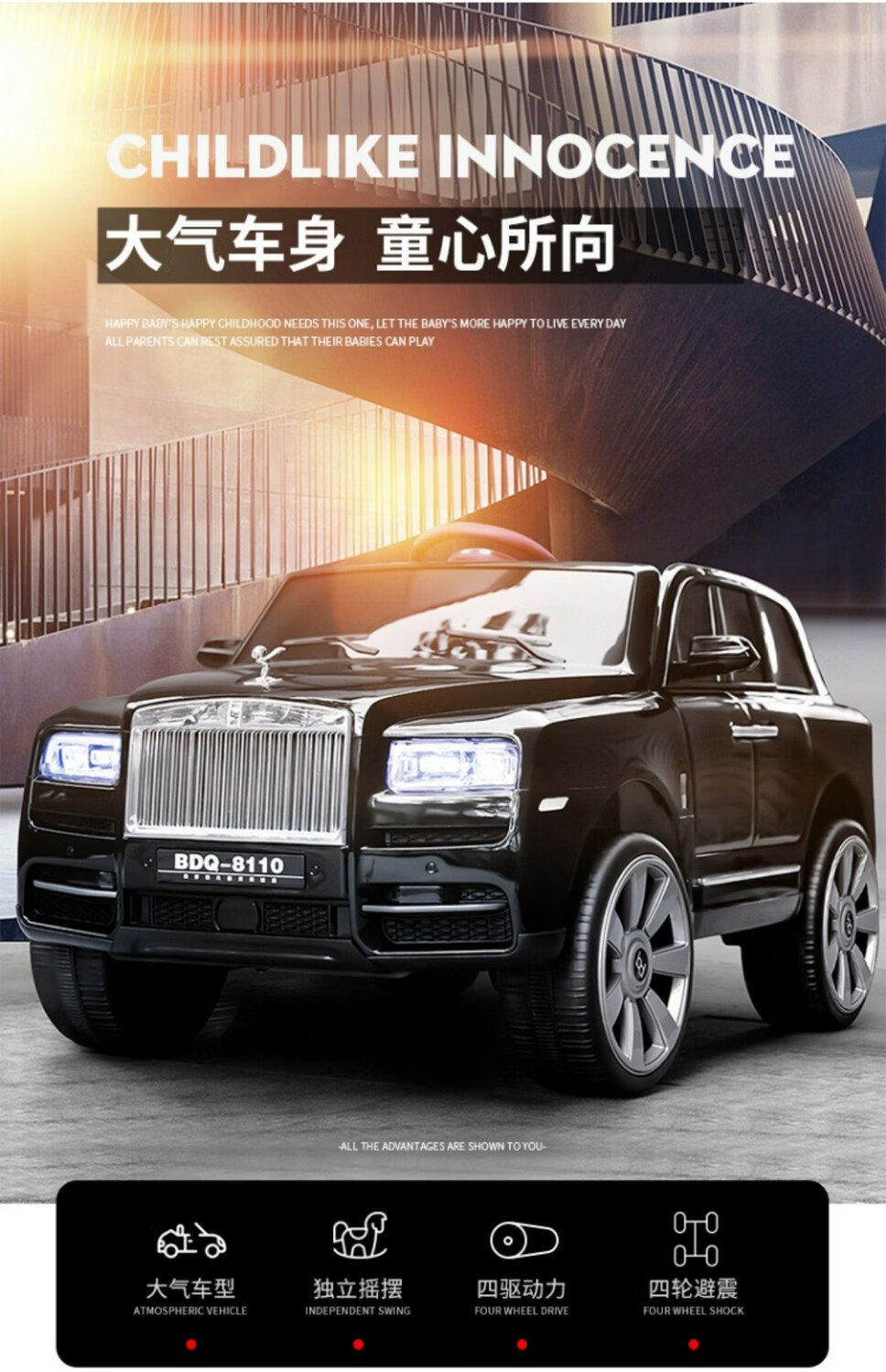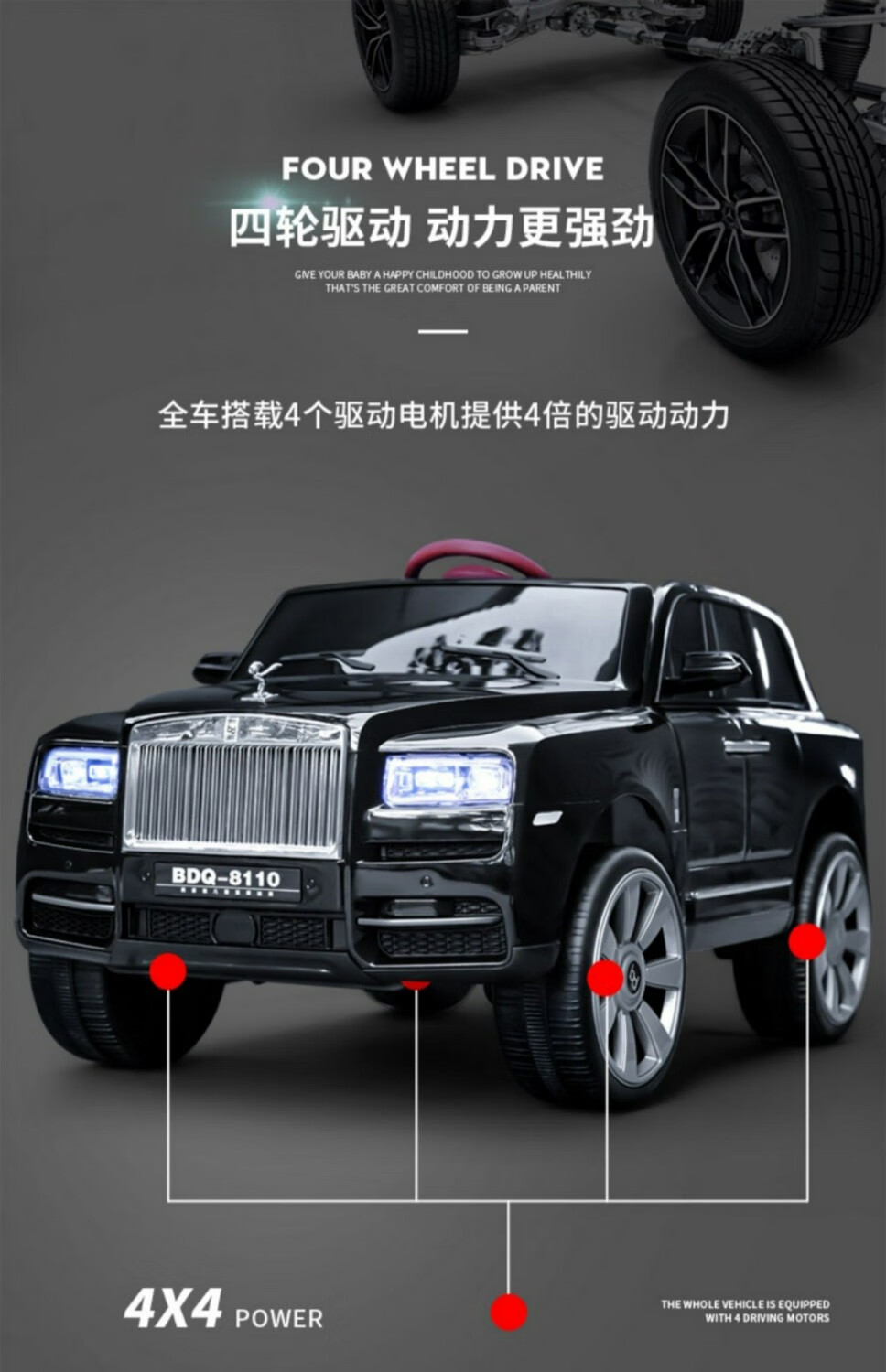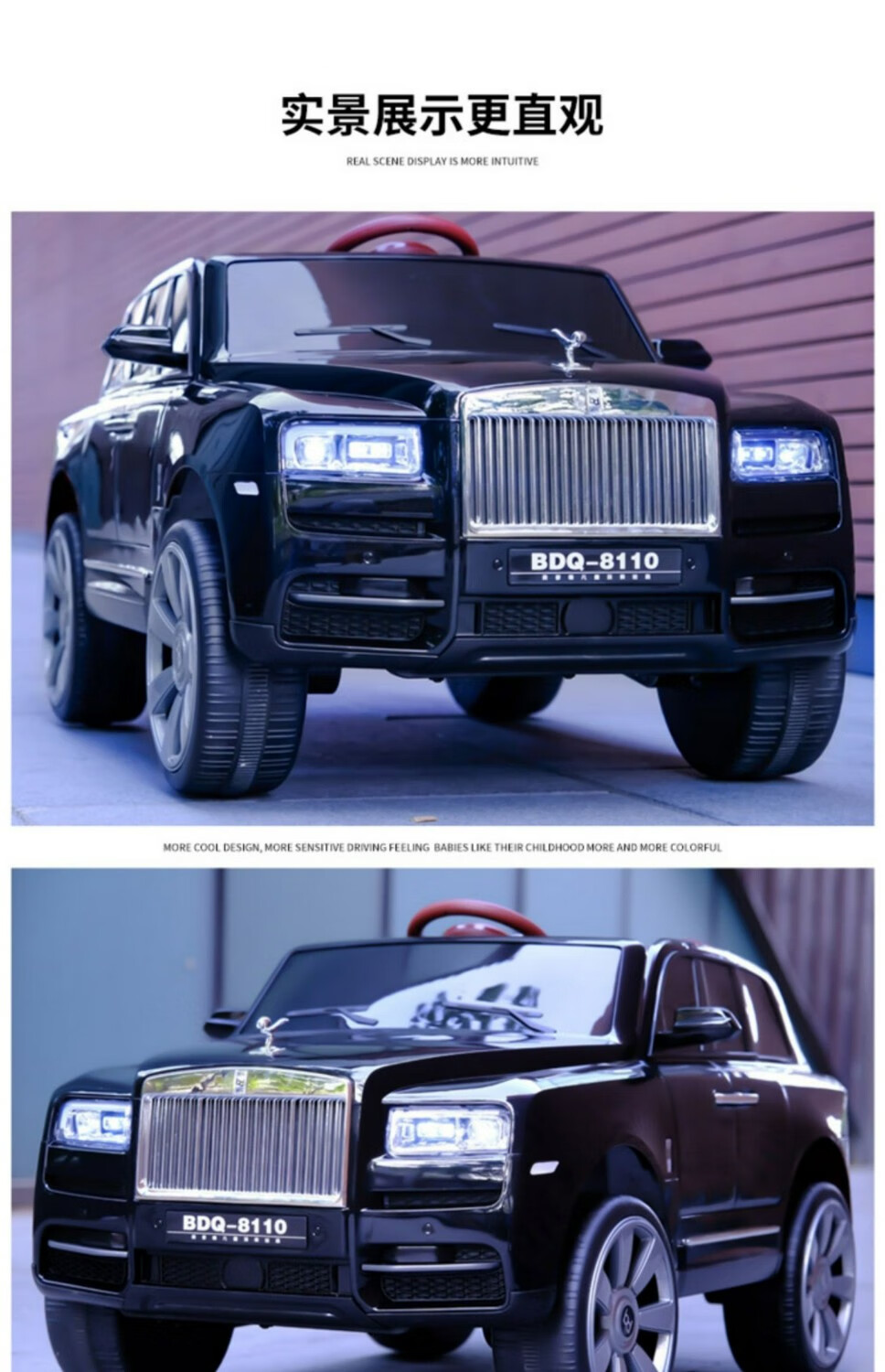 HAOWA Rolls-Royce Cullinan children's electric car for boys and girls remote control toy car off-road vehicle that can sit on four wheels, painted black/remote control/early education/soft seat/swing/12 electric drive