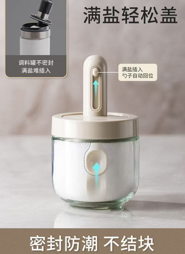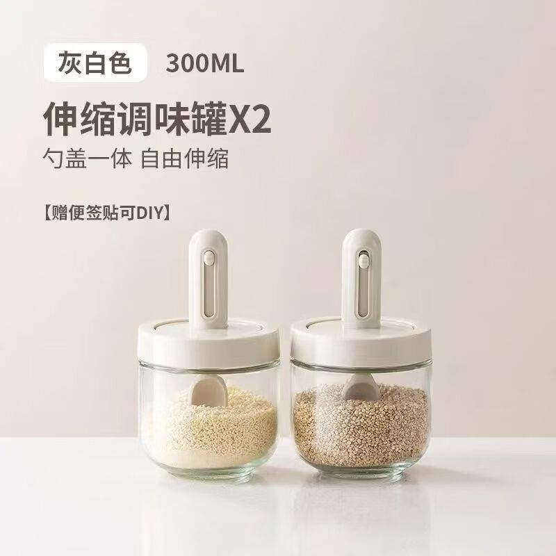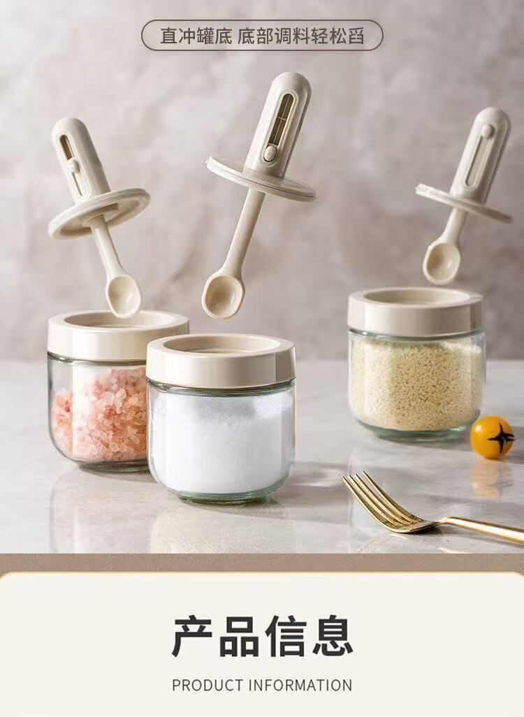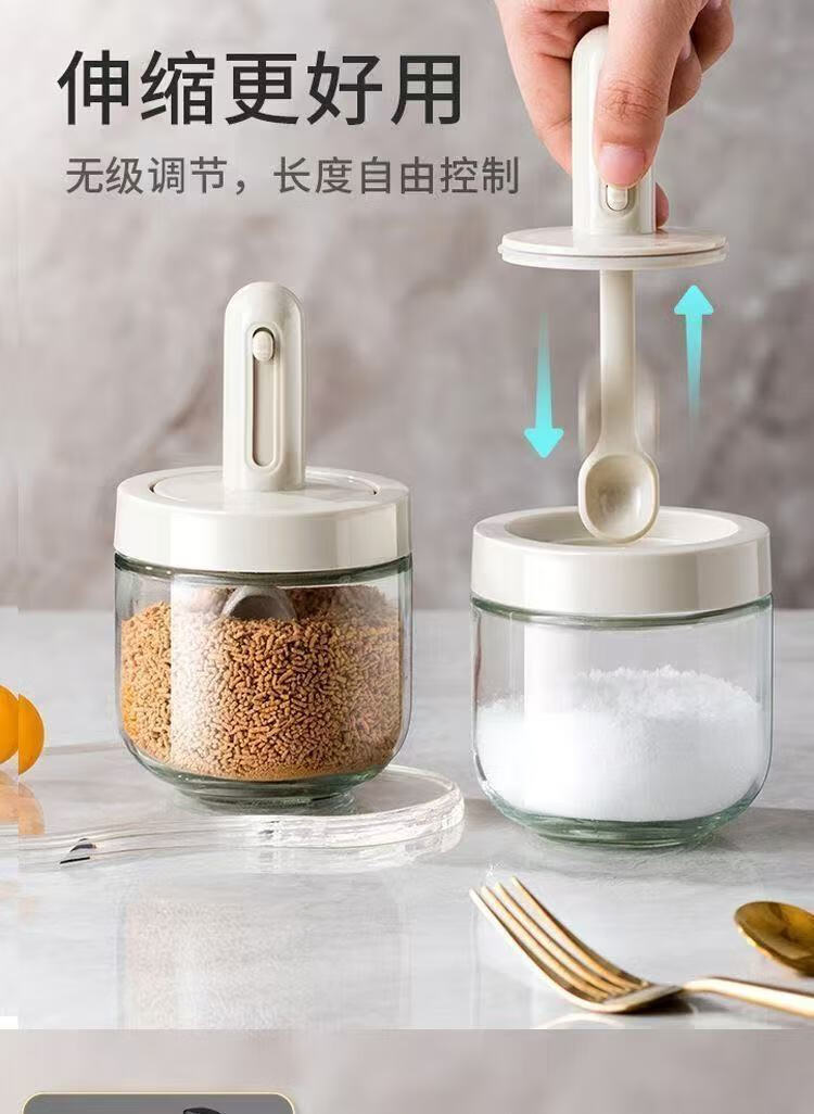 An Junsheng's new glass seasoning jar telescopic spoon sealed seasoning integrated moisture-proof kitchen seasoning bottle household MSG salt jar set new seasoning jar * 1