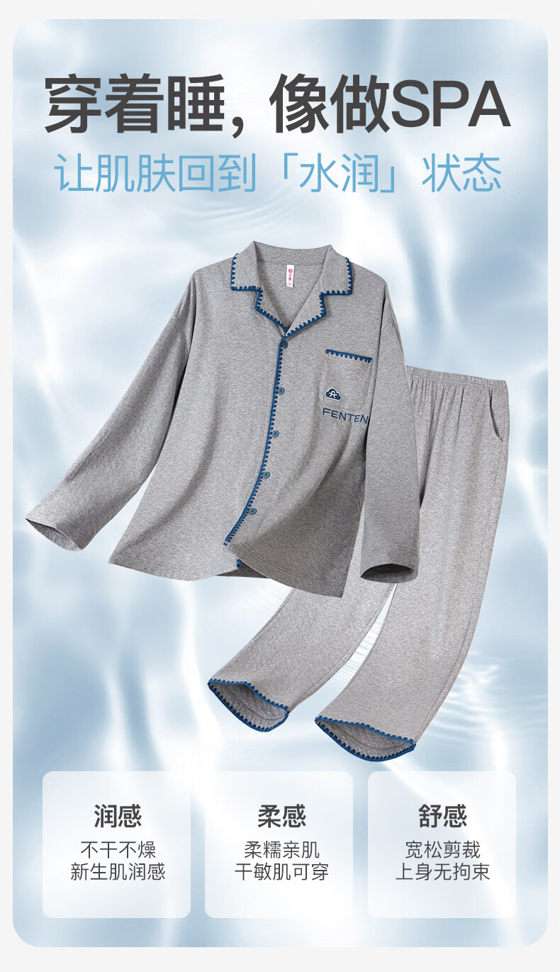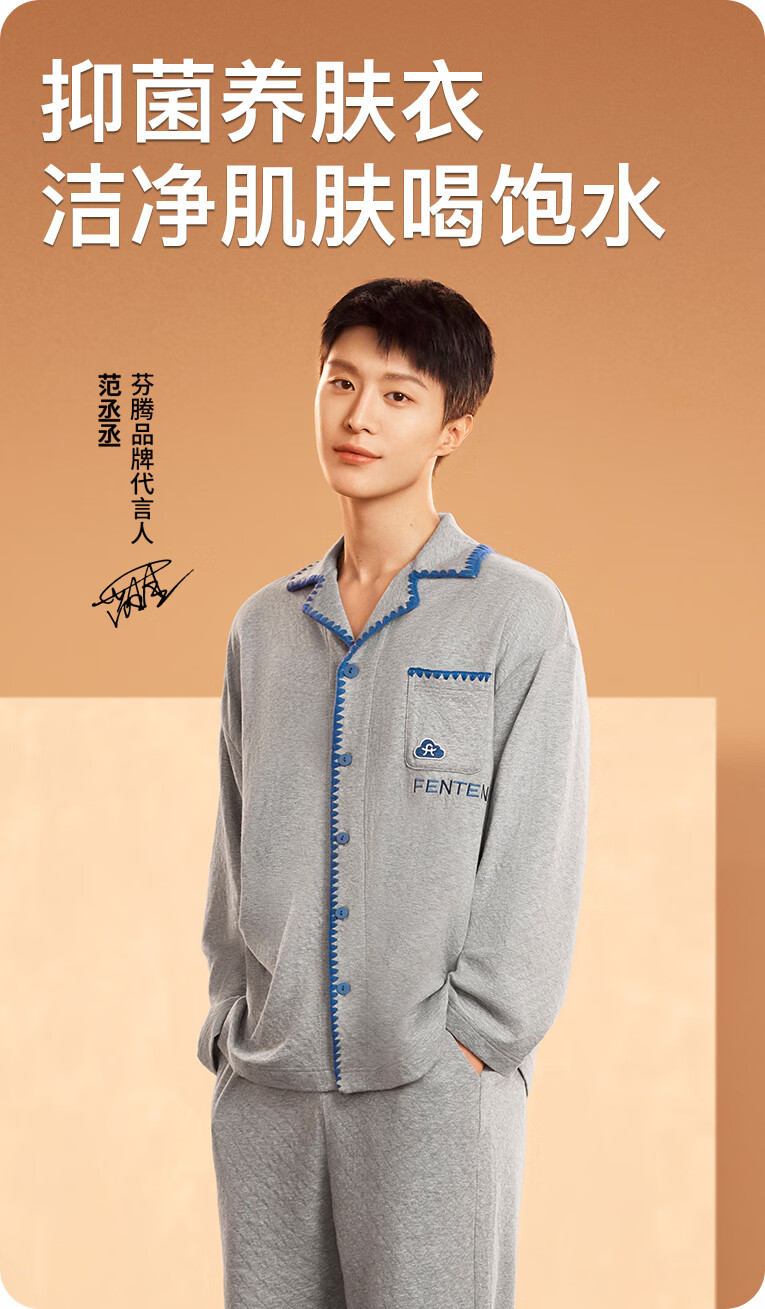 Fen Teng Couple Pajamas Fan Chengcheng Same Style 2025 New Spring Simple Casual Star Same Style Home Wear Set Huahui-Women's L