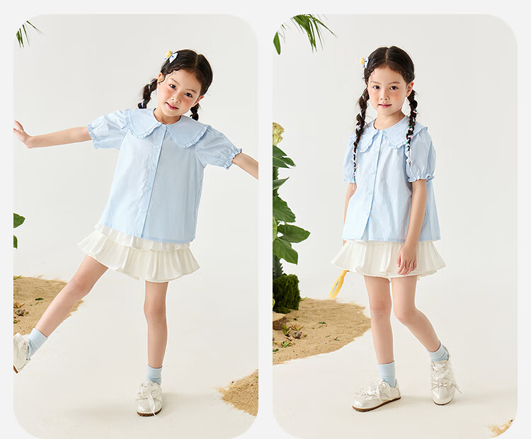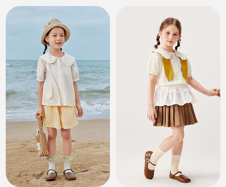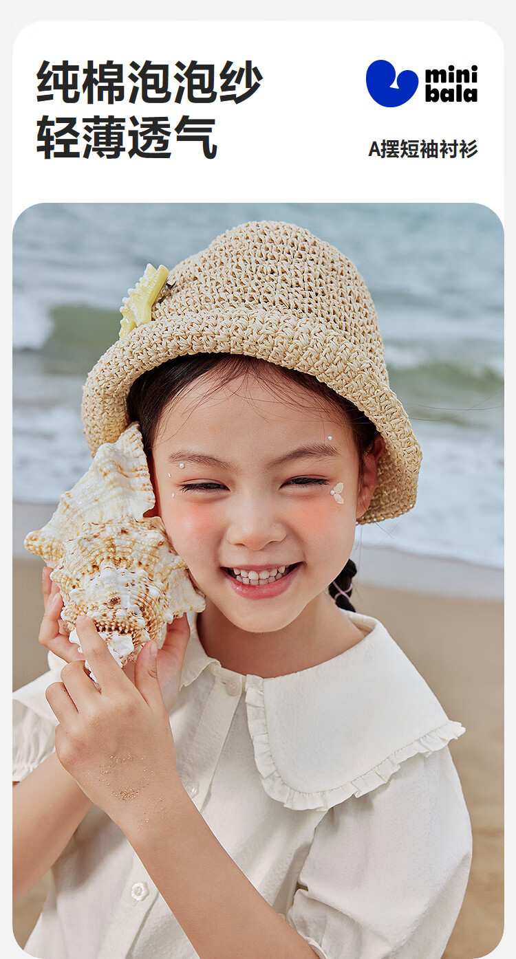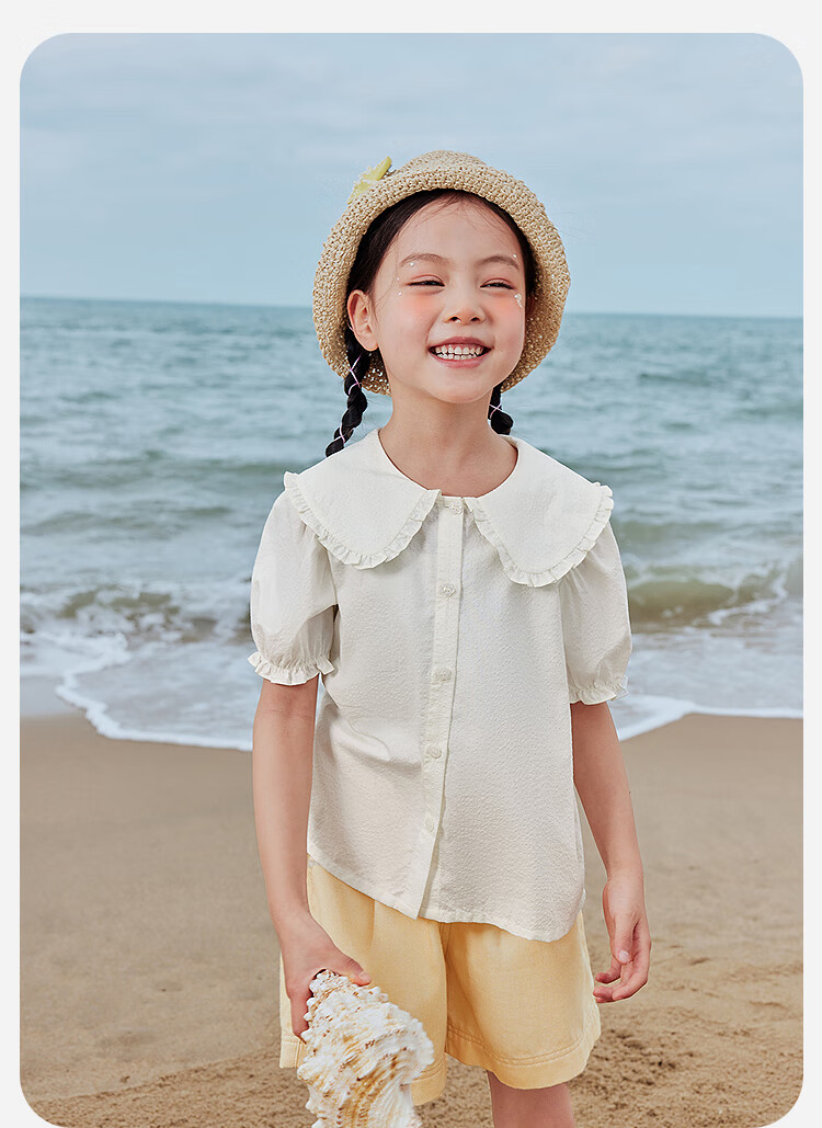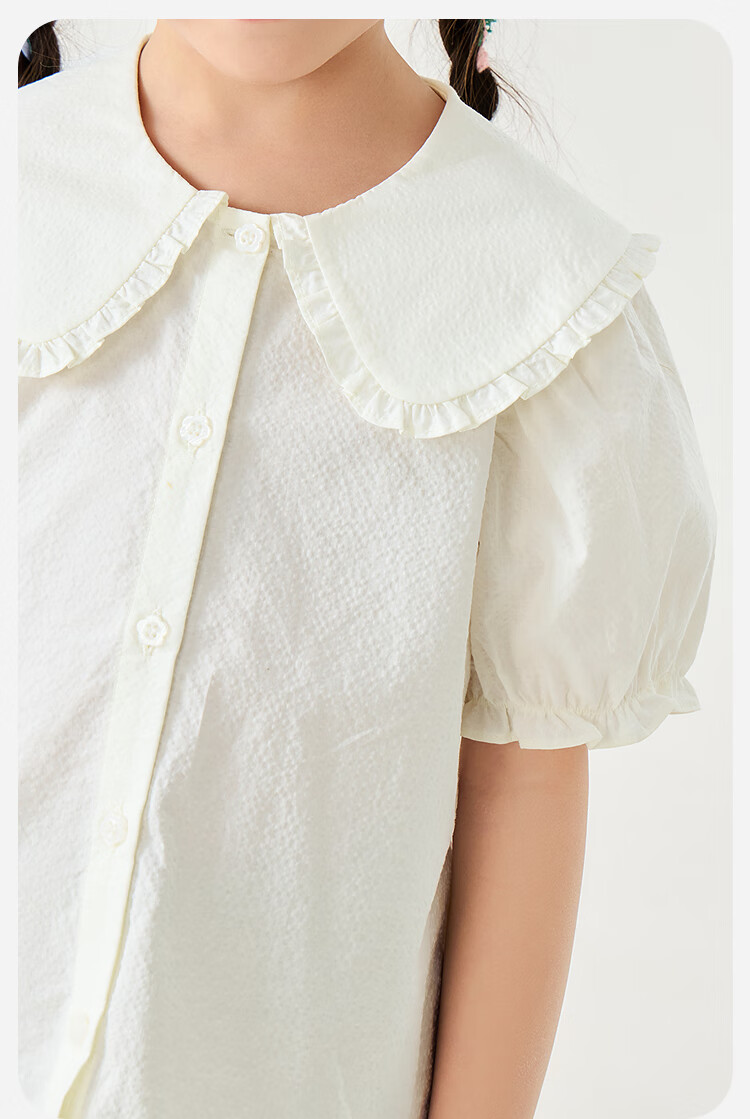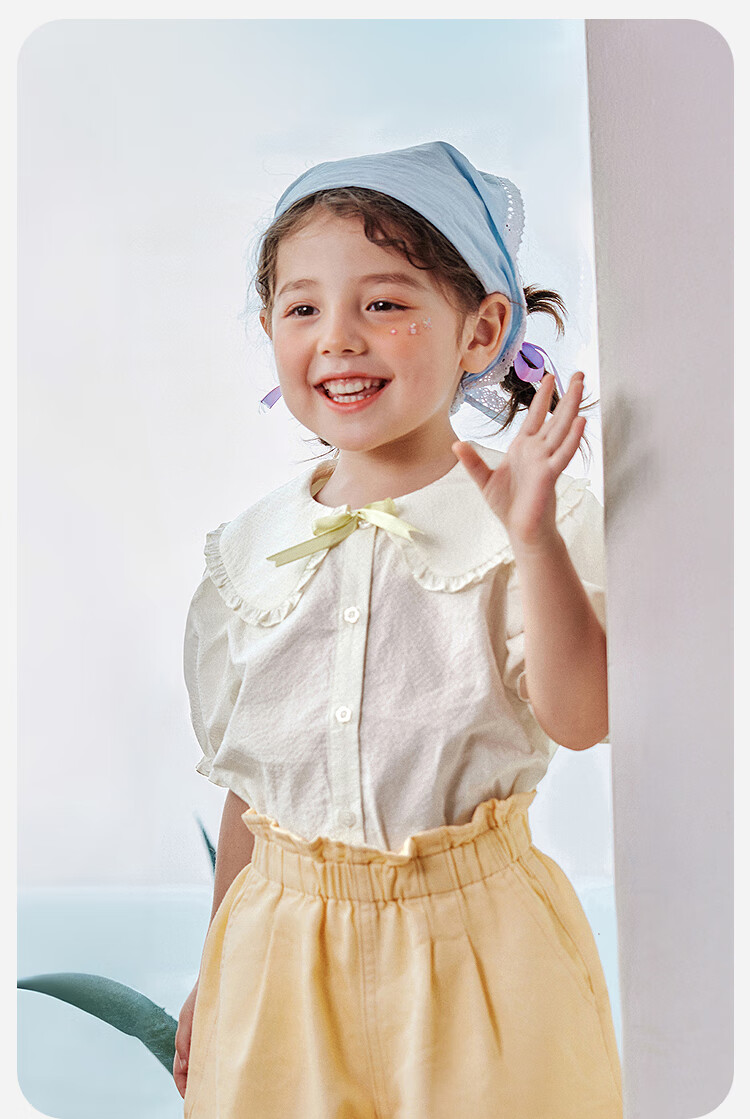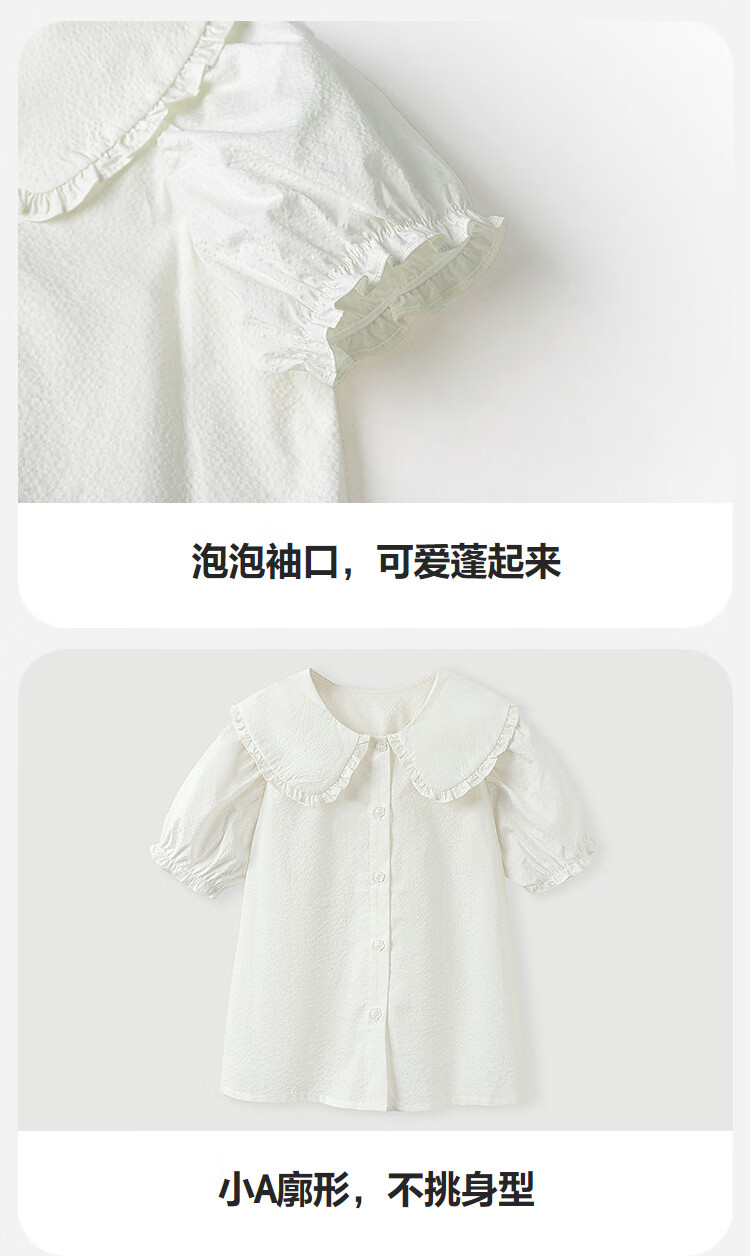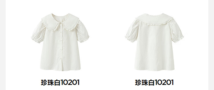 Mini Bala Pure Cotton Girls Soft Breathable Sweet Cute Short Sleeve Shirt Baby Light Top Pearl White 10201 110
