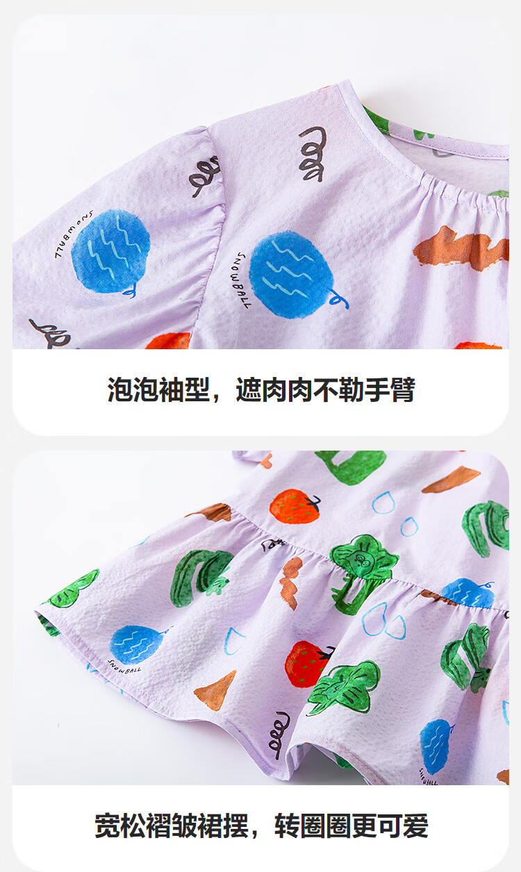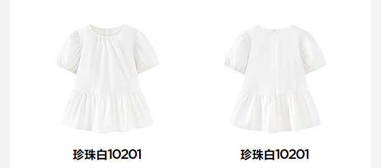 Mini Balabala Girls Pure Cotton Soft Puff Sleeve Short Sleeve Shirt Summer New Baby Sweet Top Pearl White 10201 120