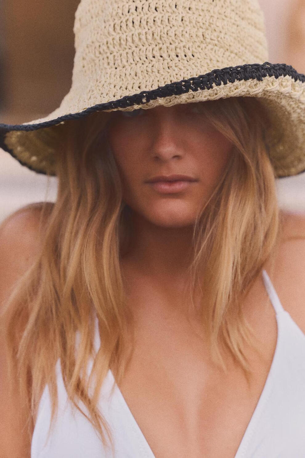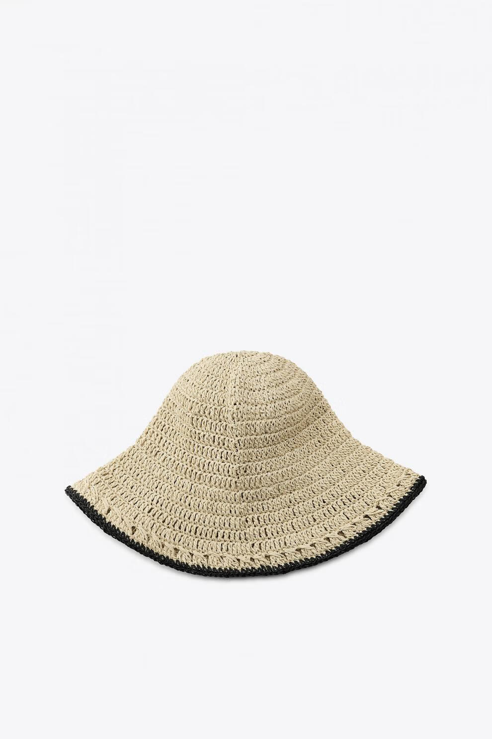 ZARA2025 Spring New Women's Clothing Contrast Color Design Fashionable and Versatile Fisherman Hat 0654091052 Official Authentic Beige M (56-58cm)