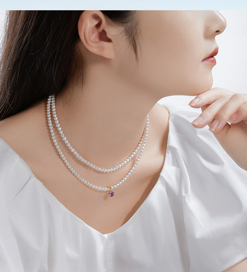 IL&CO Youke Zhenjingcai Natural Gemstone Pearl Necklace Women's Universal Buckle Colorful Treasure Birthday Valentine's Day Gift Garnet Pearl Necklace