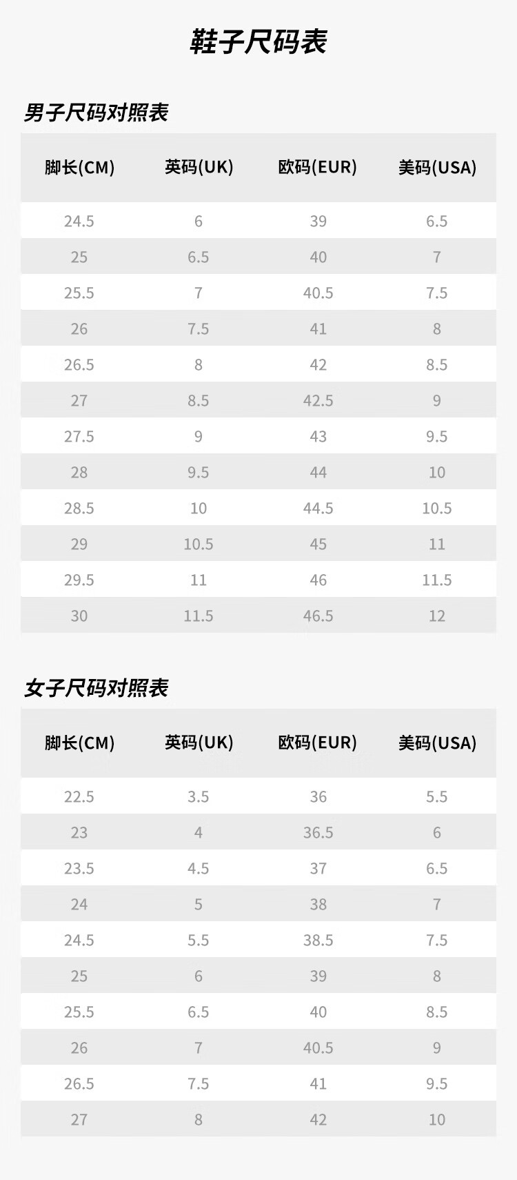 China (cm) 36 - 37 38 - 39 40 - 42 43 - 44 45 - 47