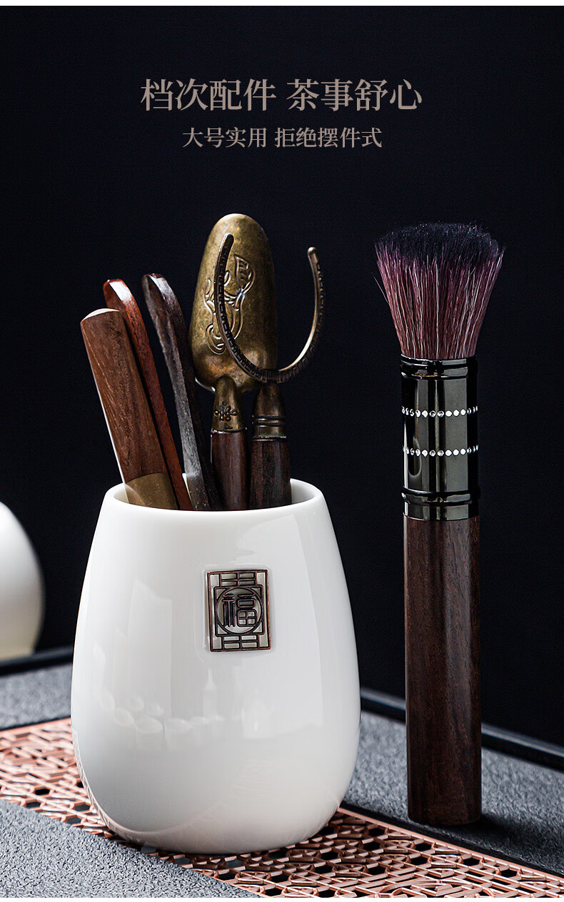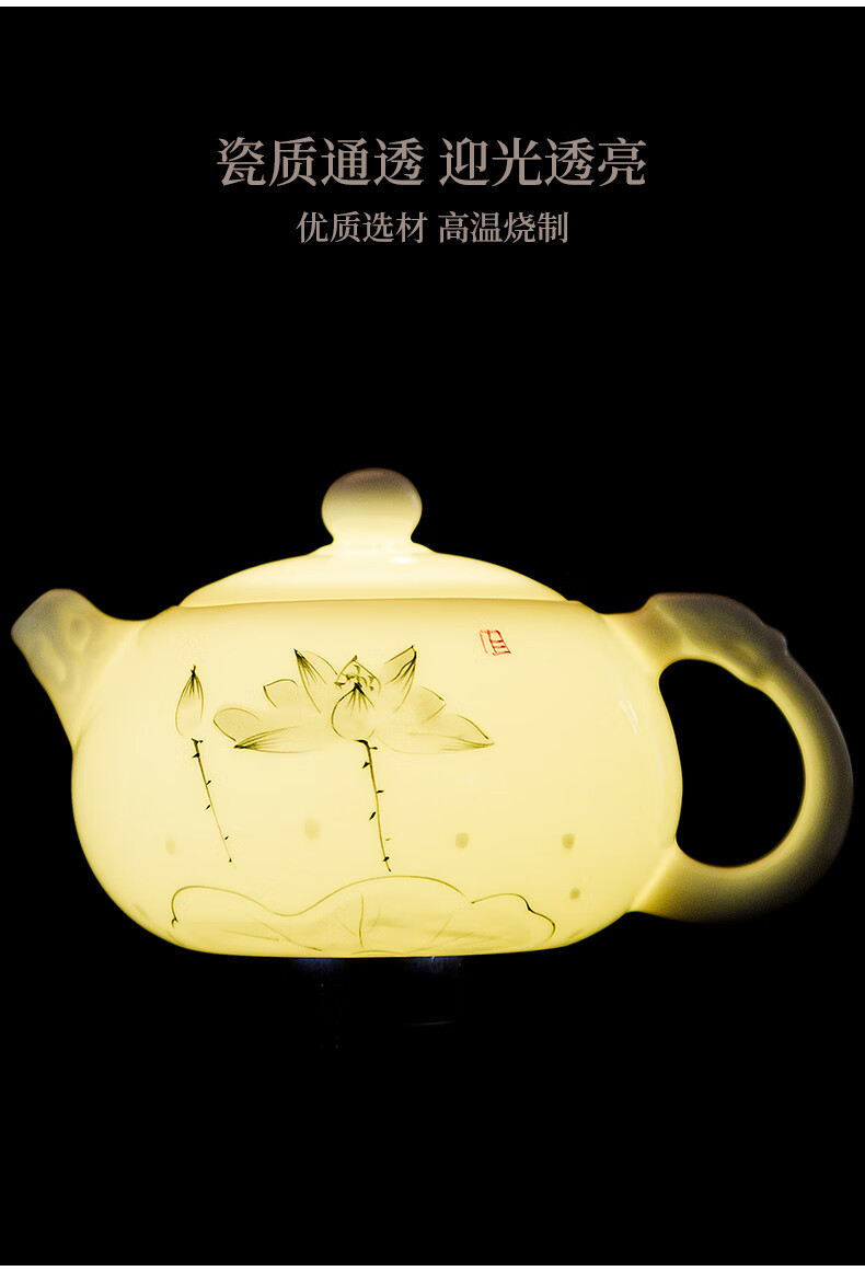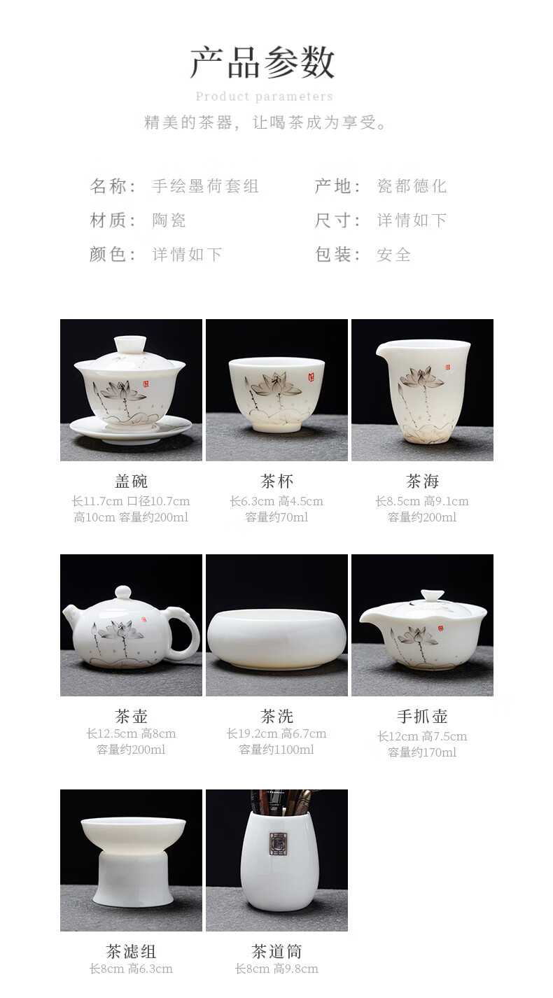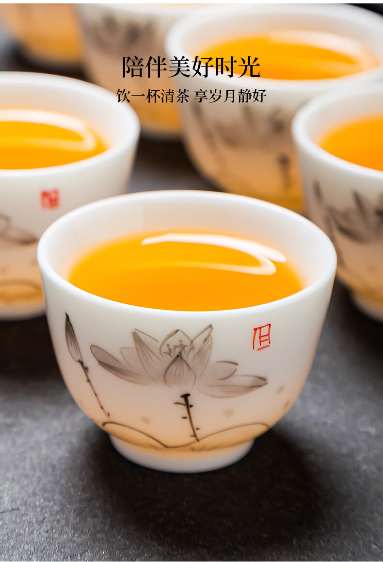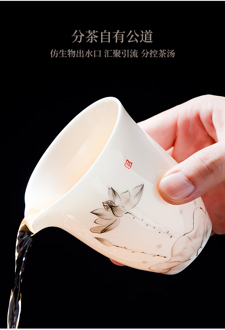 Jingcizhai hand-painted kung fu tea set household mutton-fat jade white porcelain covered bowl teapot tea cup light luxury high-end new style hand-painted ink lotus covered bowl Xishi teapot 12 heads