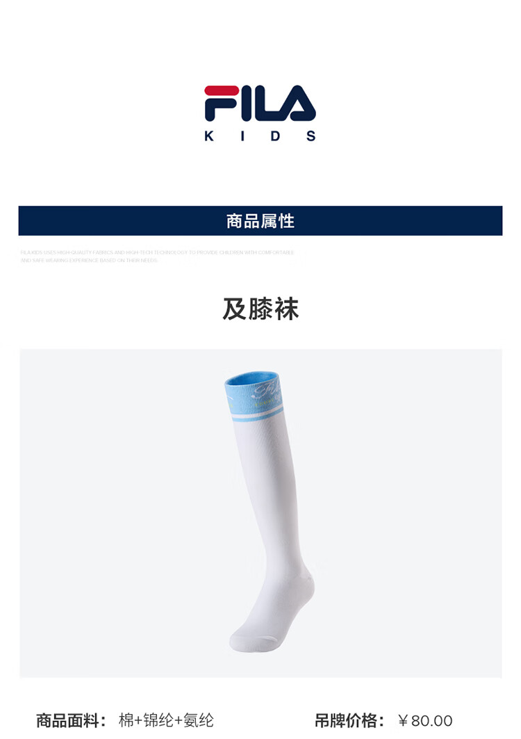 FILA Antibacterial Children's Accessories Socks 2025 Summer New Over-the-Knee Socks Girls' Knee-High Socks WT 3-5 years old M