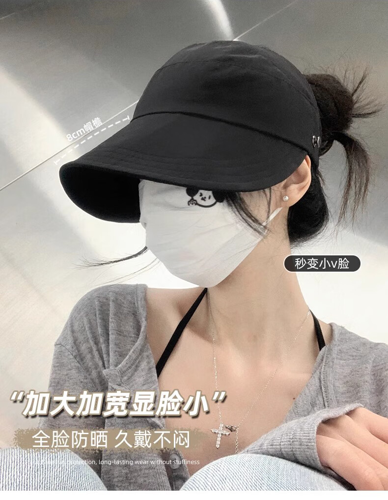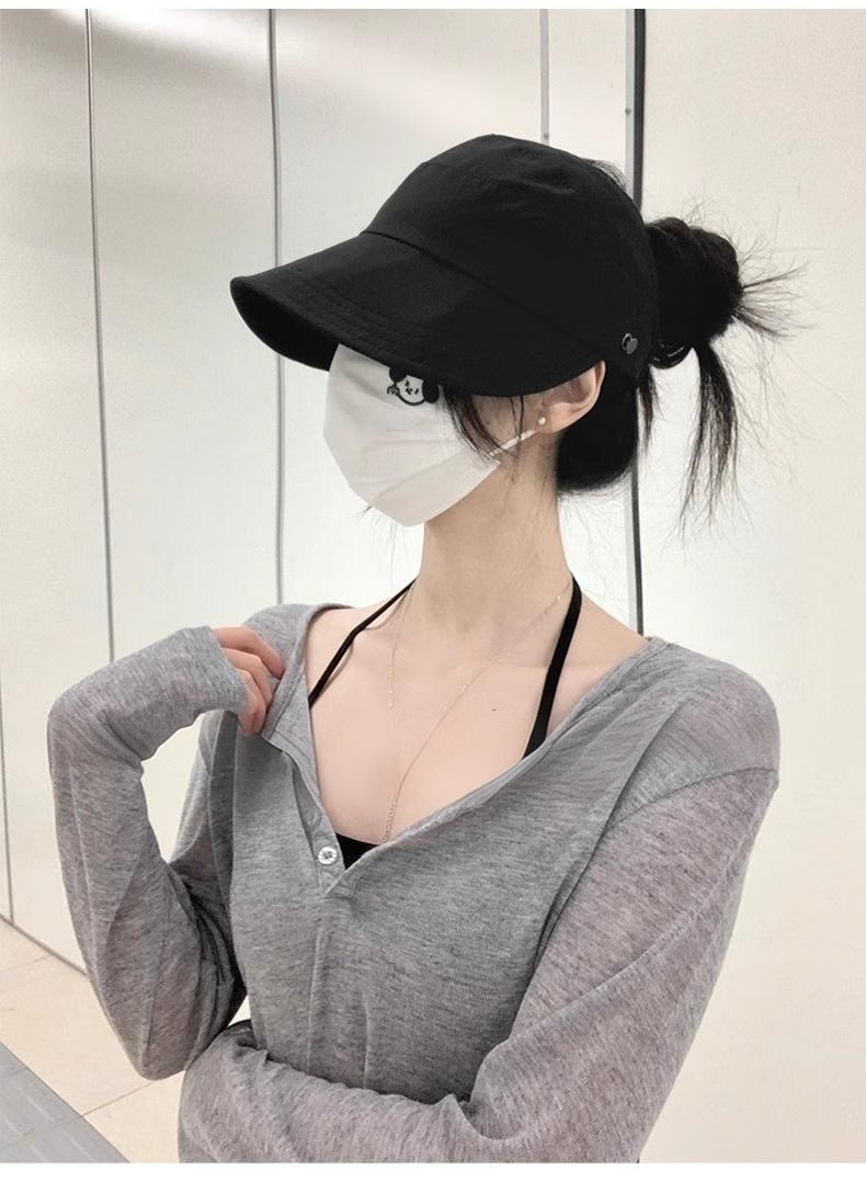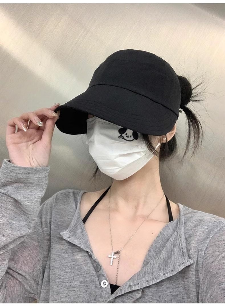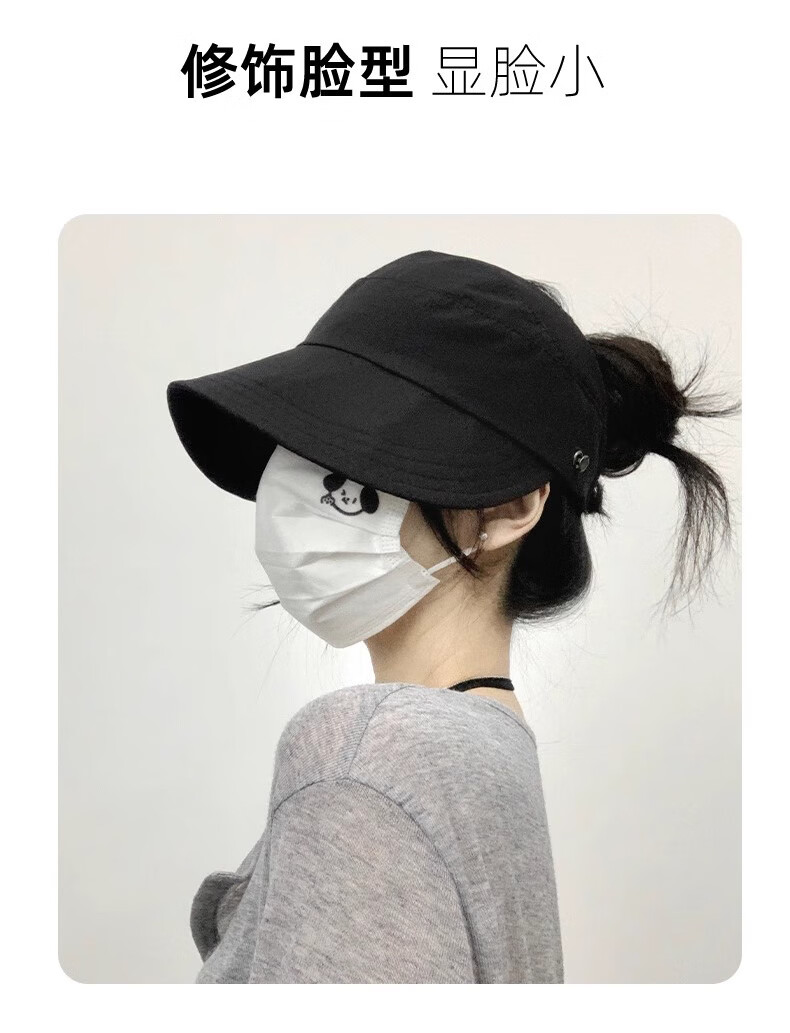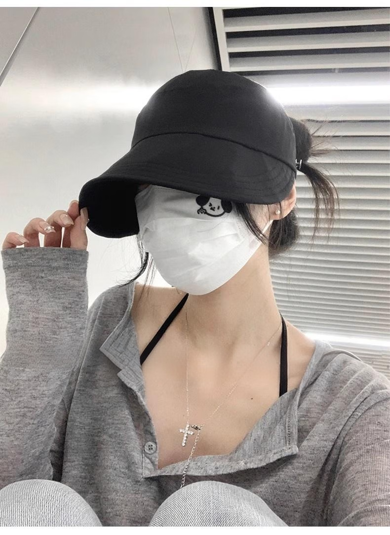 Demi Anissa Sun Protection Hat Women's New Breathable Fisherman Hat Breathable Cycling Big Head Circumference Summer Sun Hat Anti-UV Peaked Hat Women Black Half Hollow Top Can Be Ponytailed One Size
