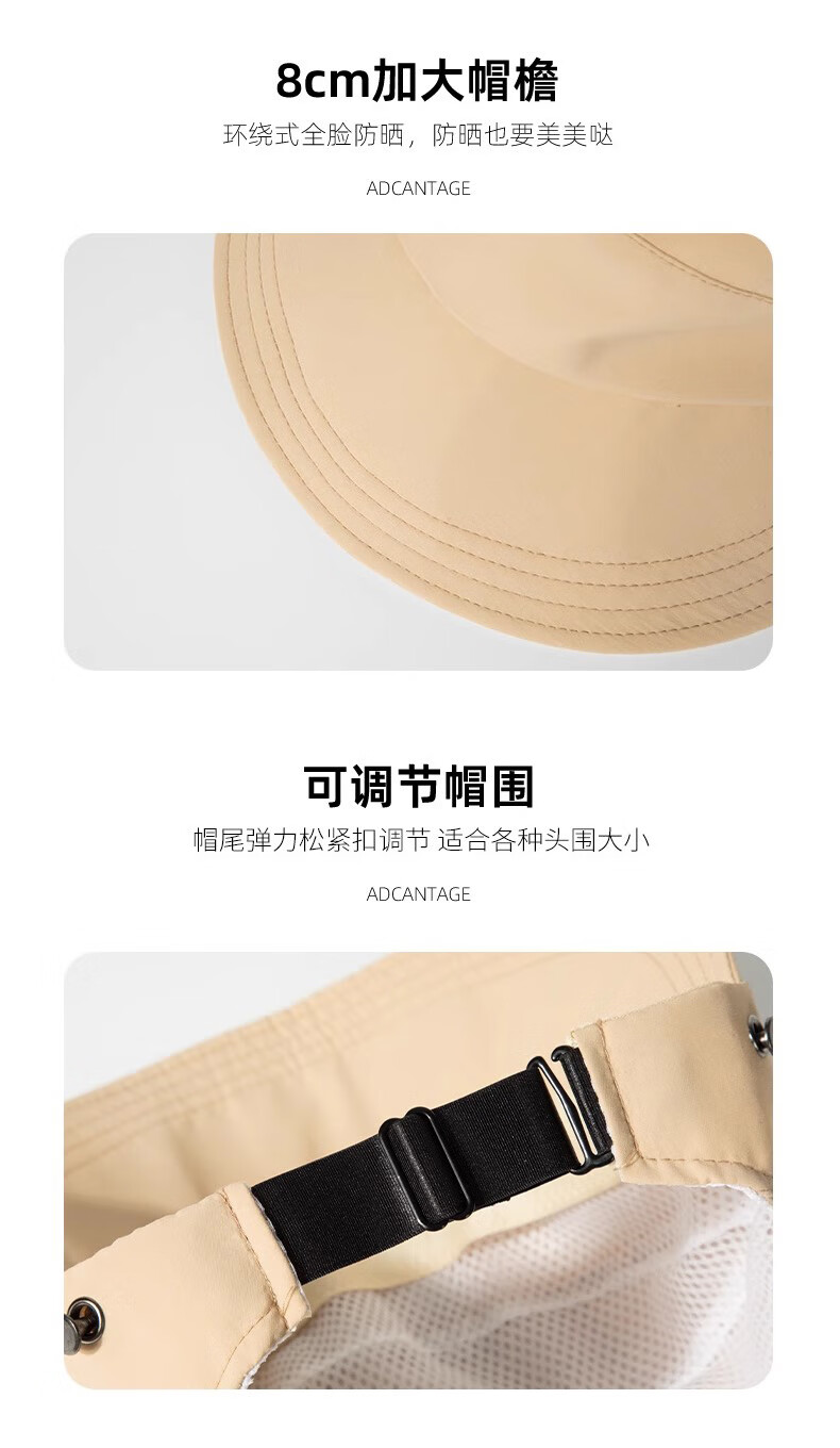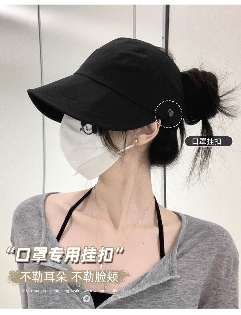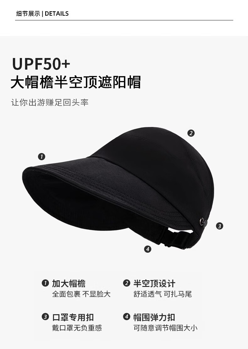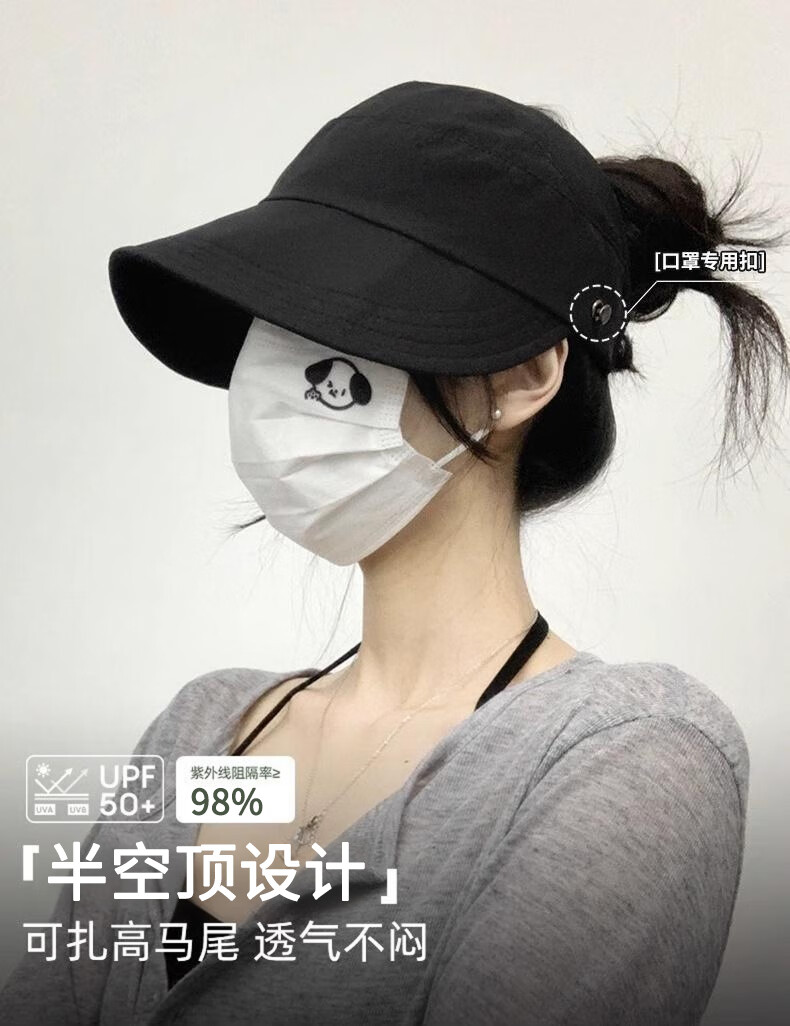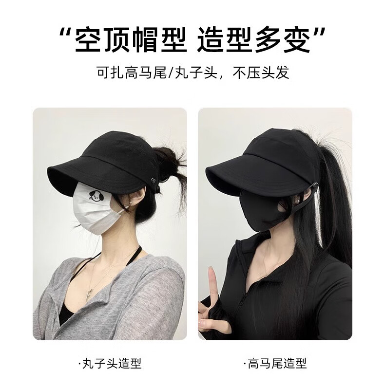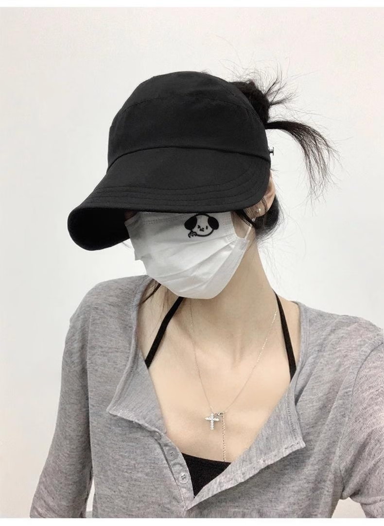 Demi Anissa Sun Protection Hat Women's New Breathable Fisherman Hat Breathable Cycling Big Head Circumference Summer Sun Hat Anti-UV Peaked Hat Women Black Half Hollow Top Can Be Ponytailed One Size