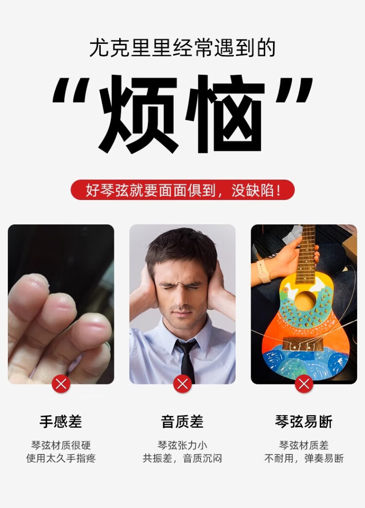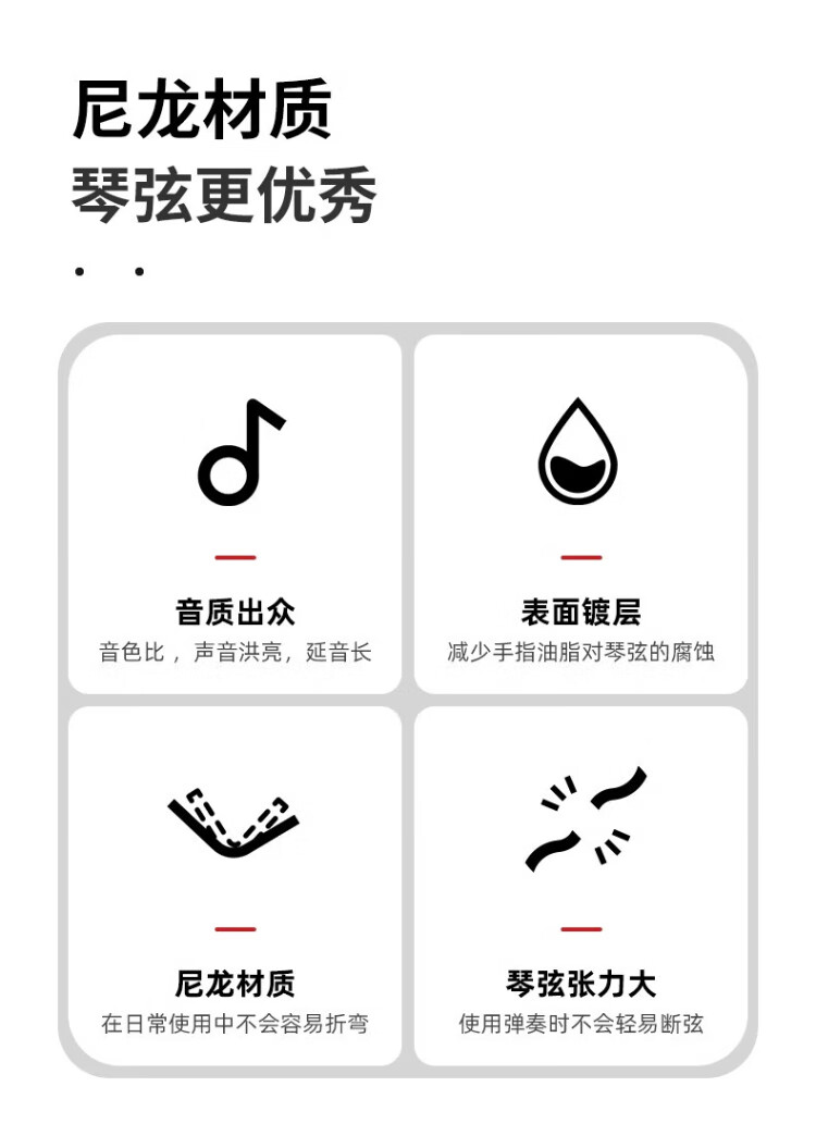 Yuanzu ukulele strings carbon 21 23 26 inches universal white nylon strings full set of transparent ukulele strings imported transparent carbon strings set recommended for beginners丨available for children's guitars