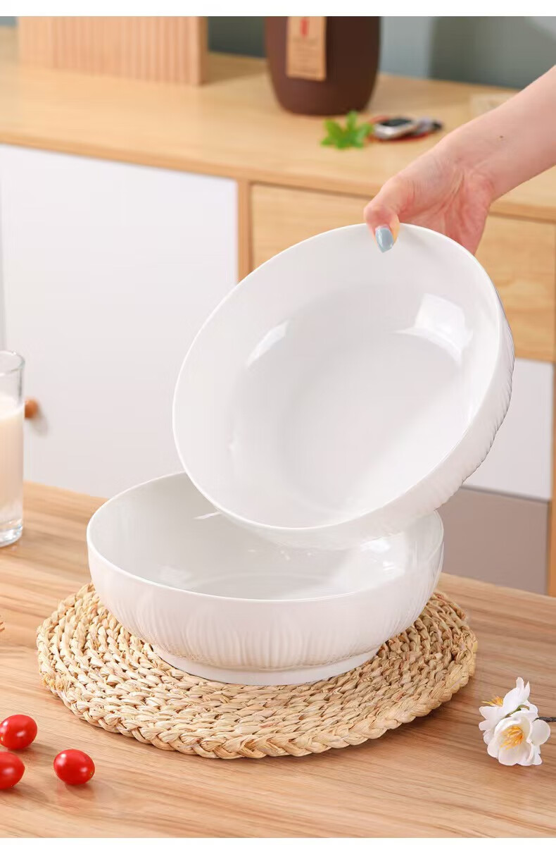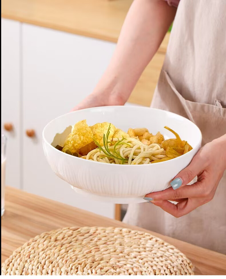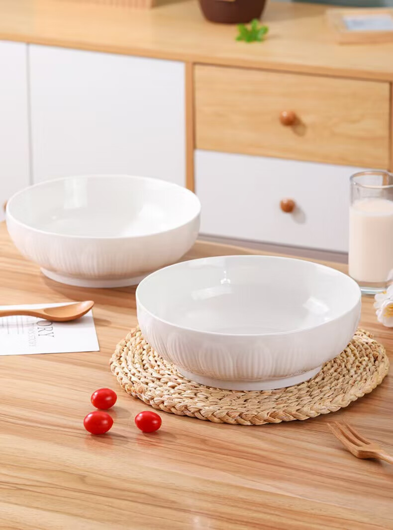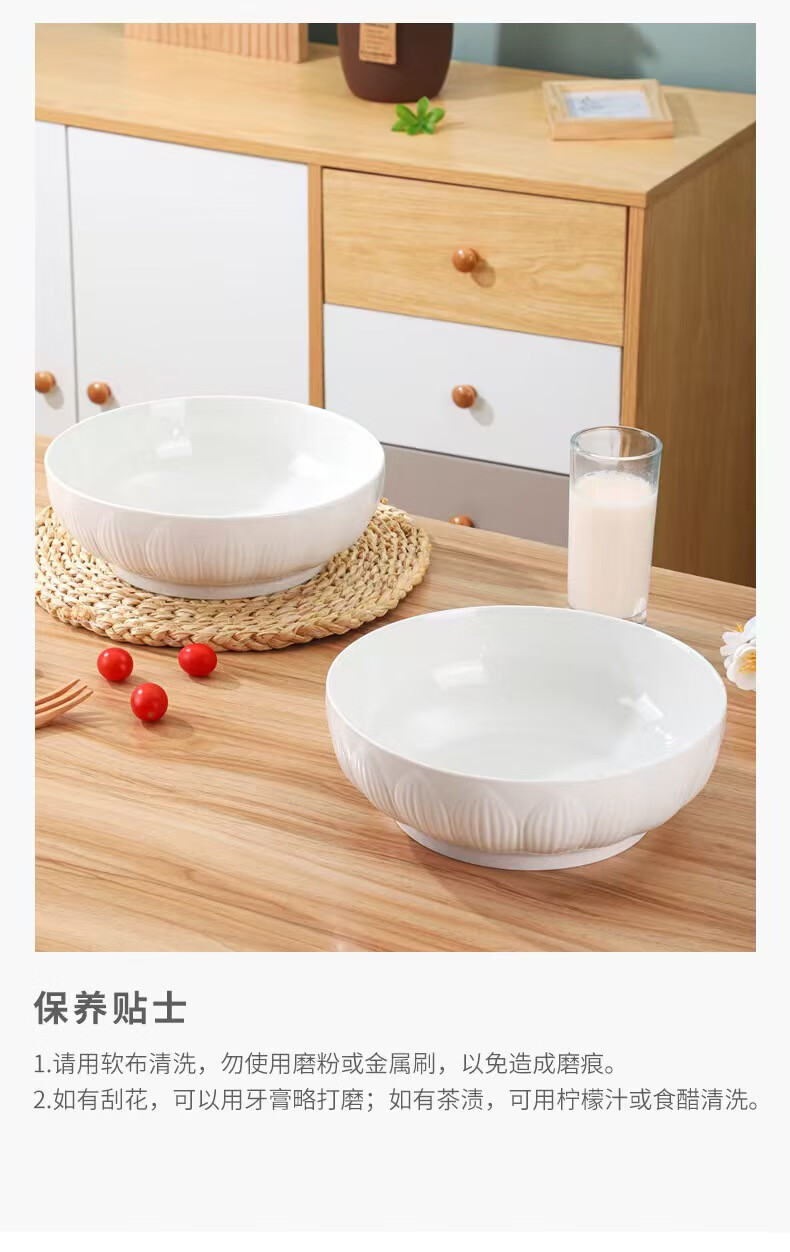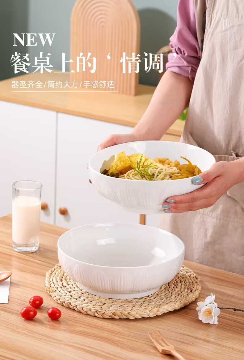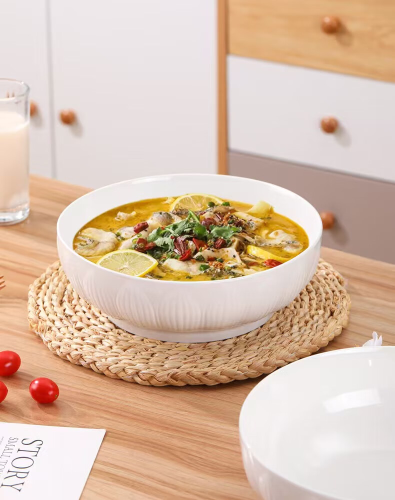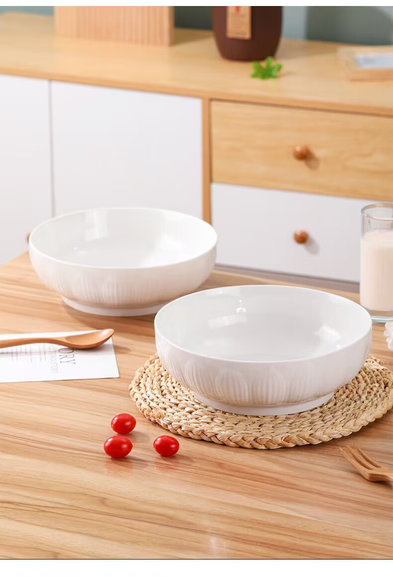 简约纯白浮雕9英寸莲花电子碗家用大号汤碗水煮鱼汤盆 【白莲花】9英寸电子1只装 9英寸 1个 莲花碗