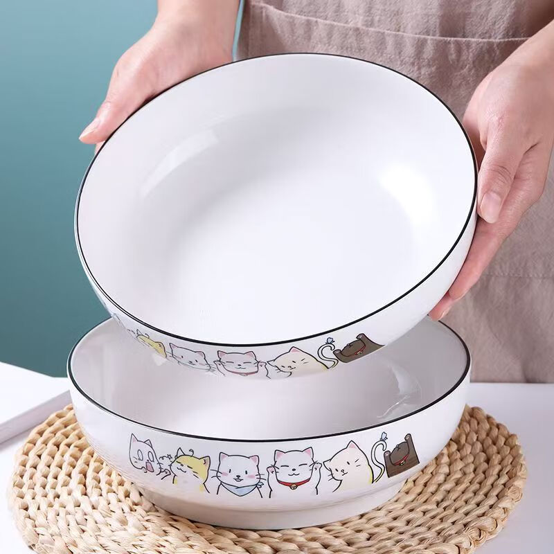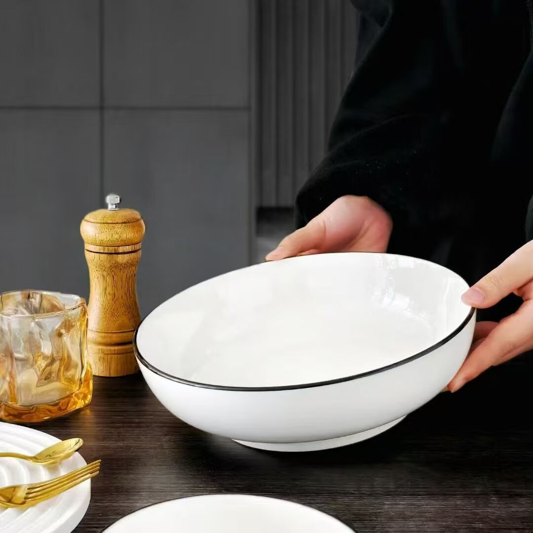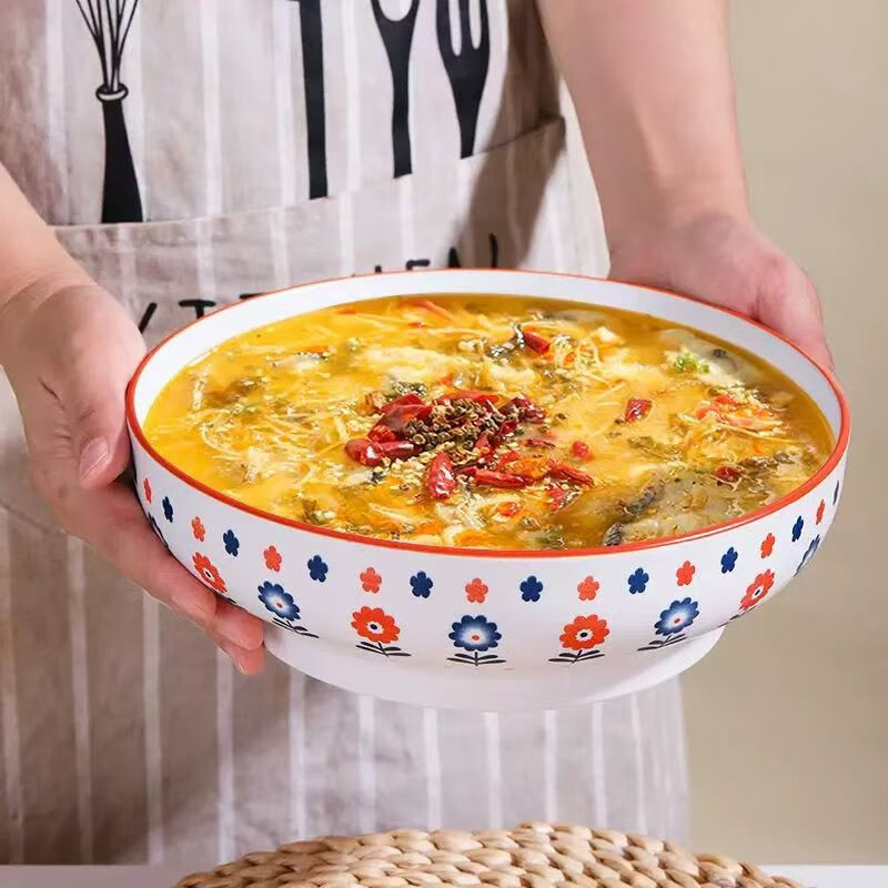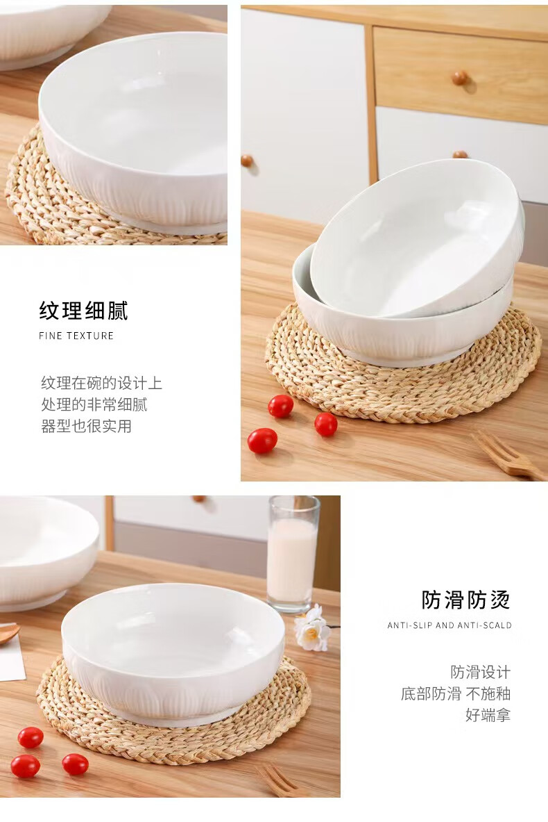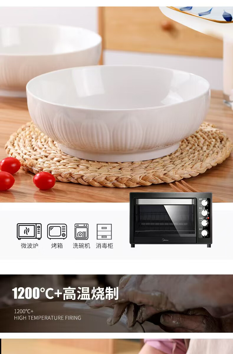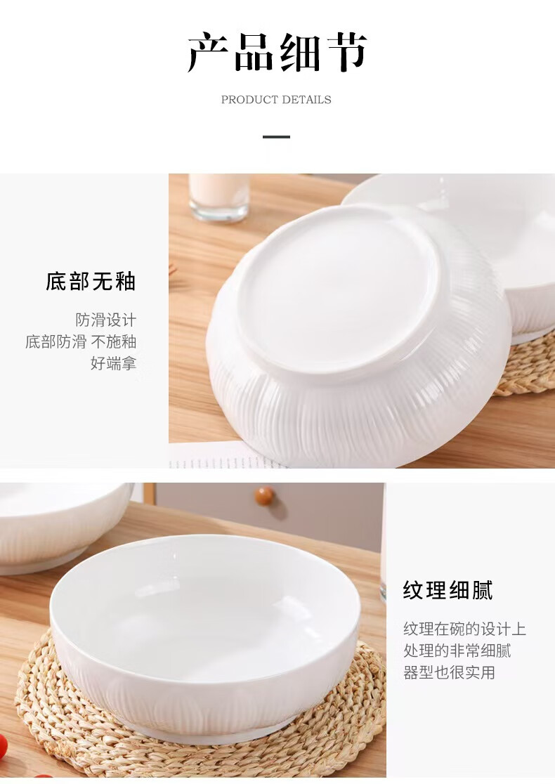 简约纯白浮雕9英寸莲花电子碗家用大号汤碗水煮鱼汤盆 【白莲花】9英寸电子1只装 9英寸 1个 莲花碗