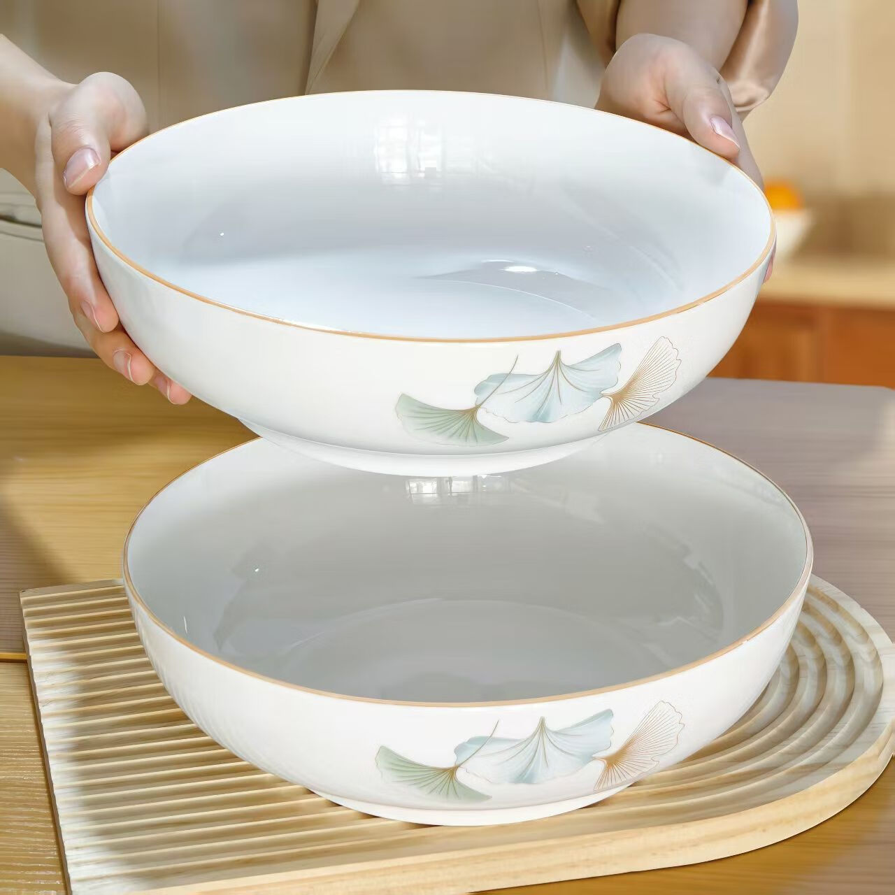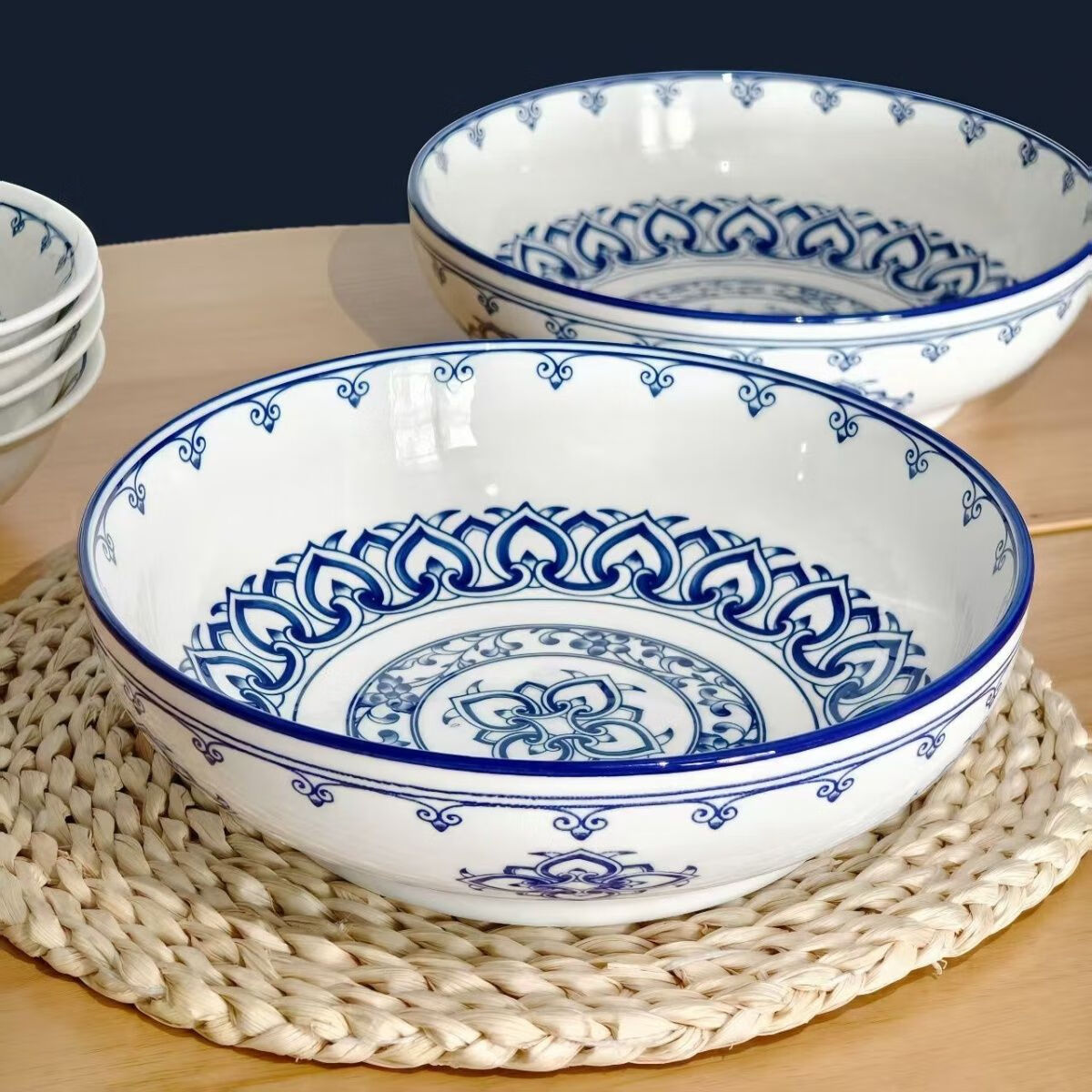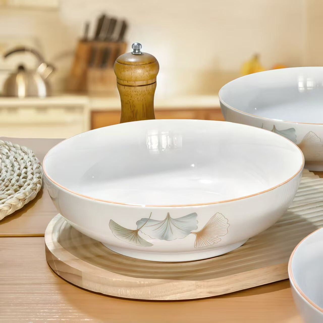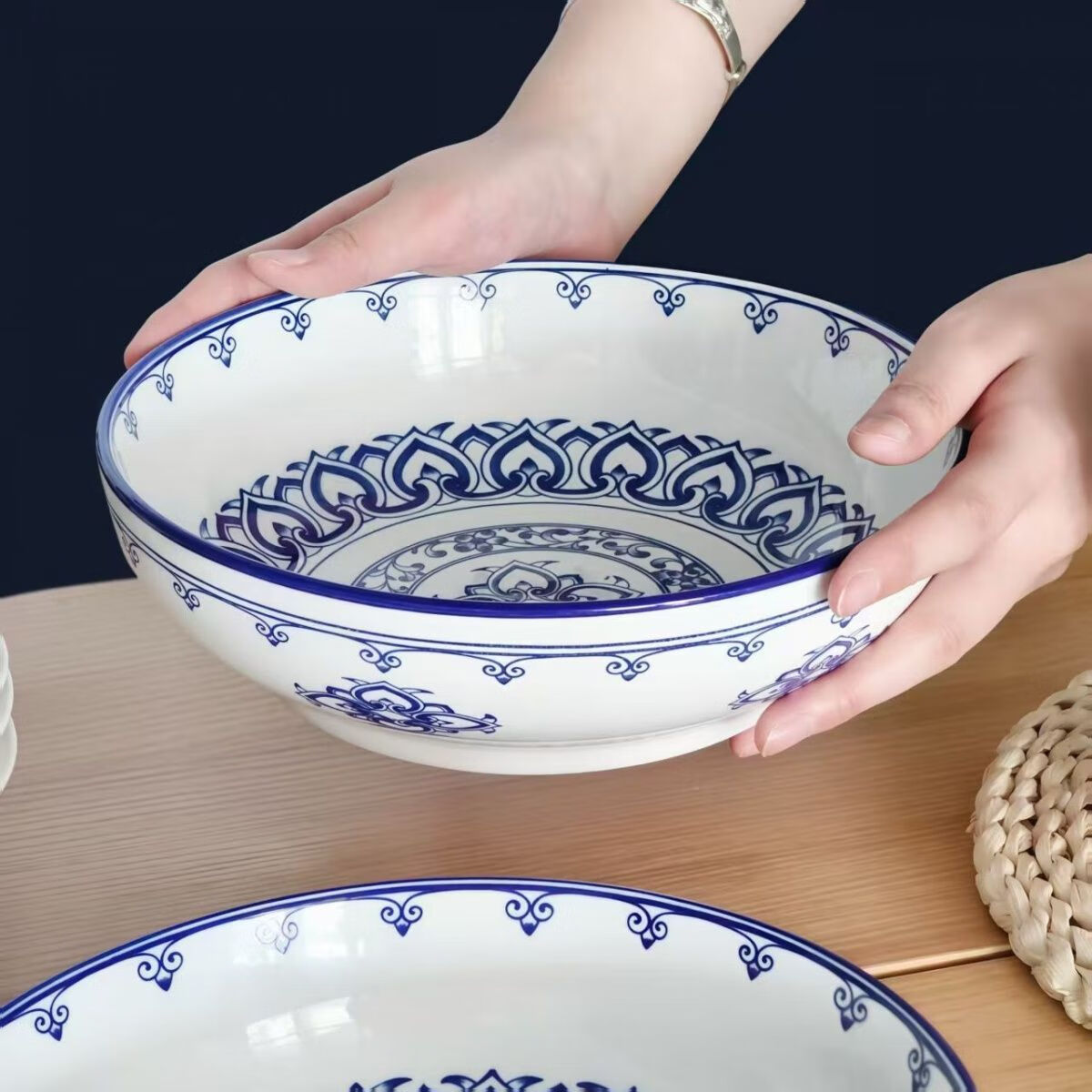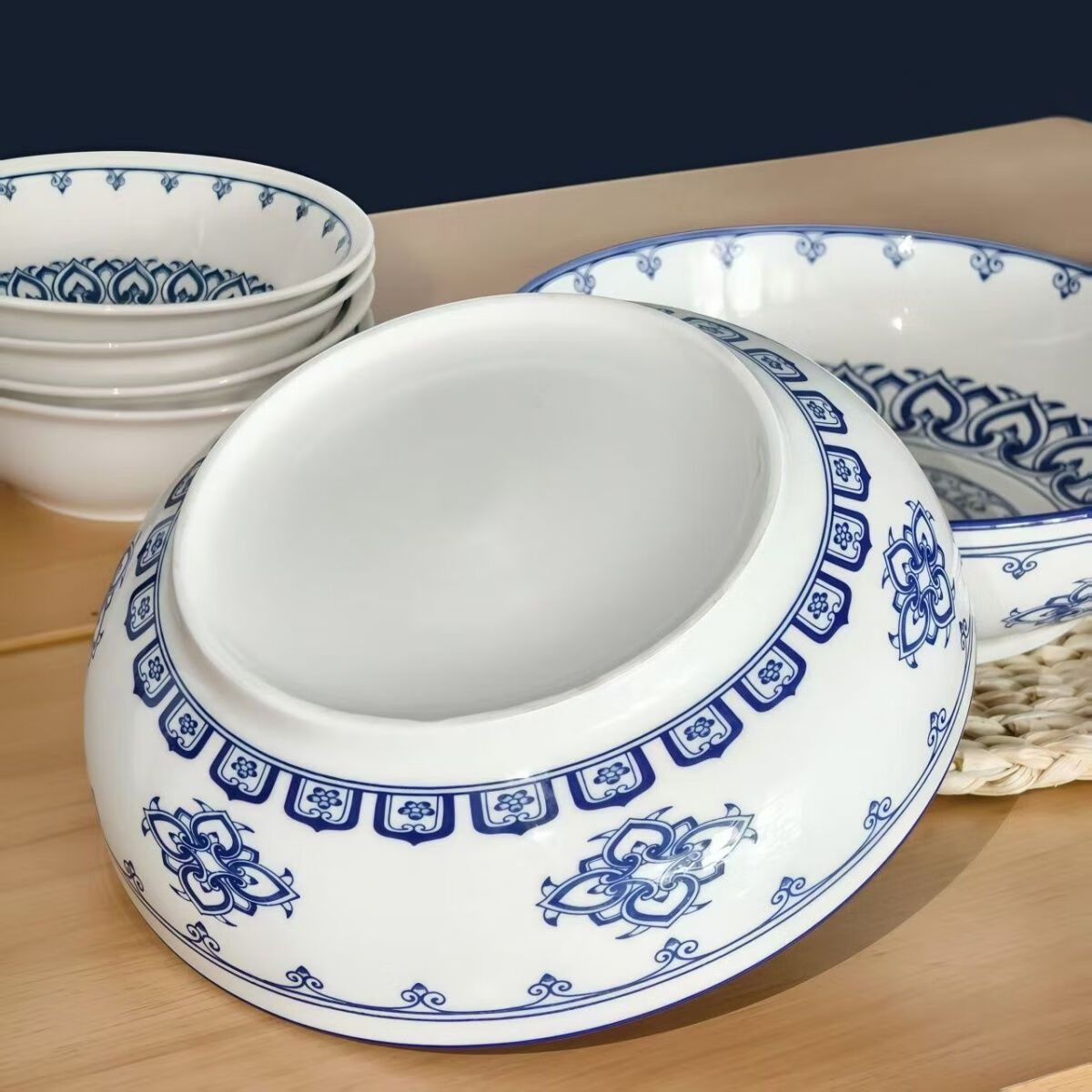 简约纯白浮雕9英寸莲花电子碗家用大号汤碗水煮鱼汤盆 【白莲花】9英寸电子1只装 9英寸 1个 莲花碗