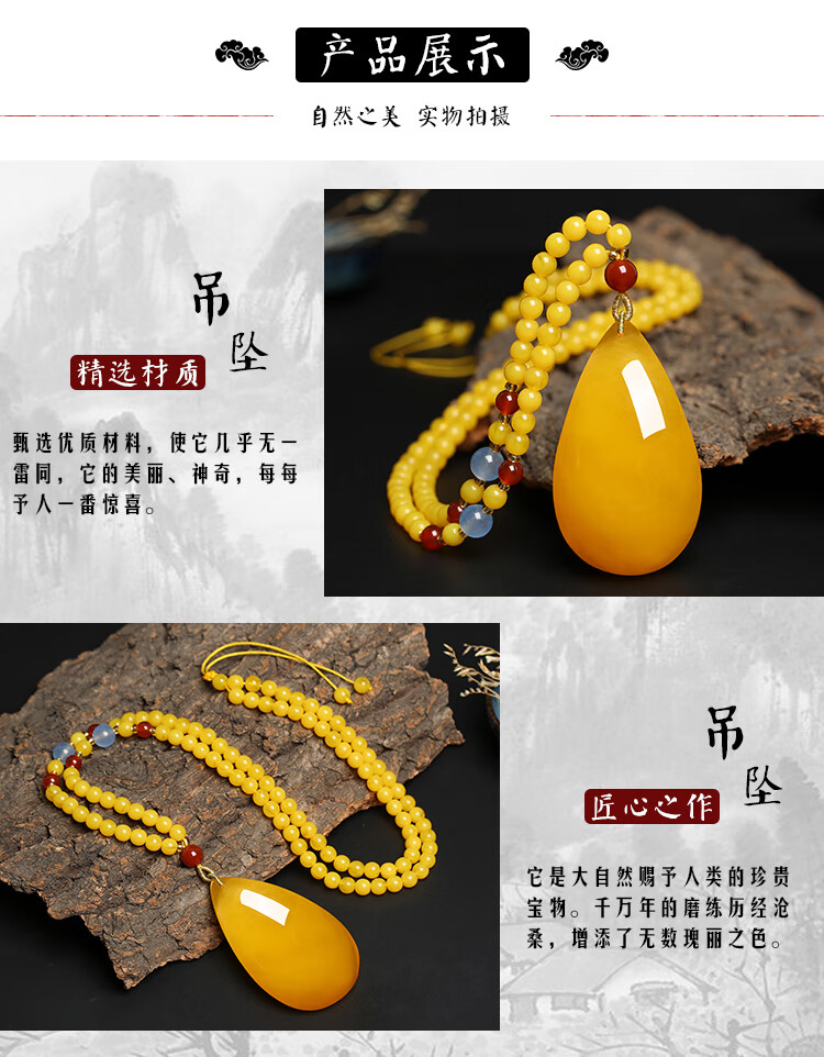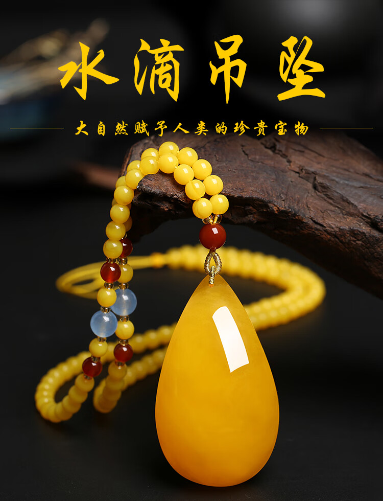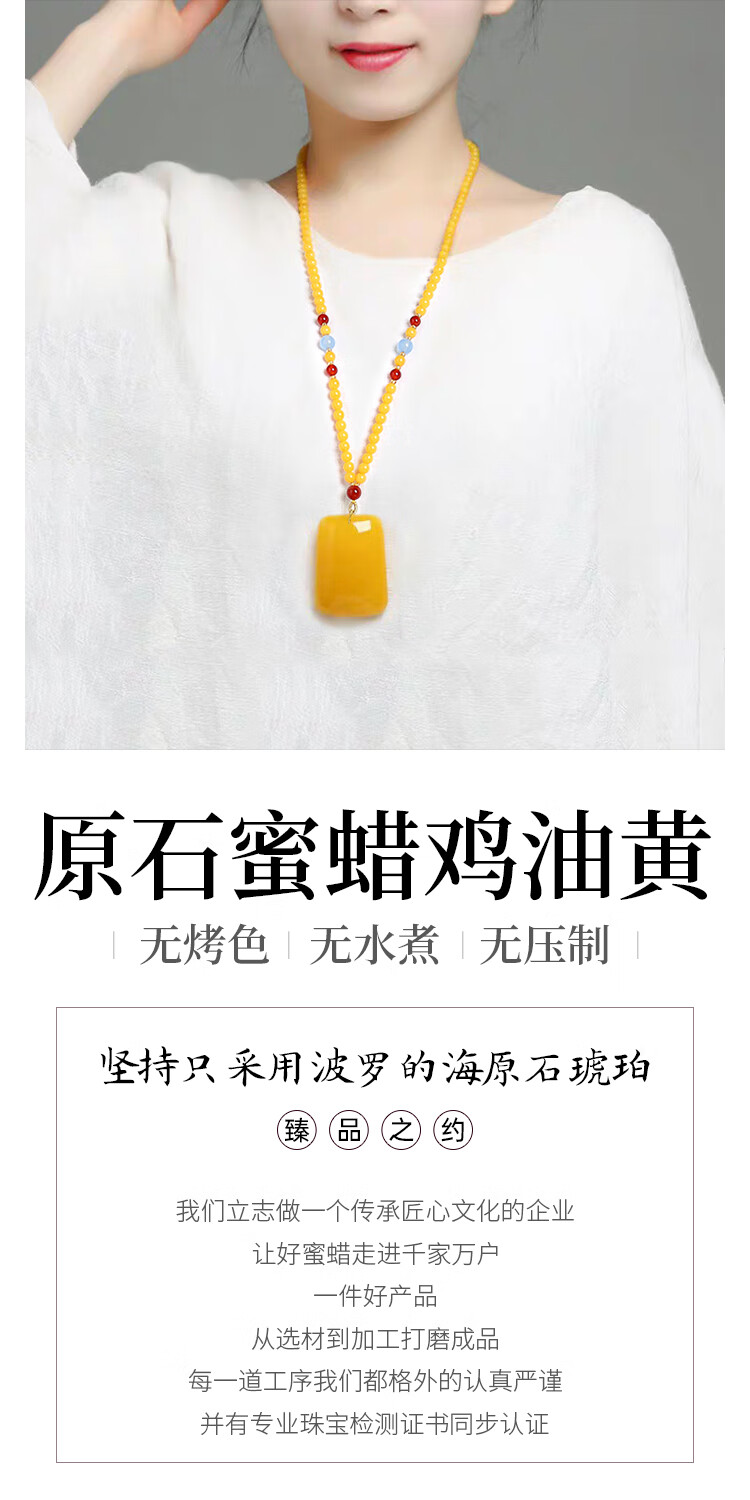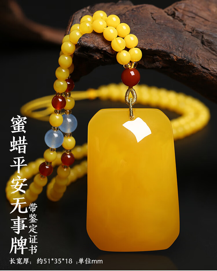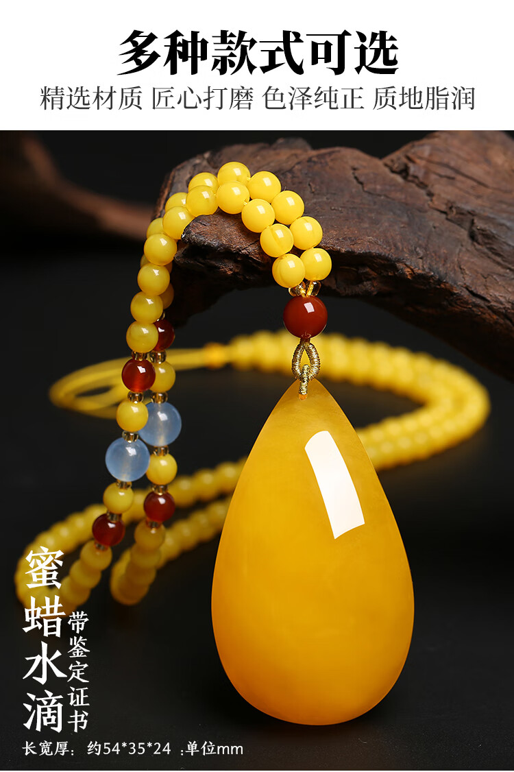 DRJEFUN with certificate natural old beeswax Dragon and Phoenix brand pendant women's necklace Wushi brand amber peony Pixiu sweater chain couple Ruyi gourd pendant + gold 0 carat silk thread bead chain