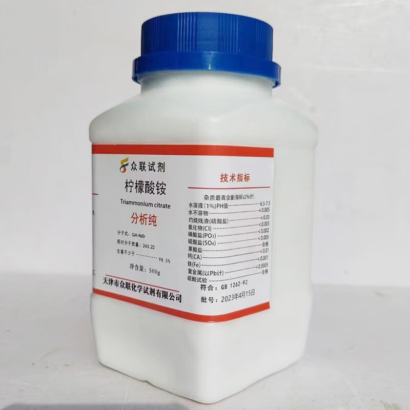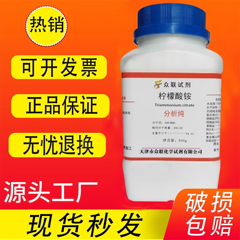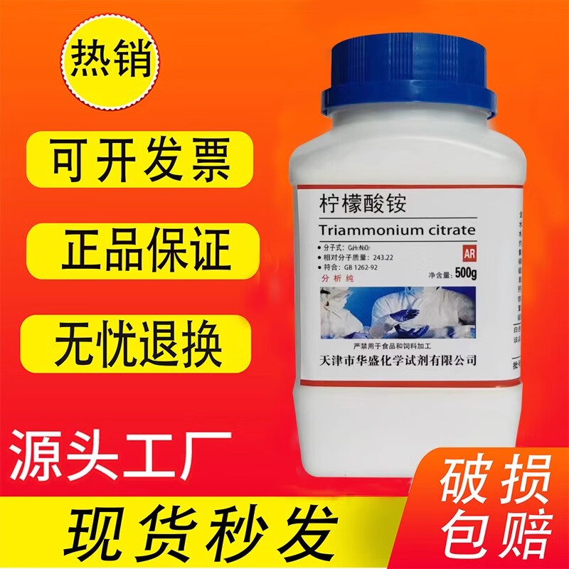 Triammonium citrate AR500g ammonium citrate analytically pure chemical reagent excellent grade pure GR experimental raw materials in stock Tianjin Huasheng excellent grade pure 500g ammonium citrate