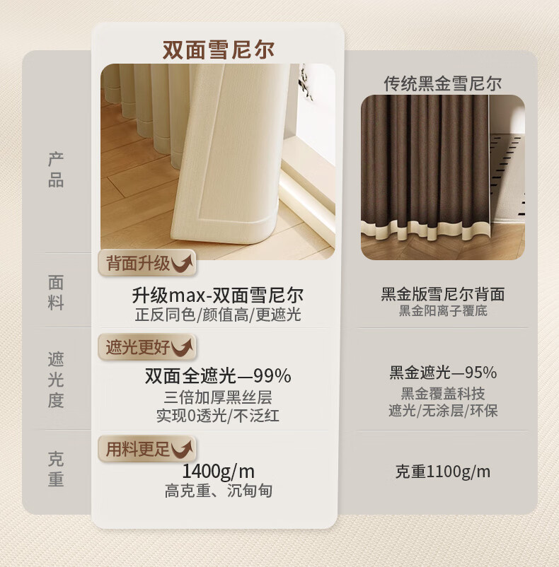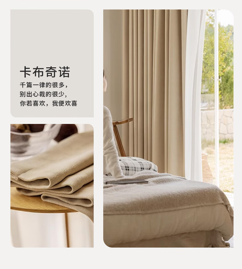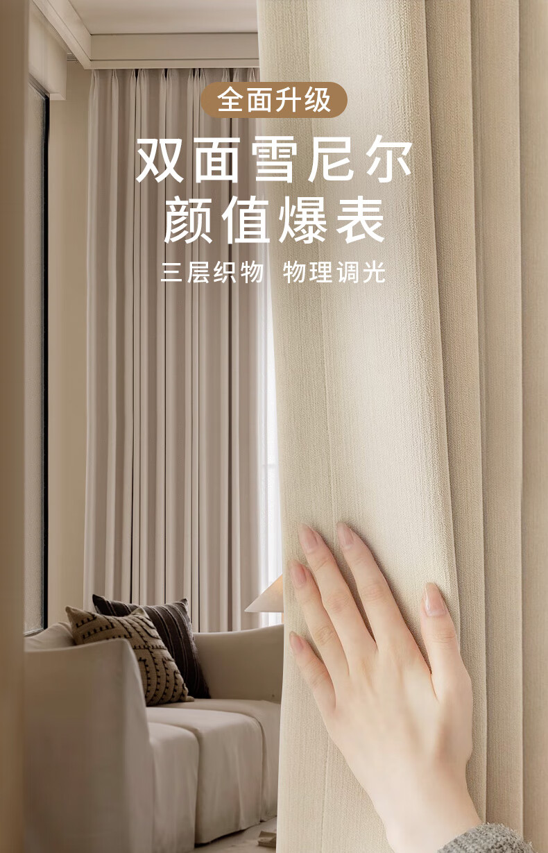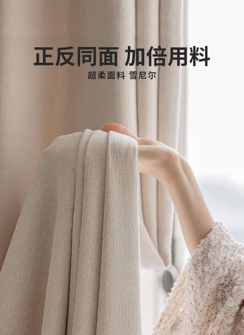 Duya's new high-end double-sided chenille curtain fabric oatmeal-85% shading meter