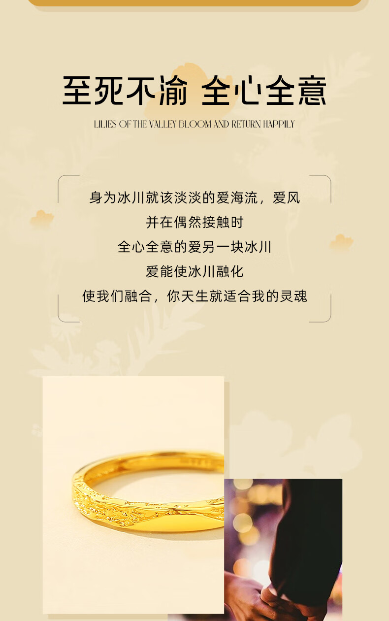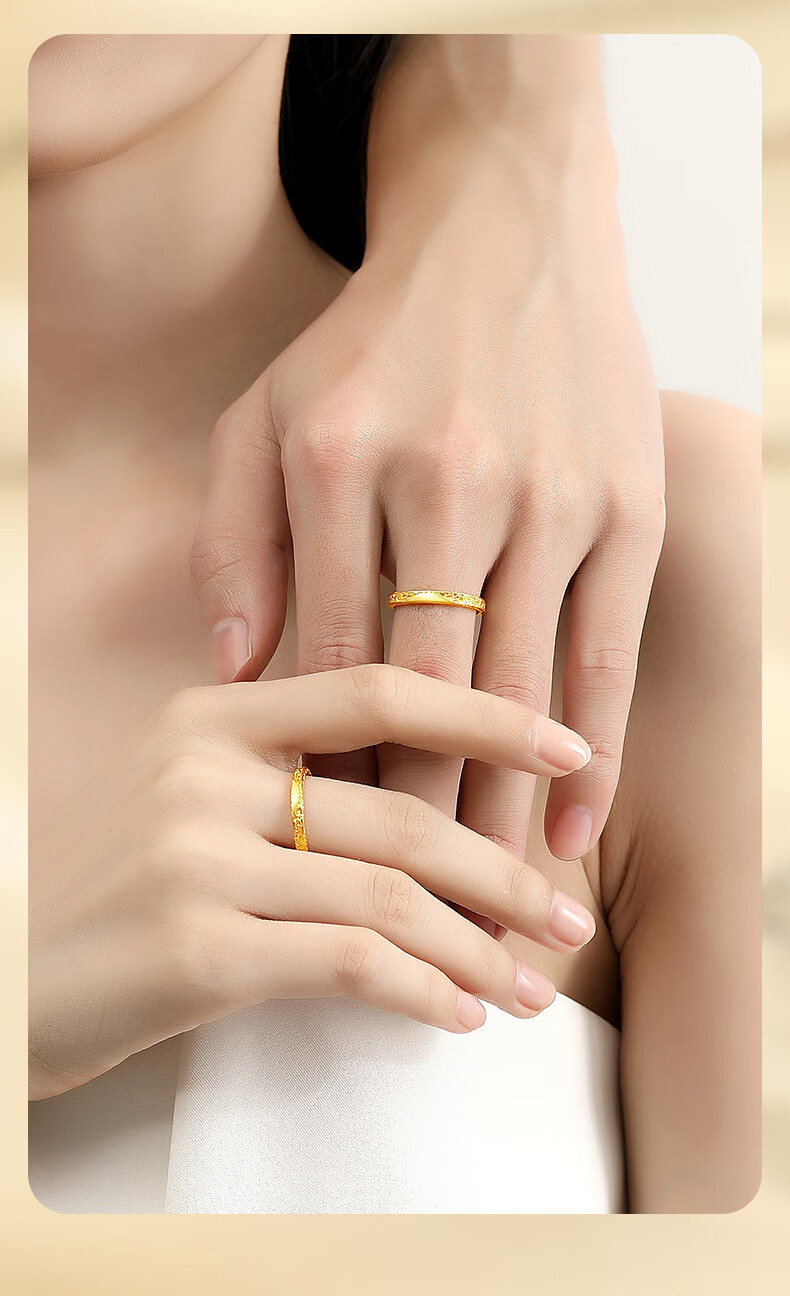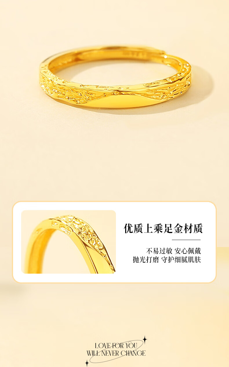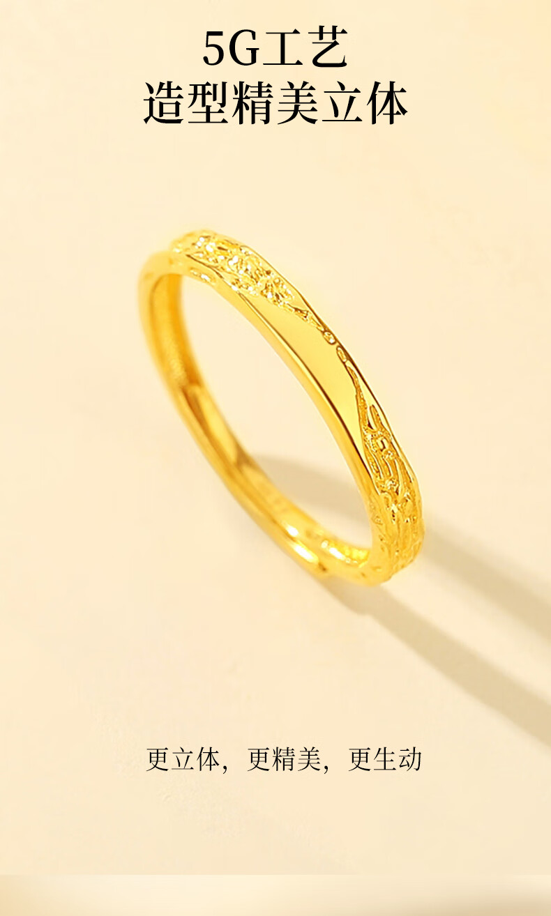 CHINA GOLD Glacier Gold Ring Women's 999 Pure Gold Opening Request Engagement Ring Birthday Gift for Girlfriend and Wife Gold Weight Approximately 1.5g Pure Gold Ring