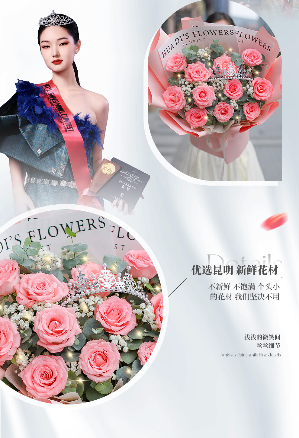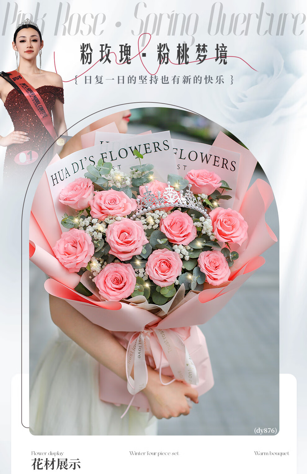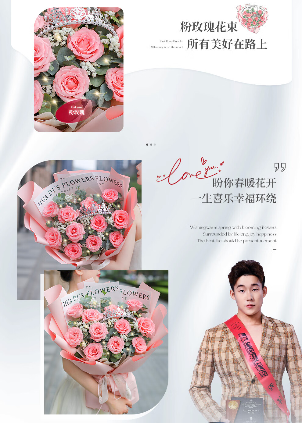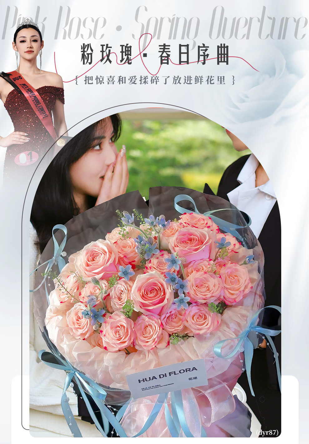 Baihua Pavilion Flowers Pink Rose Bouquet Full of Gypsophila Real Flowers Birthday Gift for Girlfriend, Best Friend, Fast Dating Hours in the City Flower Blossoms - 3 Pink Roses | dyr86