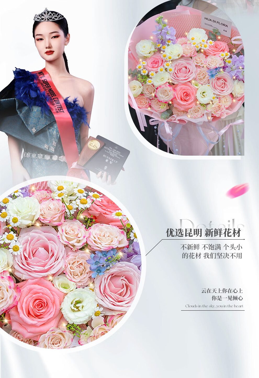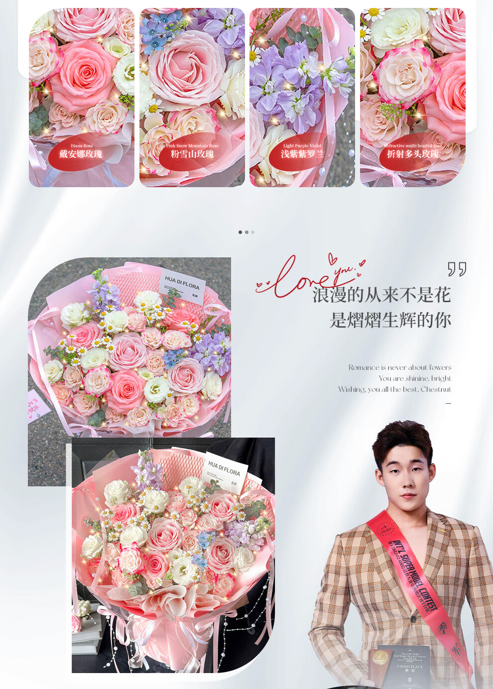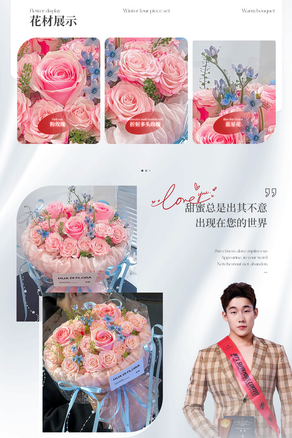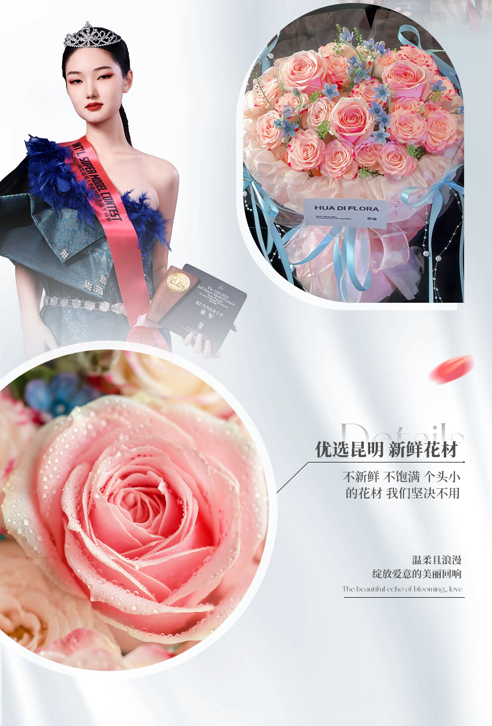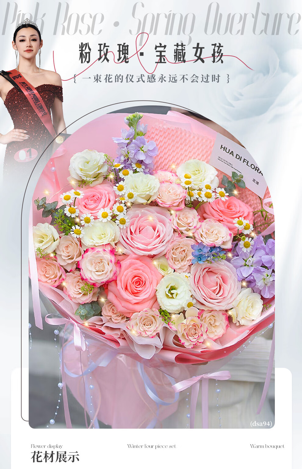 Baihua Pavilion Flowers Pink Rose Bouquet Full of Gypsophila Real Flowers Birthday Gift for Girlfriend, Best Friend, Fast Dating Hours in the City Flower Blossoms - 3 Pink Roses | dyr86