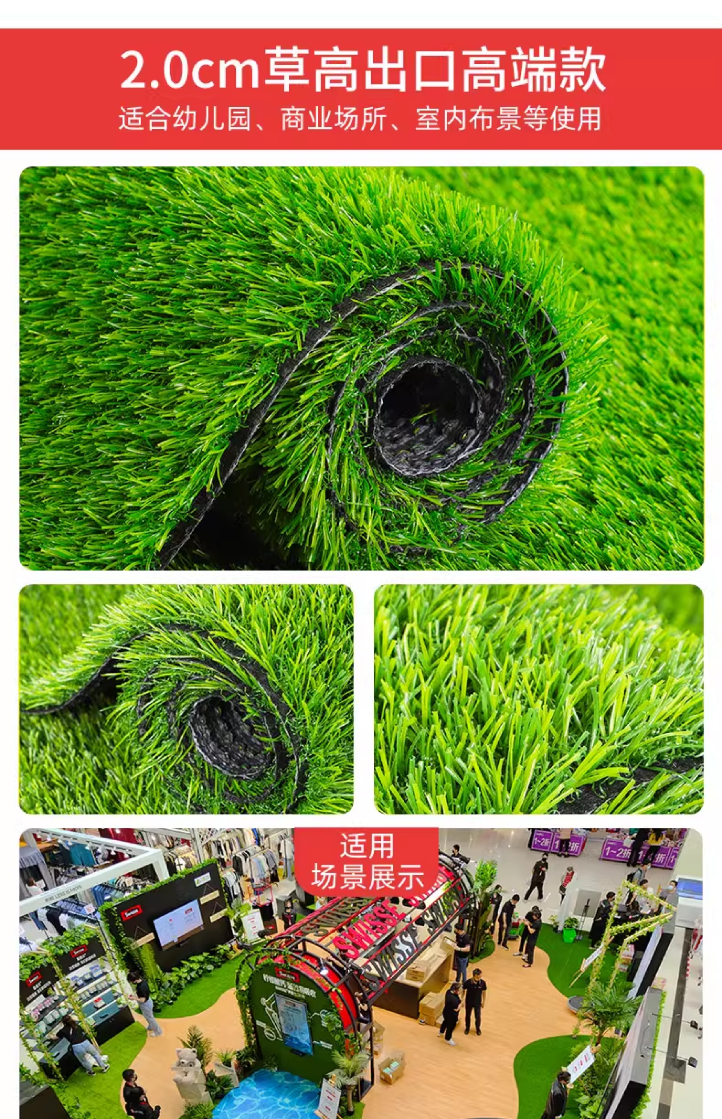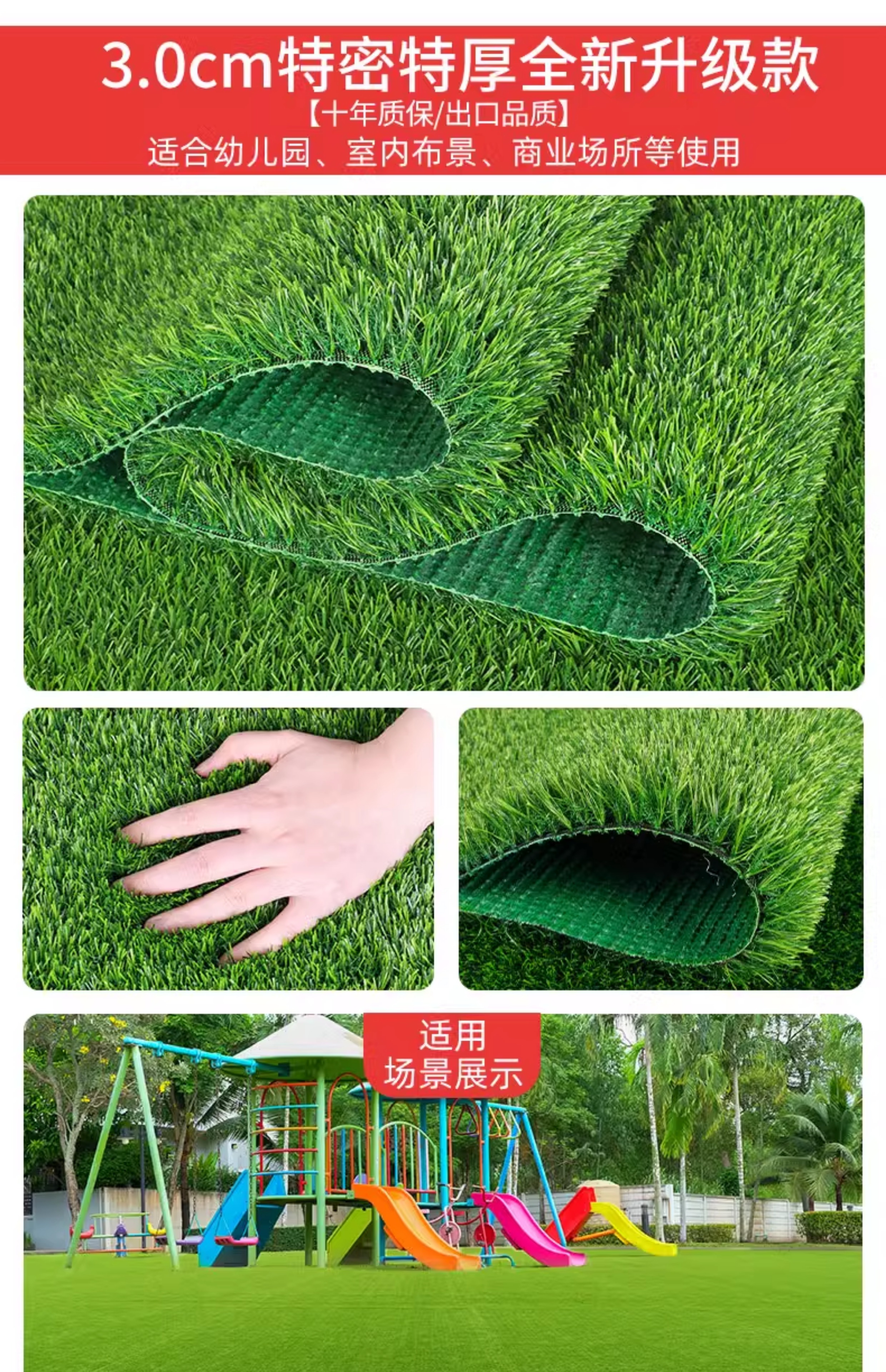 Simulated lawn carpet, artificial artificial turf, green outdoor decoration, fake grass plastic mat, balcony kindergarten, 2cm thick spring grass (1m wide*2m long)