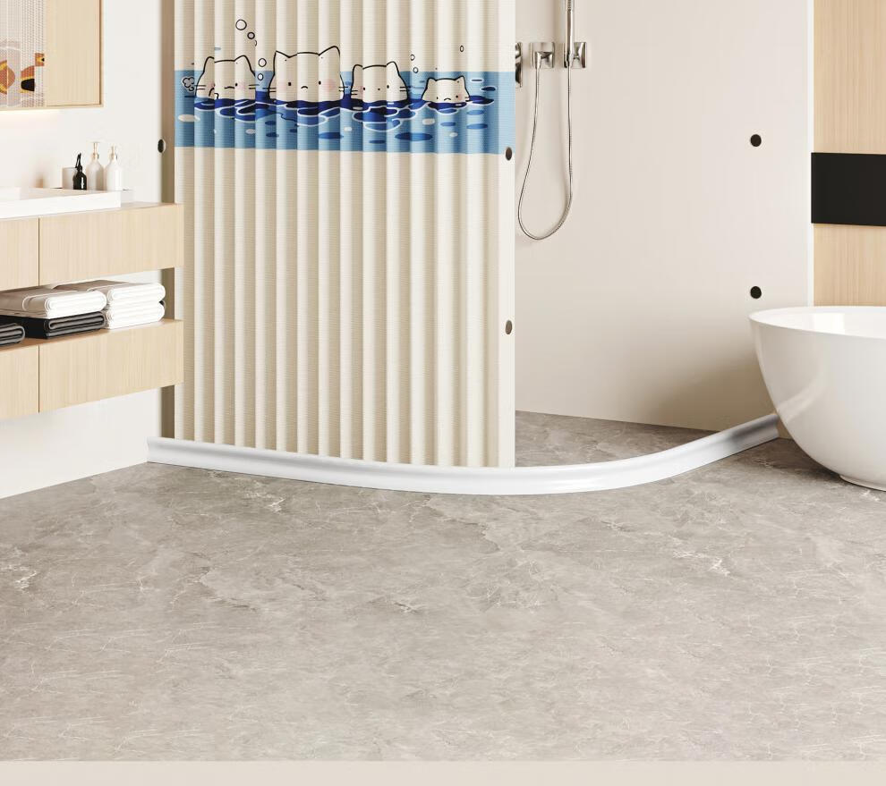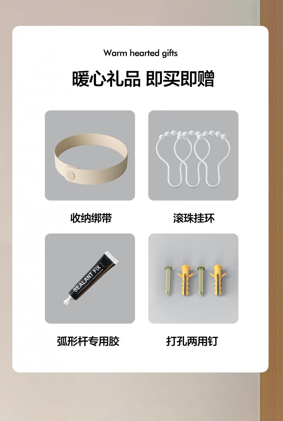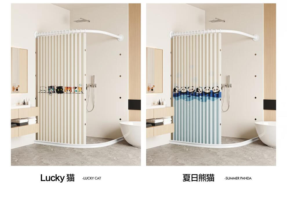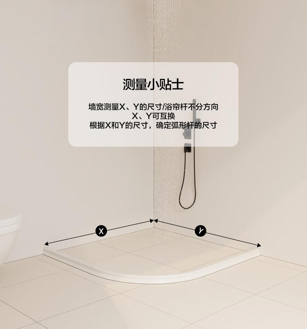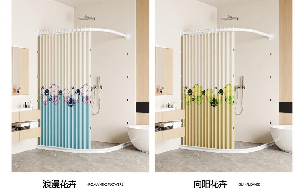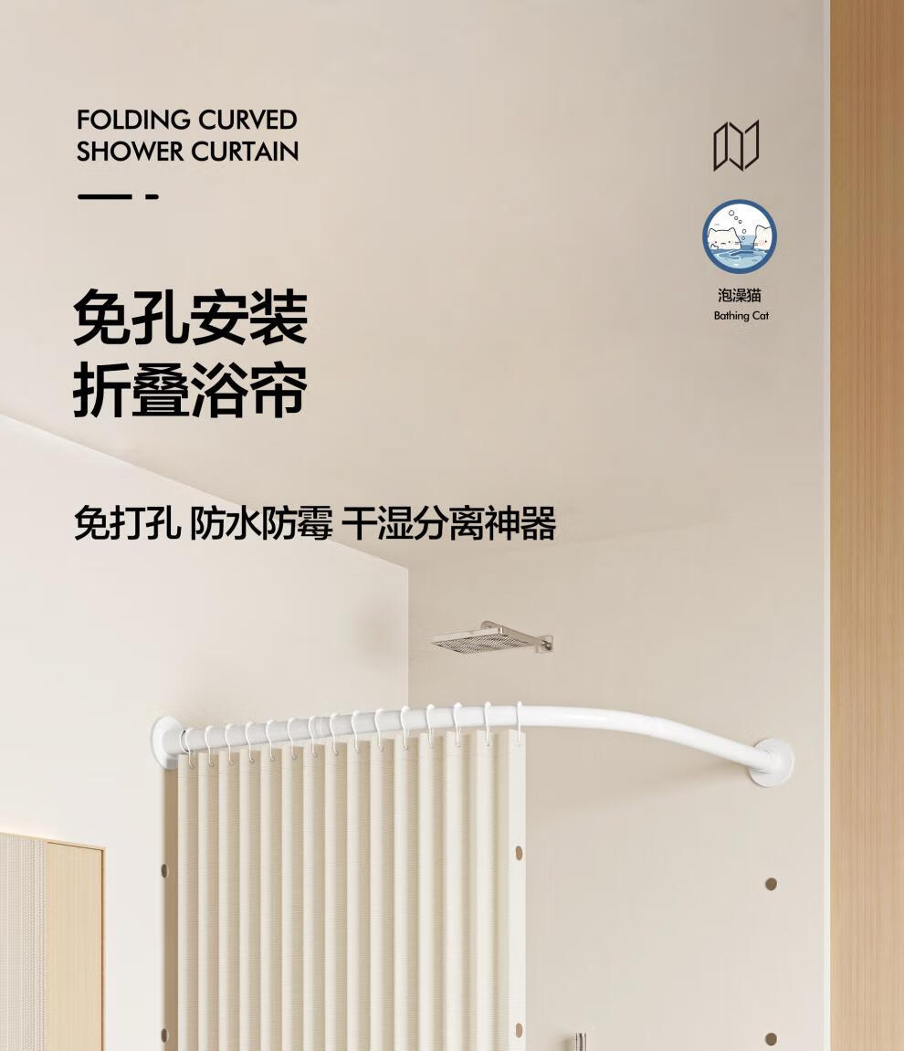 Ingenuity - Kohler Shower Room Folding Curved Bathroom Partition Curtain Shower Curtain Waterproof Curtain No Punching L-shaped Dry and Wet Separation White Water Blocking Clause White Stainless Steel + Folding Milk Curved Telescopic Rod Type C Suitable Range (901