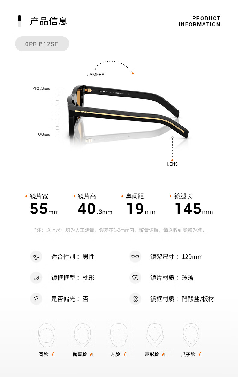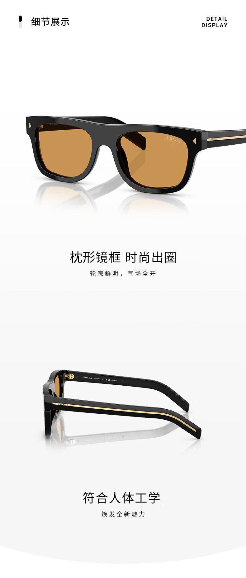 PRADA/Prada sunglasses men's sunglasses pillow-shaped glasses 0PR B12SF black frame/brown lens 16K60F