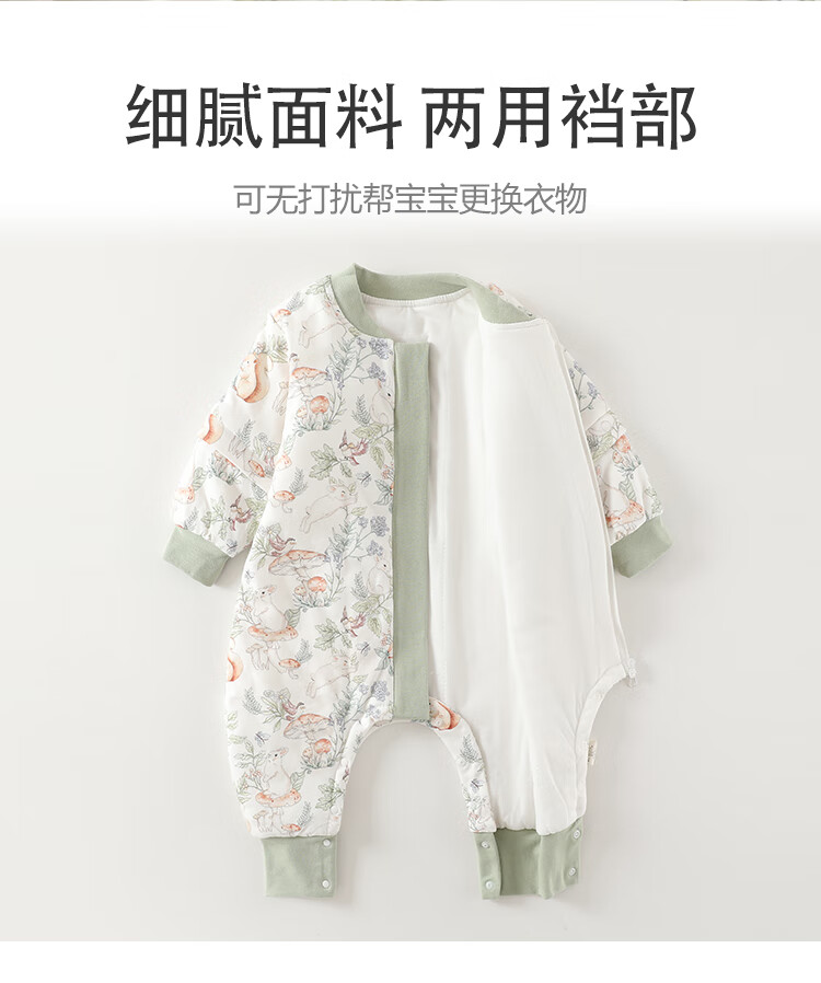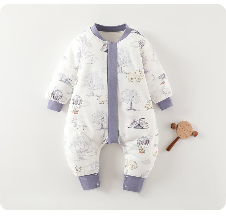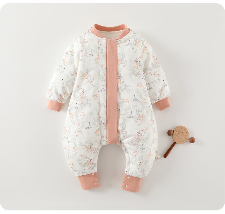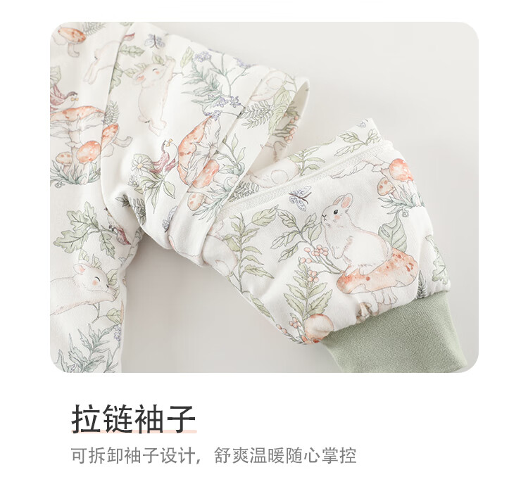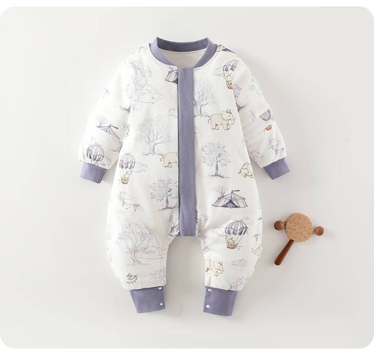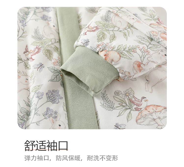 Baby sleeping bag 120g quilted baby pajamas newborn zipper type warm removable sleeves split-leg sleeping bag Forest Story 120g cotton split-leg sleeping bag 100cm