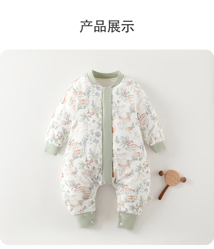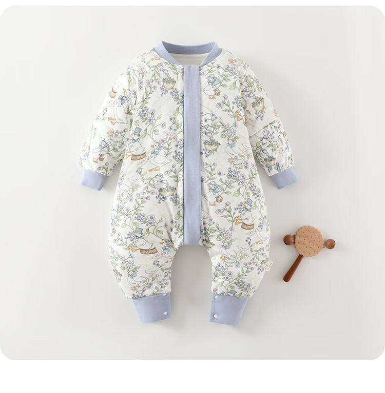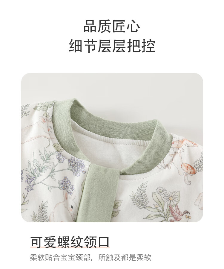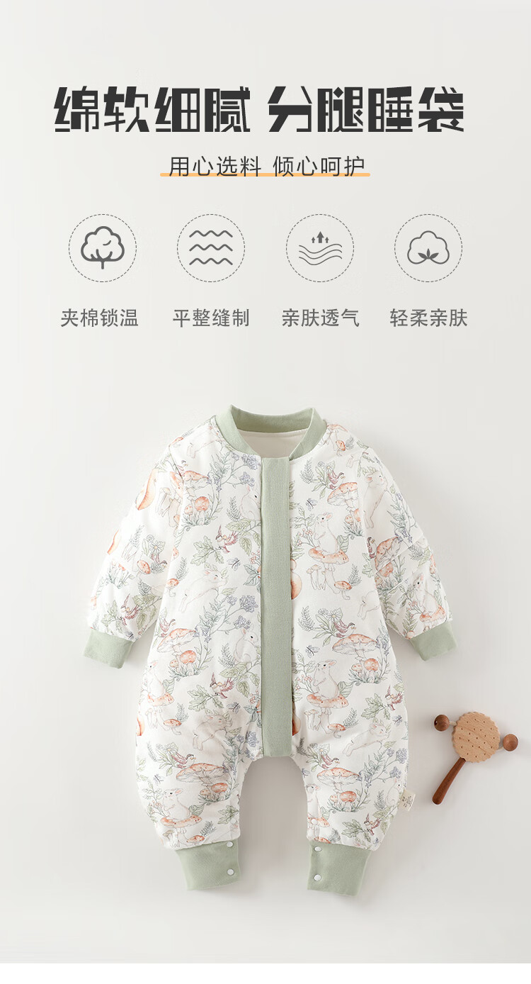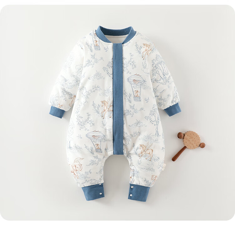 Baby sleeping bag 120g quilted baby pajamas newborn zipper type warm removable sleeves split-leg sleeping bag Forest Story 120g cotton split-leg sleeping bag 100cm